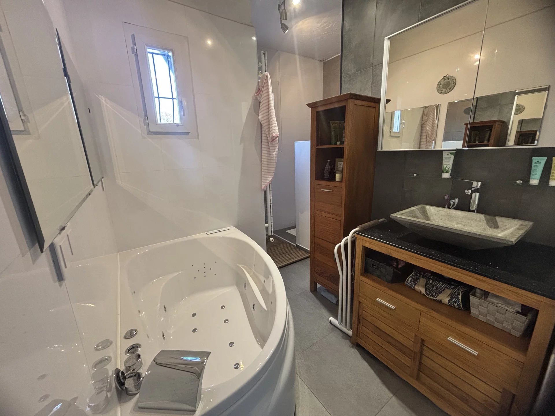 Découvrez cette magnifique villa entièrement rénovée, offrant des prestations de qualité et un cadre de vie exceptionnel. D’une superficie totale de 216 m², cette propriété se compose d’un appartement principal sur deux niveaux, comprenant : 4 chambres, chacune disposant de sa propre salle de douche Une pièce de vie spacieuse et lumineuse Une cuisine moderne et fonctionnelle À cela s’ajoutent : Une chambre d’amis indépendante, idéale pour recevoir en toute intimité Une dépendance de type studio, actuellement louée, offrant un revenu locatif À l’extérieur, vous profiterez d’un jardin arboré soigneusement entretenu, d’une terrasse exposée plein ouest parfaite pour les soirées ensoleillées, ainsi que d’une piscine chauffée pour un confort optimal toute l’année. Le bien dispose également de 5 places de stationnement, un véritable atout et d'une cave. Une propriété idéale pour une grande famille ou un projet mêlant résidence principale et investissement locatif.