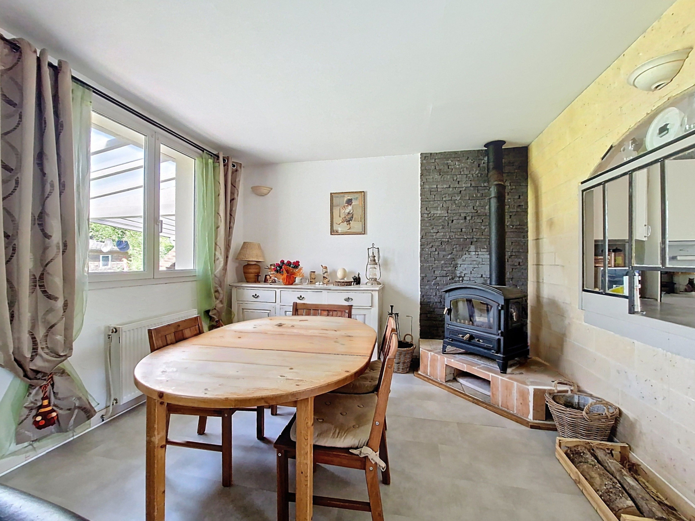 Au rez-de-chaussée, vous serez accueilli par une entrée ouvrant sur un salon séjour double lumineux, agrémenté d'un poêle à bois chaleureux, une cuisine fonctionnelle, une chambre ainsi qu'une salle d'eau avec WC.