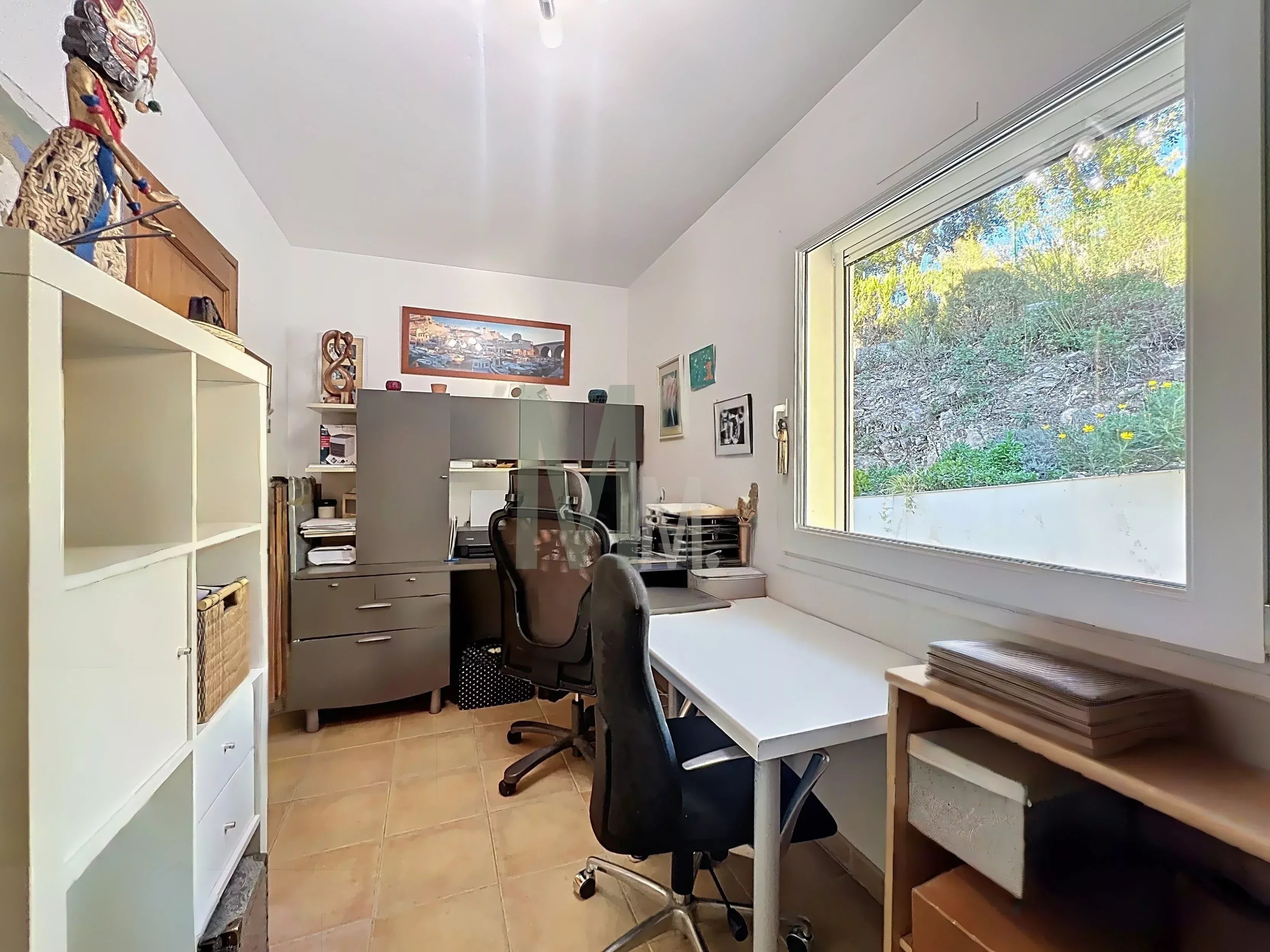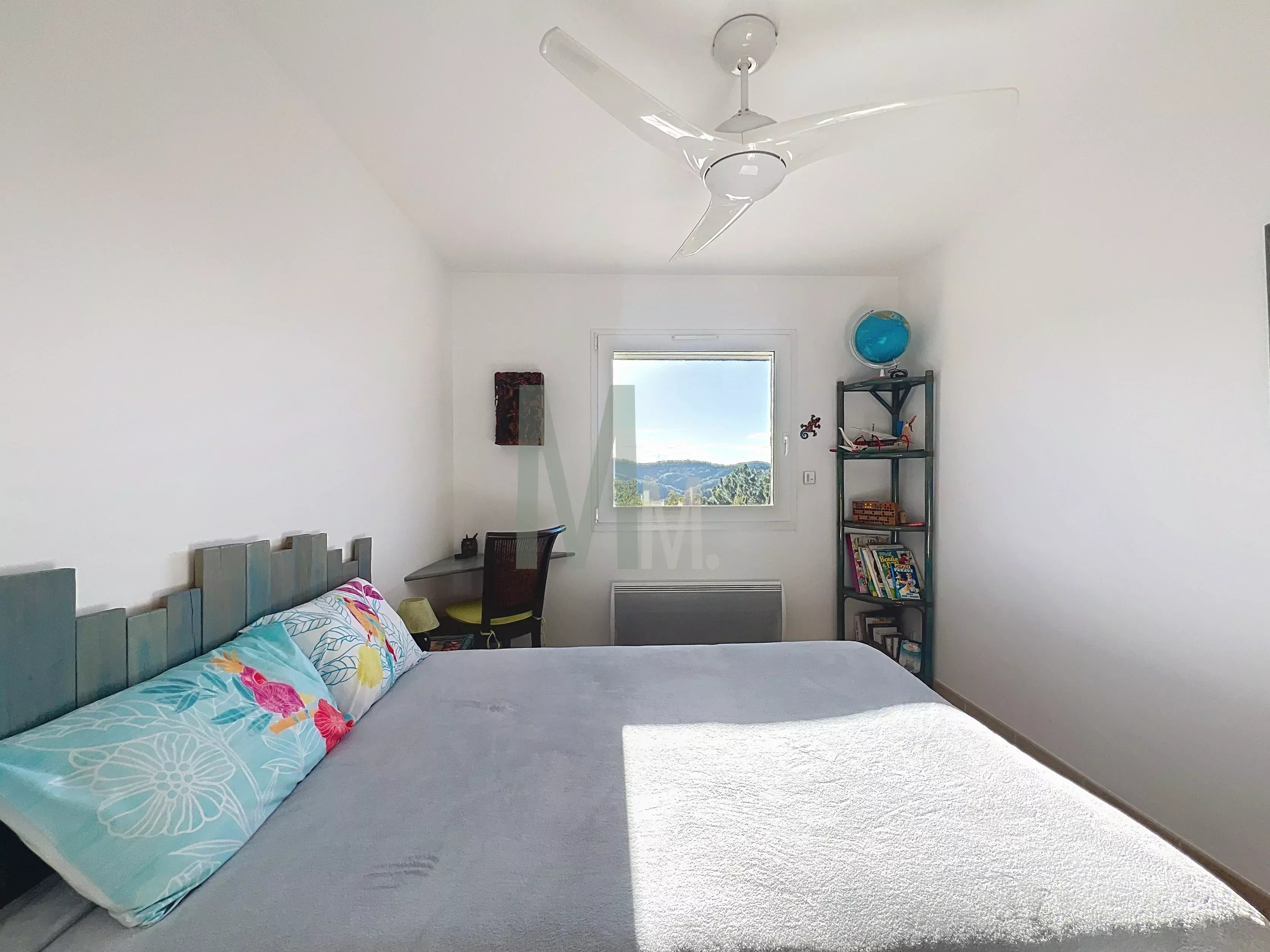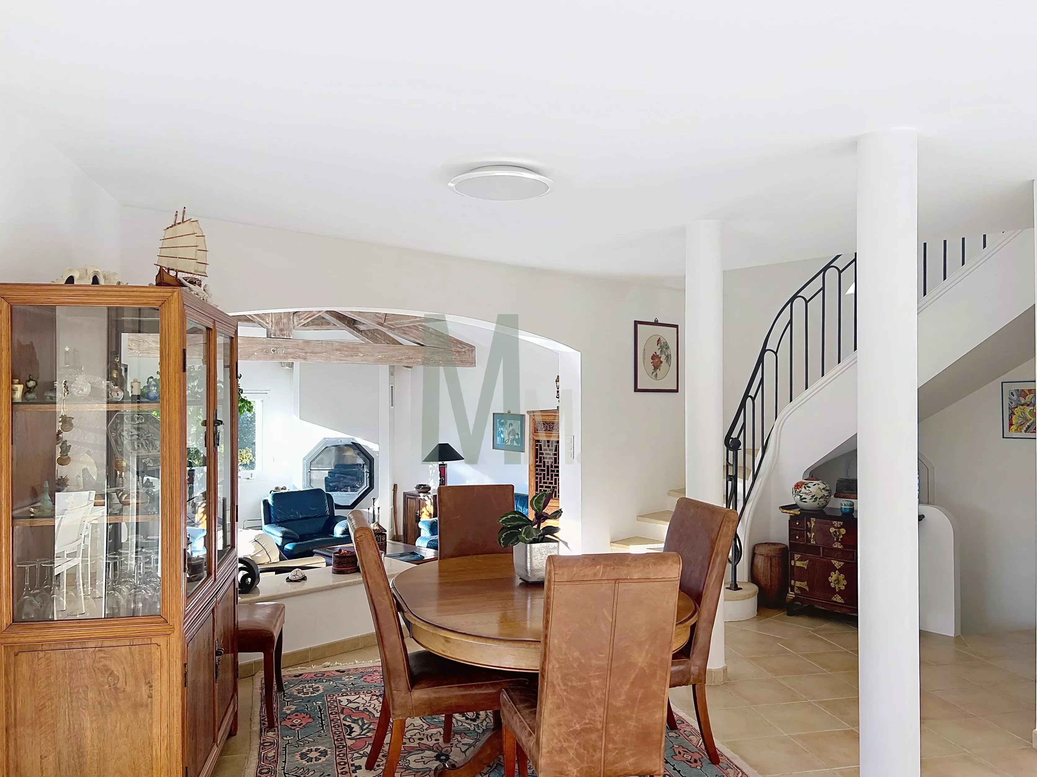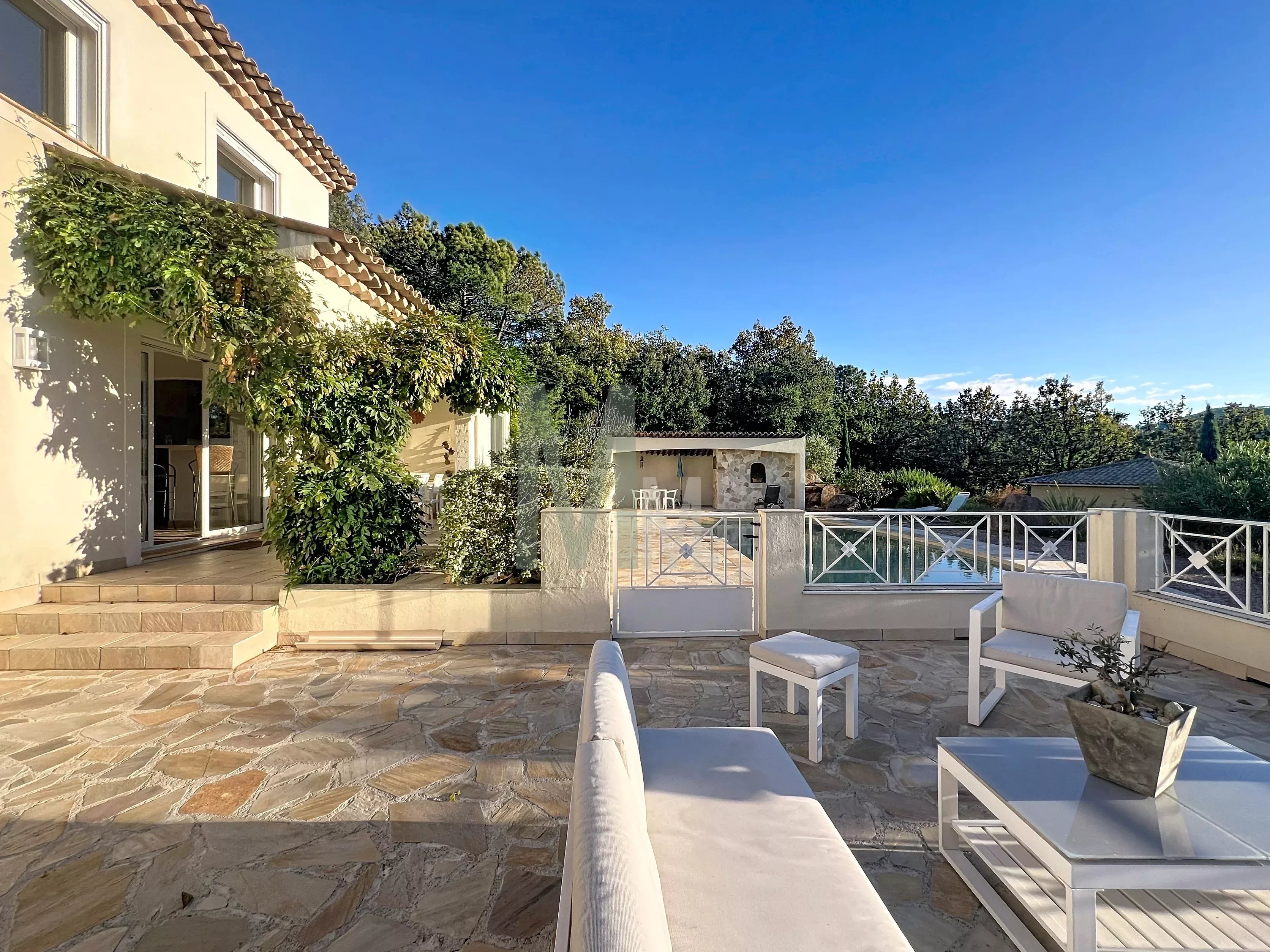 Dans un environnement calme et verdoyant, tout en restant à proximité des accès, découvrez cette élégante villa de 200 m² habitables, parfaitement entretenue, offrant une vue panoramique sur l’Estérel. Implantée sur un terrain de 1 500 m², la propriété s’organise sur trois niveaux. Le rez-de-chaussée, de plain-pied, accueille les espaces de vie : une cuisine ouverte sur la salle à manger, un vaste salon lumineux avec cheminée, un bureau, un WC indépendant, ainsi qu’une chambre avec placard et une salle d’eau équipée d’une douche et d’une baignoire. À l’étage, deux chambres avec rangements, une salle de douche et un WC indépendant complètent l’espace nuit. Le rez-de-jardin propose une grande chambre avec salle de douche et WC, pouvant être aménagée en studio indépendant. Une salle de sport, un cellier, une cave à vin, ainsi qu’un spacieux garage permettant d'accueillir deux véhicules et l’ensemble du matériel nécessaire à l’entretien de la propriété, sans oublier le local technique de la piscine. À l’extérieur, la propriété offre une belle piscine avec son pool house, plus de 100 m² de terrasses idéales pour recevoir, ainsi qu’un vaste espace de stationnement. Une propriété idéale pour recevoir en toute sérénité. Contactez l'agence Maison Macéli pour découvrir la villa sans tarder.