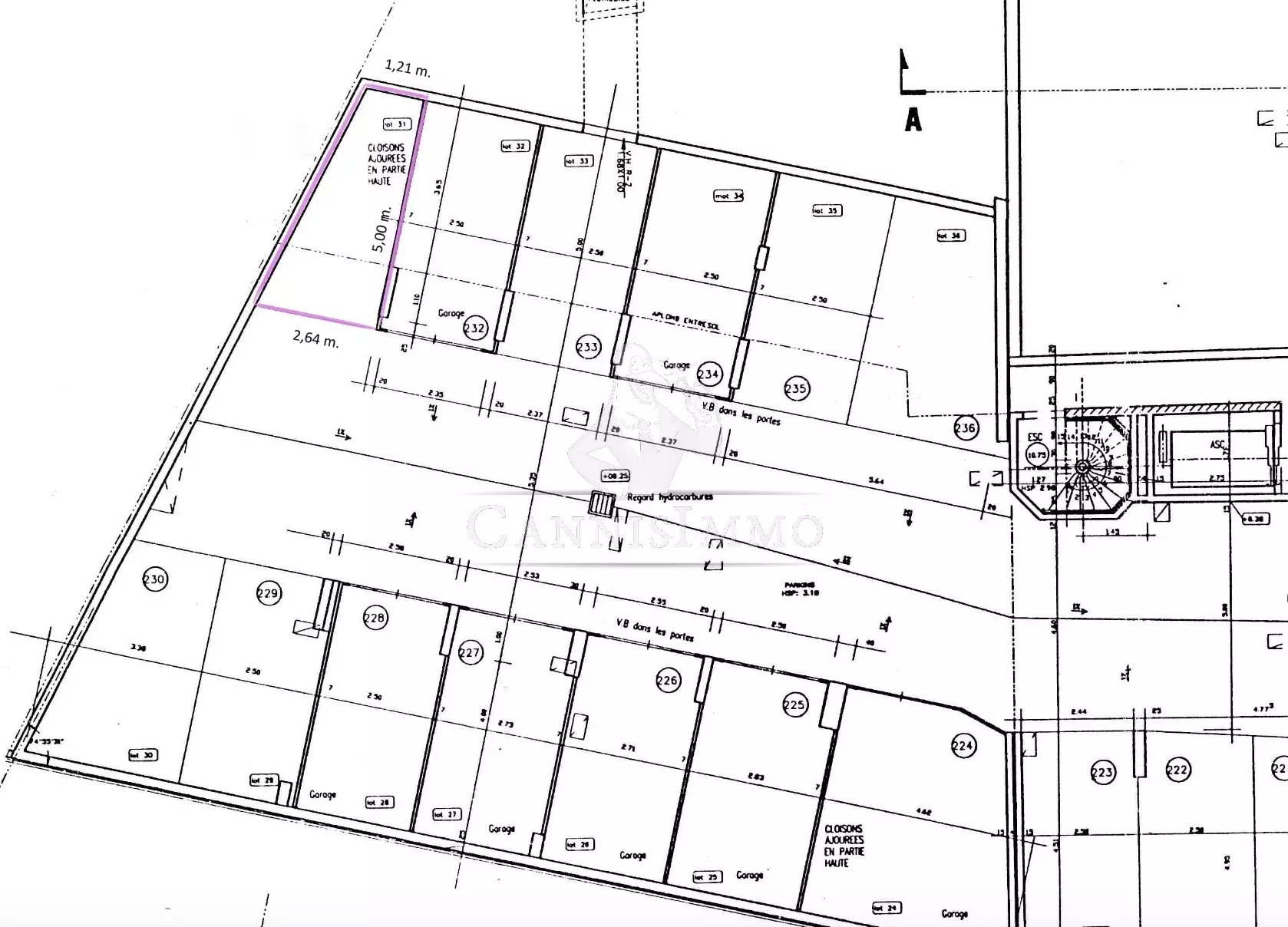 Au pied du Suquet, au 2ème sous-sol de la copropriété, garage permettant d'accueillir une voiture de ville. Dimensions 5m de profondeur X 2,65m a l'entrée / 1,21m au bout.