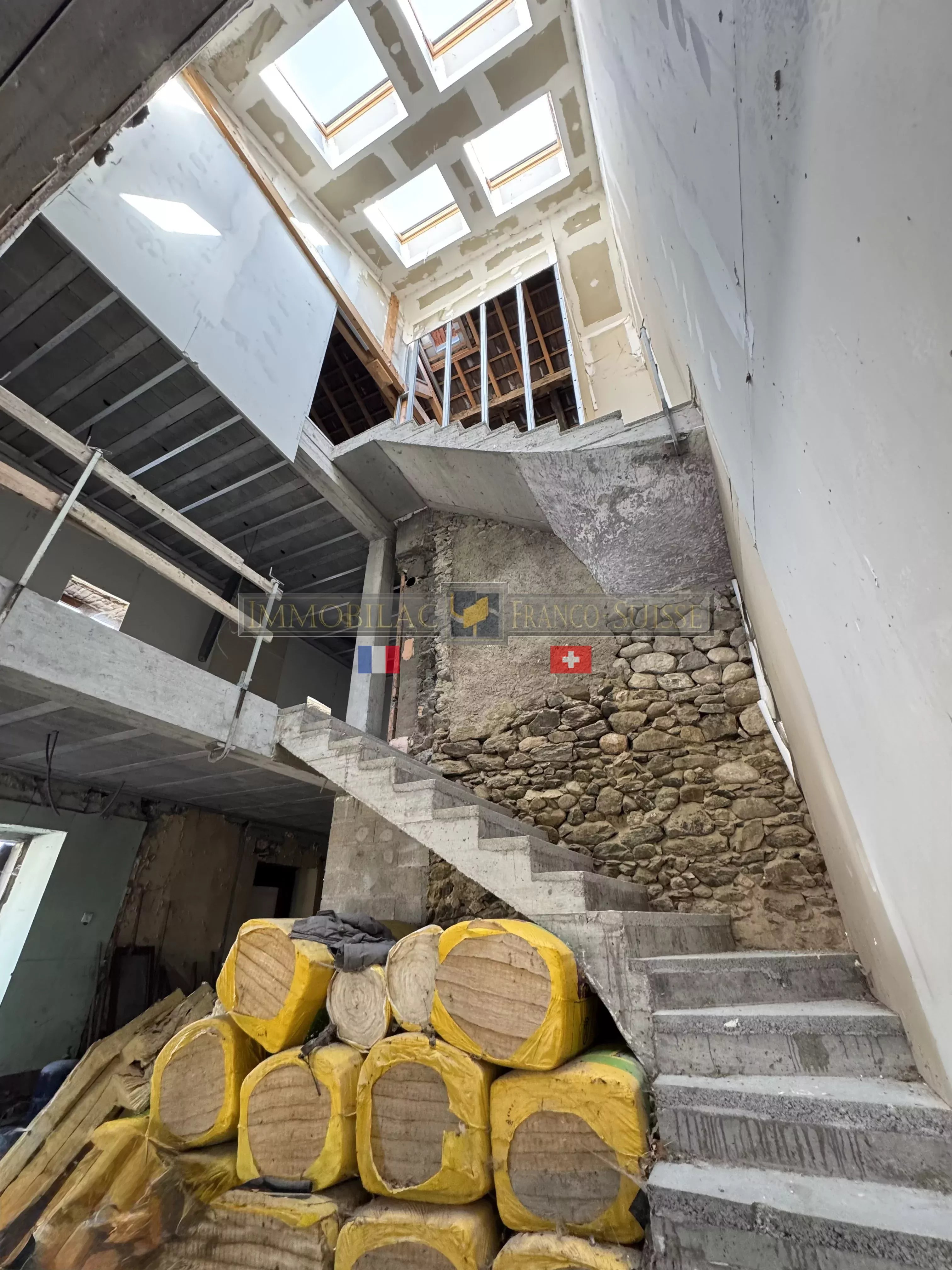 En Exclusivité à DIGNY-EN-VUACHE-74520: Découvrez cette authentique ferme mitoyenne par l'arrière à finir de réhabiliter en habitation avec ses dix pièces sur un terrain de 700 M². La toiture a été rénovée ainsi que les dalles sur les trois niveaux. Toutes les plomberies et l'électricité sont tirées et en attente. Le bien se compose de trois niveaux qui sont potentiellement répartis : Au rez-de-chaussée, un hall d'entrée, une cuisine ouverte une vaste salle à manger et le séjour avec un accès à la terrasse et au jardin, un espace buanderie et cellier, un local technique et un garage. Au 1er étage, un palier desservant quatre spacieuses chambres, deux salles de bains et deux W.C. Au 2nd étage, une suite parentale avec un coin dressing et une salle de bains. Idéal pour grande famille en quête de calme et de nature avec un fort potentiel.