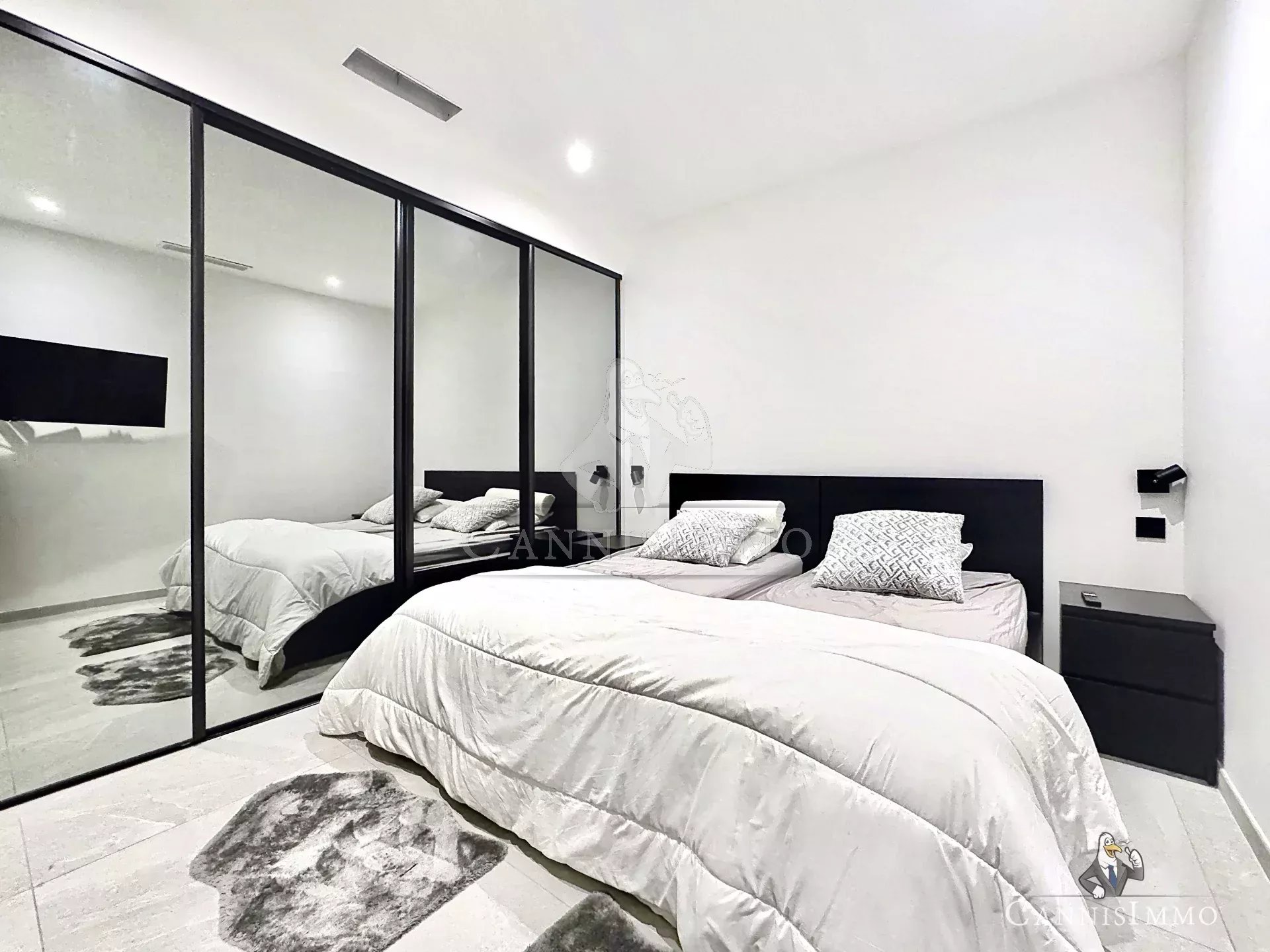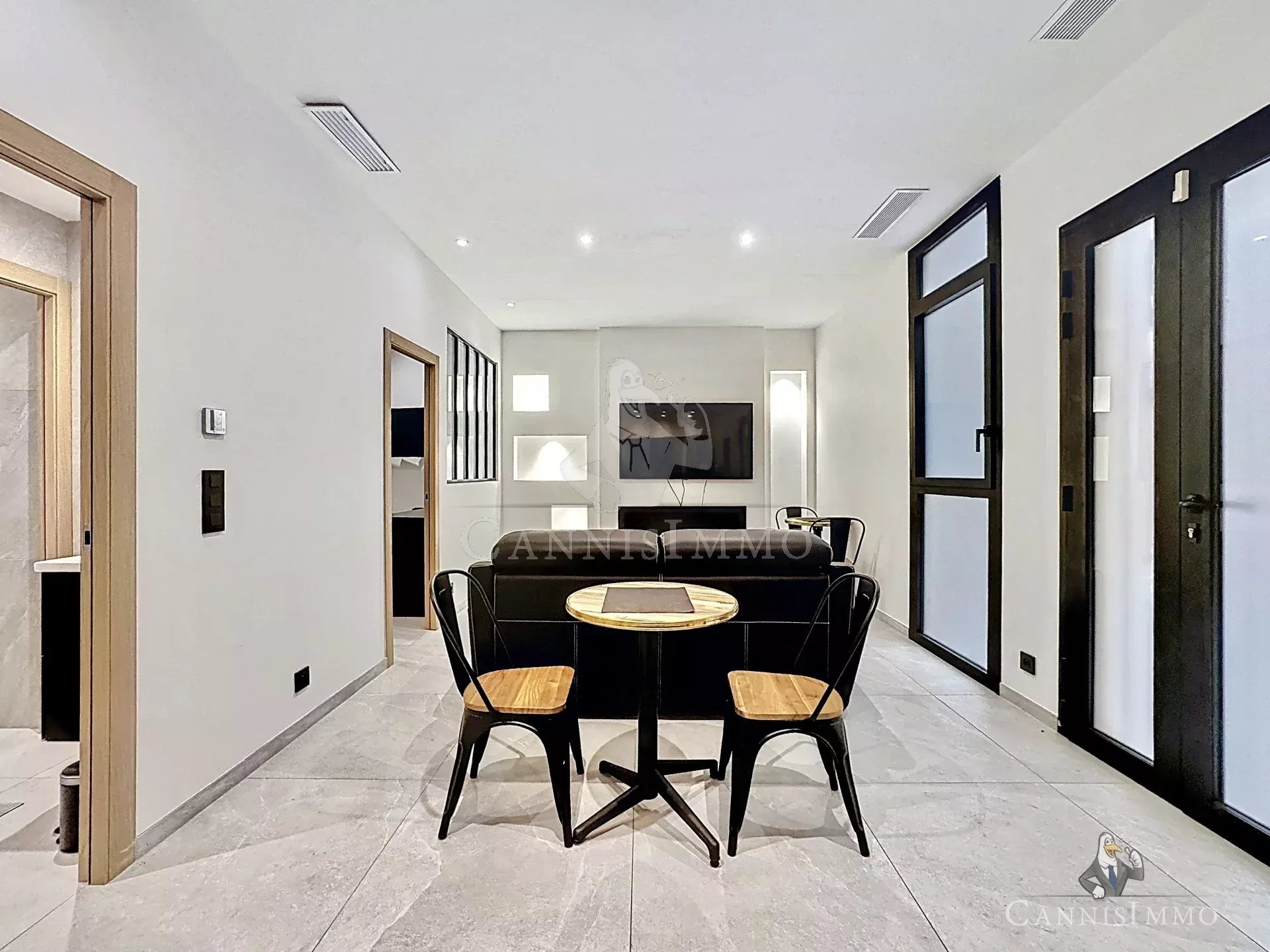 Situé dans le fameux carré d'Or de Cannes à proximité de la Croisette et des plages, très bel appartement entièrement rénové avec des matériaux de qualité. Idéal location saisonnière.