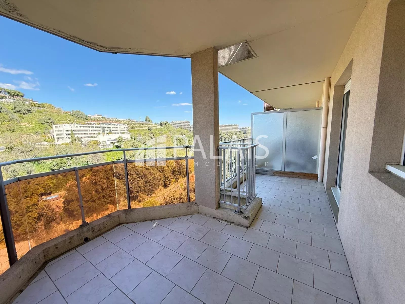 Fabron - Dans une résidence sécurisée du début des années 2000, appartement de 2 pièces principales de 56m². Composé d'une entrée avec dressing, d'un séjour avec cuisine ouverte et grande terrasse de 12m² avec vue dégagée et belle échappée mer, d'une grande chambre avec placards, d'un wc indépendant et d'une salle de bains. Nécessite un rafraichissement. Vendu avec parking privatif.