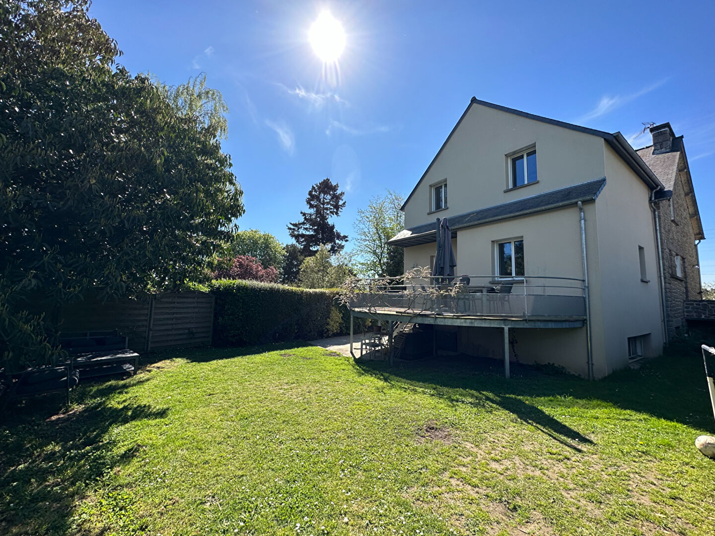 L'agence Maison Rouge vous propose à la vente cette charmante maison de ville en pierre, idéalement située dans un quartier recherché de Dinan, cité médiévale de caractère, offrant un cadre de vie rare alliant le calme de la campagne et la proximité immédiate du centre-ville et de ses commodités. Dès l'entrée, cette maison séduit par sa luminosité naturelle, ses volumes généreux et la qualité de ses belles prestations, avec un très bel espace de vie convivial qui s'ouvre directement sur une grande terrasse, parfaite pour profiter d'une vue dégagée en toute tranquillité. Entièrement rénovée, elle propose une organisation fluide et fonctionnelle, pensée pour le confort au quotidien. La maison développe environ 200 m² habitables et offre neuf pièces, dont cinq chambres. Une chambre est située au rez-de-chaussée avec sa salle d'eau, permettant une vie de plain-pied particulièrement appréciable. A l'étage, une mezzanine distribue harmonieusement les espaces nuit, avec d'un côté une suite parentale disposant d'un dressing et d'une salle d'eau, et de l'autre trois chambres supplémentaires accompagnées d'une salle de bains. Implantée sur un terrain clos de 525 m², cette maison bénéficie également d'un grand sous-sol complet comprenant un garage, une salle de jeux ainsi qu'une salle télé, offrant de nombreuses possibilités d'aménagement selon vos besoins. A l'extérieur, une cour permet également de stationner facilement deux véhicules, un véritable atout en centre-ville. Très bien isolée et équipée d'un chauffage central au gaz de ville, cette propriété combine confort thermique, fonctionnalité et qualité de vie, dans un environnement privilégié où tout peut se faire à pied. Cette maison au caractère authentique et aux prestations soignées représente une opportunité rare pour une famille en quête d'espace, de calme et de proximité avec le centre-ville de Dinan. Pour plus de renseignements ou pour organiser une visite, contactez-nous. Prix FAI : 649 000 euros dont 4.80 % honoraires TTC à la charge de l'acquéreur.