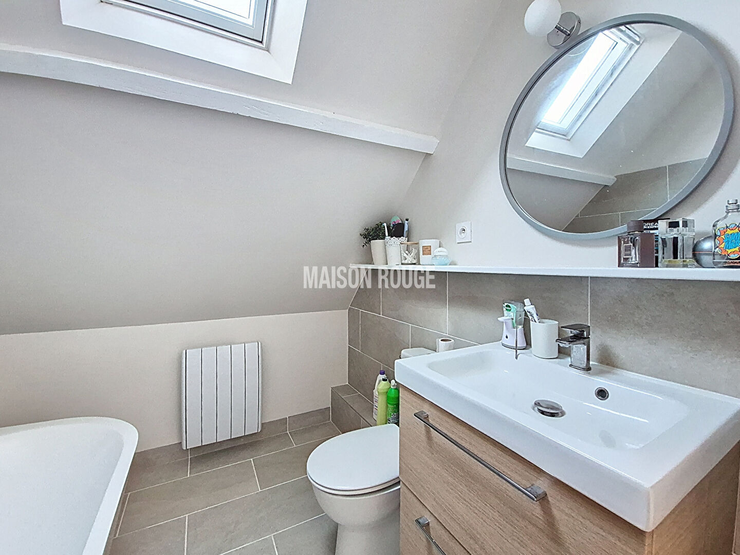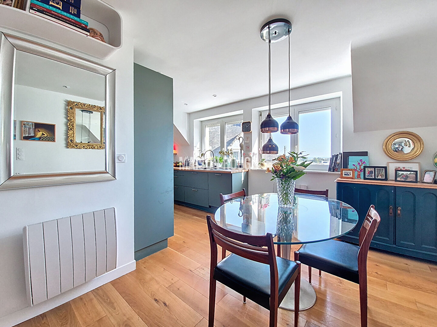 Idéalement situé entre le centre de Pléneuf-Val-André et le Val André, à seulement 700m de la plage, ce superbe appartement duplex séduira par sa luminosité, ses volumes et sa rénovation de qualité. Situé au 2è et dernier étage d'un petit immeuble de 4 appartements, il offre un cadre de vie paisible avec des espaces extérieurs partagés dédiés à la détente, aux jeux et aux moments conviviaux. Entièrement rénové avec goût en 2022, l'appartement s'ouvre sur un grand salon-séjour traversant, baigné de lumière et sublimé par un parquet d'origine en chêne massif avec un aperçu mer. La cuisine ouverte aménagée et équipée prolonge cet espace de vie chaleureux et fonctionnel. Une vaste chambre exposée à l'est ainsi qu'une salle d'eau avec WC complètent ce premier niveau. A l'étage, sous les combles, un palier dessert deux chambres lumineuses supplémentaires avec un aperçu mer pour chacune, ainsi qu'une salle de bains avec WC, offrant un espace nuit parfaitement adapté à une vie de famille ou à l'accueil. Décoré avec soin, cet appartement duplex propose trois chambres, un véritable atout rare sur le secteur. Il bénéficie également de places de stationnement extérieures, d'un garage, d'une cave et d'un jardin en copropriété. Un bien clé en main, lumineux et idéalement situé, parfait pour une résidence principale ou secondaire à proximité immédiate du littoral. Prix FAI : 299 000 euros dont 4.80 % honoraires TTC à la charge de l'acquéreur. Copropriété de 12 lots - dont 4 lots habitation. Charges annuelles : 400 euros. Laure PENAULT (EI) Agent Commercial - Numéro RSAC : 897 819 025 - SAINT BRIEUC.