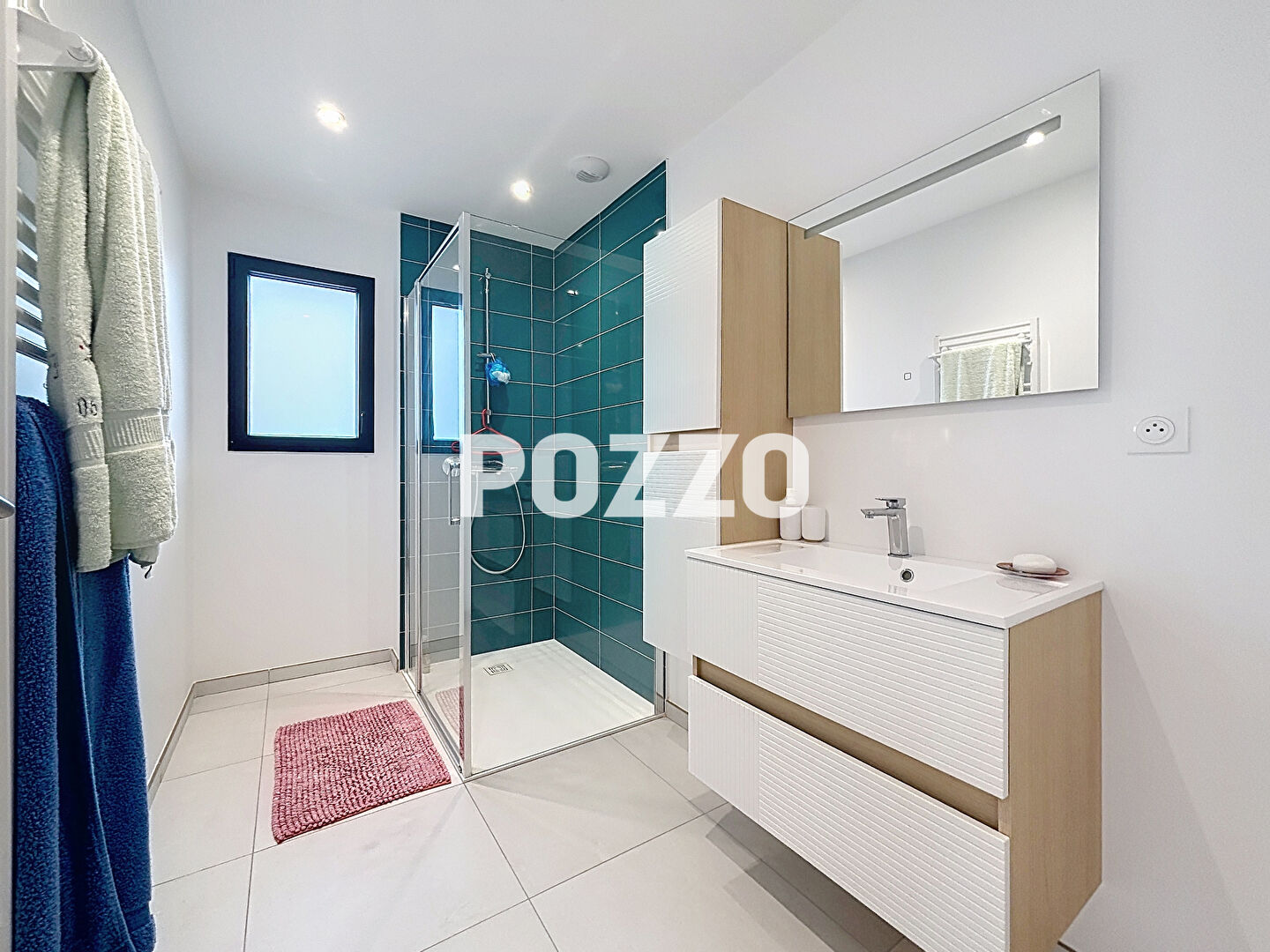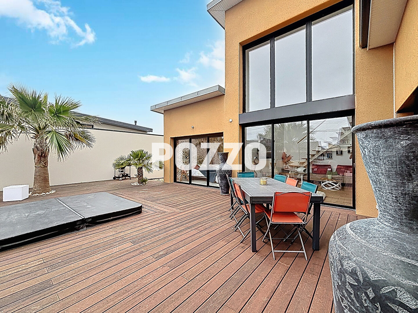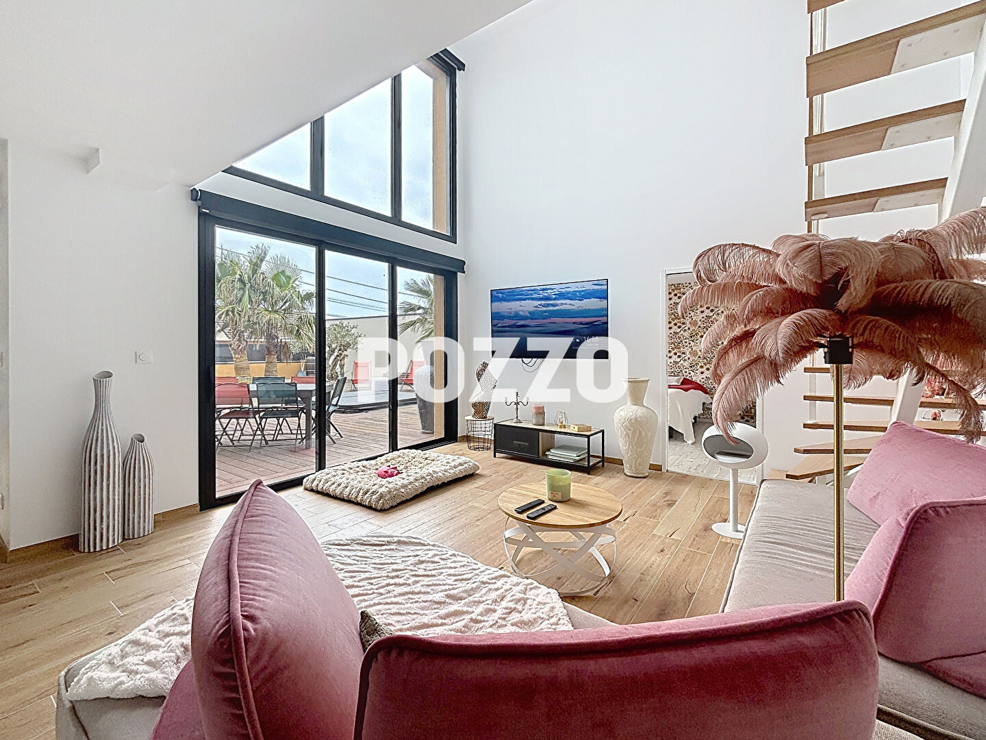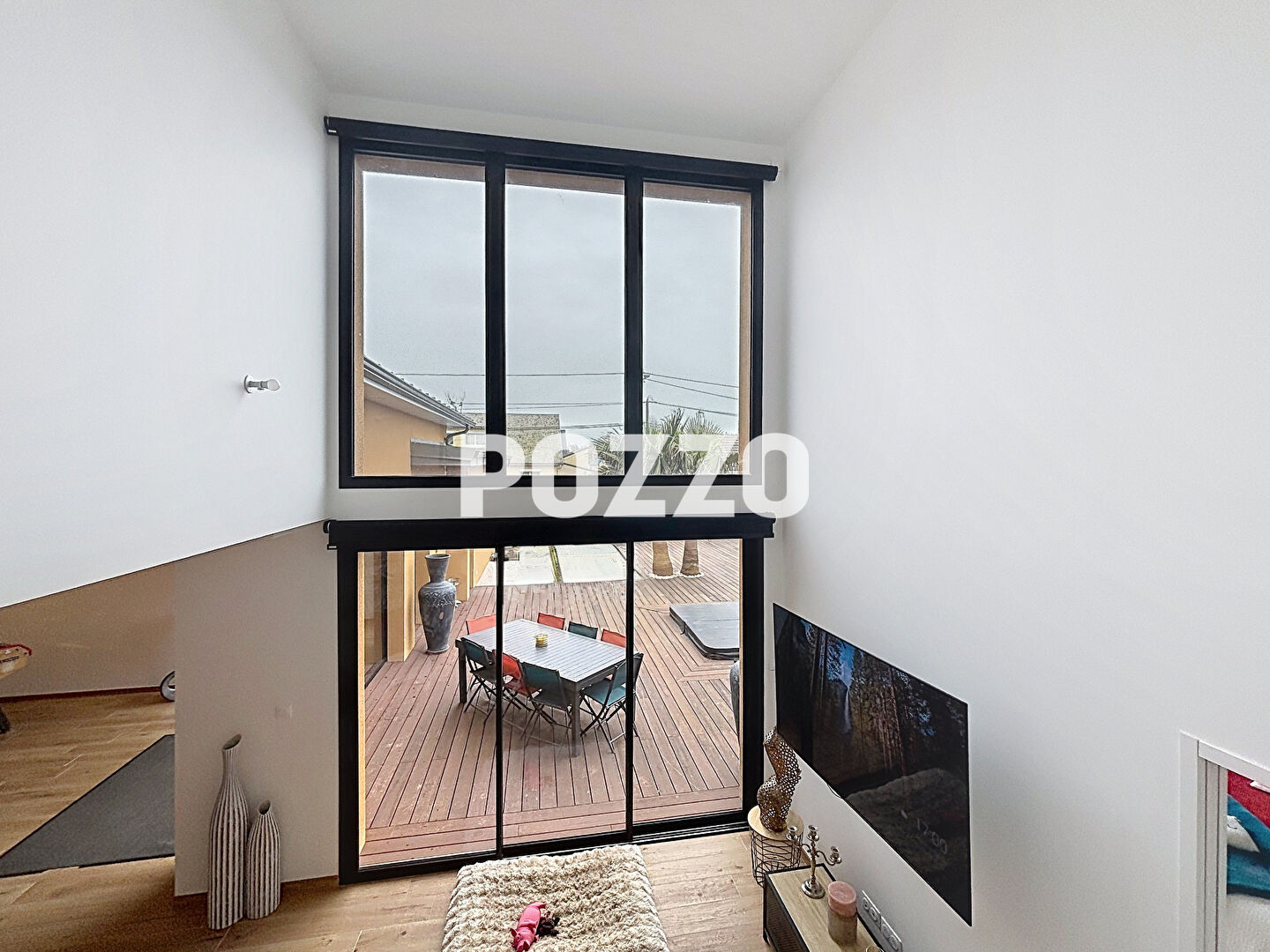 A 200 mètres de la mer, Maison 2024 contemporaine en état neuf, comprenant Joli cour/terrasse avec joli bois à l'abri des regards, espace de vie avec cuisine petit salon et salon, une chambre avec salle d'eau attenante , wc, et grand dressing, buanderie, arrière cuisine, wc avec lave mains, Etage . Palier, trois chambres, wc, deux salles d'eau. Dalle béton, pack climatisation réversible dernière génération, double garage. Portail électrique. Produit rare ; A voir absolument