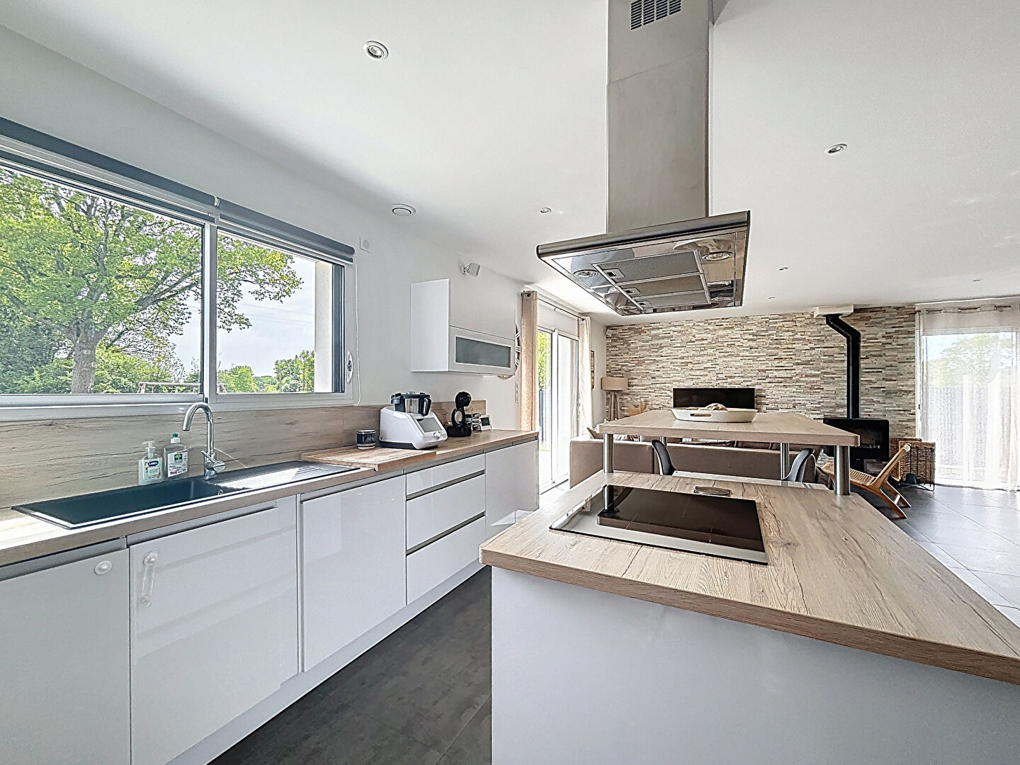 Belle maison récente en parfait état, sur une parcelle de 1000m2 environ. Elle se compose d'une grande pièce de vie donnant sur une grande terrasse plein sud, une cuisine ouverte aménagée et équipée, une suite parentale en rdc ( chambre avec dressing et salle d'eau attenante), un WC, une arrière cuisine/buanderie et une cave a vin. A l'étage: une mezzanine, 2 belles chambres, une salle de bains, un WC, un bureau et un grenier (possibilité 3 chambres à l'étage). Maison très lumineuse (exposition sud-ouest), belles prestations. Terrain entièrement clos, portail électrique, dépendances en bois. A visiter sans tarder!