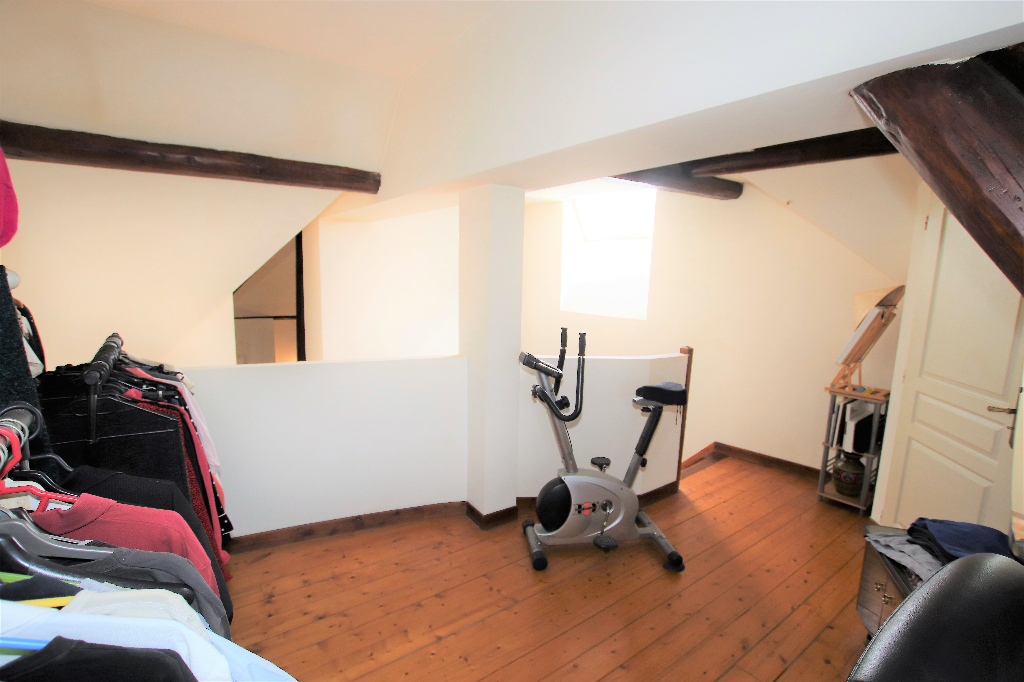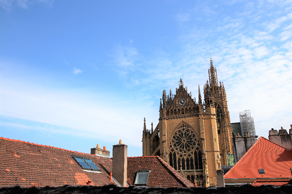 METZ HYPER CENTRE , rue du Palais - Vivre ici, c'est habiter au milieu du patrimoine architectural messin ! C'est choisir un style de vie "tout à pied" , à proximité immédiate des commerces, des restaurants, du marché couvert,,....et à quelques minutes de la gare TGV. Au calme, dans un immeuble bourgeois de la fin XIXème, en pierre de taille, au calme, beau duplex de 75 m² au sol (56m² Carrez) offrant une entrée, un salon baigné de lumière, sublimé par un plafond cathédrale, des poutres apparentes et un authentique parquet d'origine . Une cuisine dînatoire entièrement équipée s'ouvrant sur une terrasse avec vue sur la majestueuse Cathédrale Saint-Étienne ! Un vestiaire et un w.-c. avec lave-mains. A l'étage, une mezzanine, une chambre, une salle d'eau avec w.-c. et un espace buanderie. Chauffage gaz individuel Immeuble bien entretenu avec faibles charges. En annexe : une cave de 25 m² environ . Rare ! A ne pas rater, Coup de coeur assuré . Classe énergie : C Copropriété de 6 lots - dont 4 lots habitation. Charges annuelles : 782 euros.