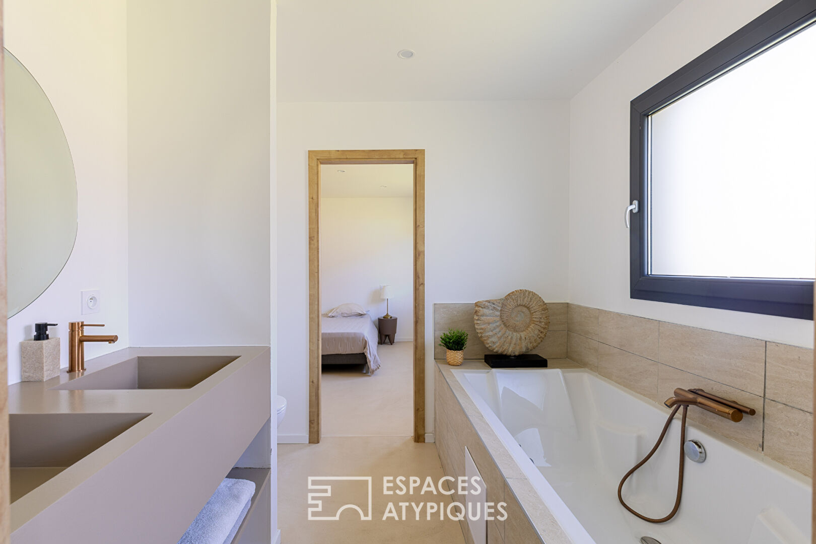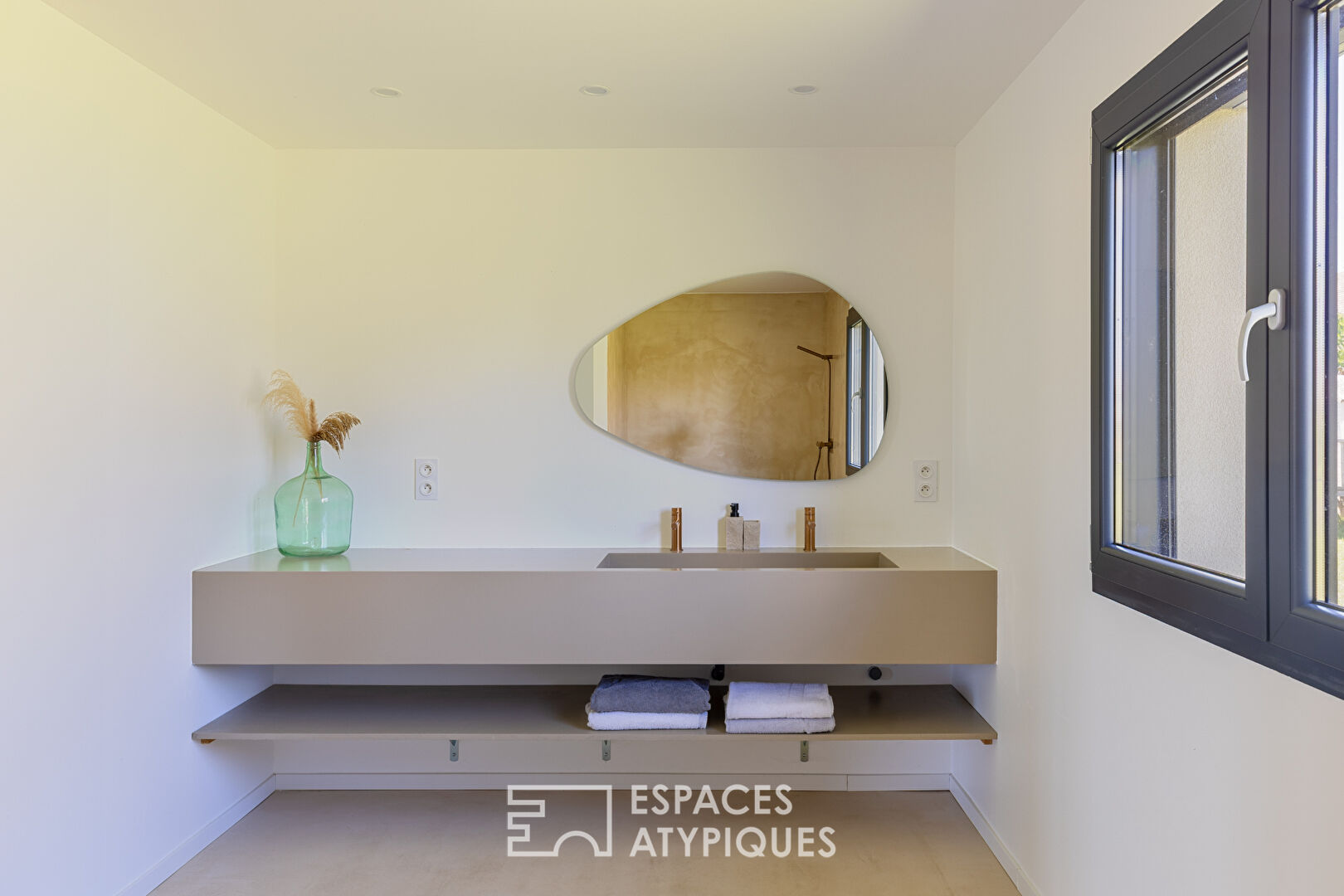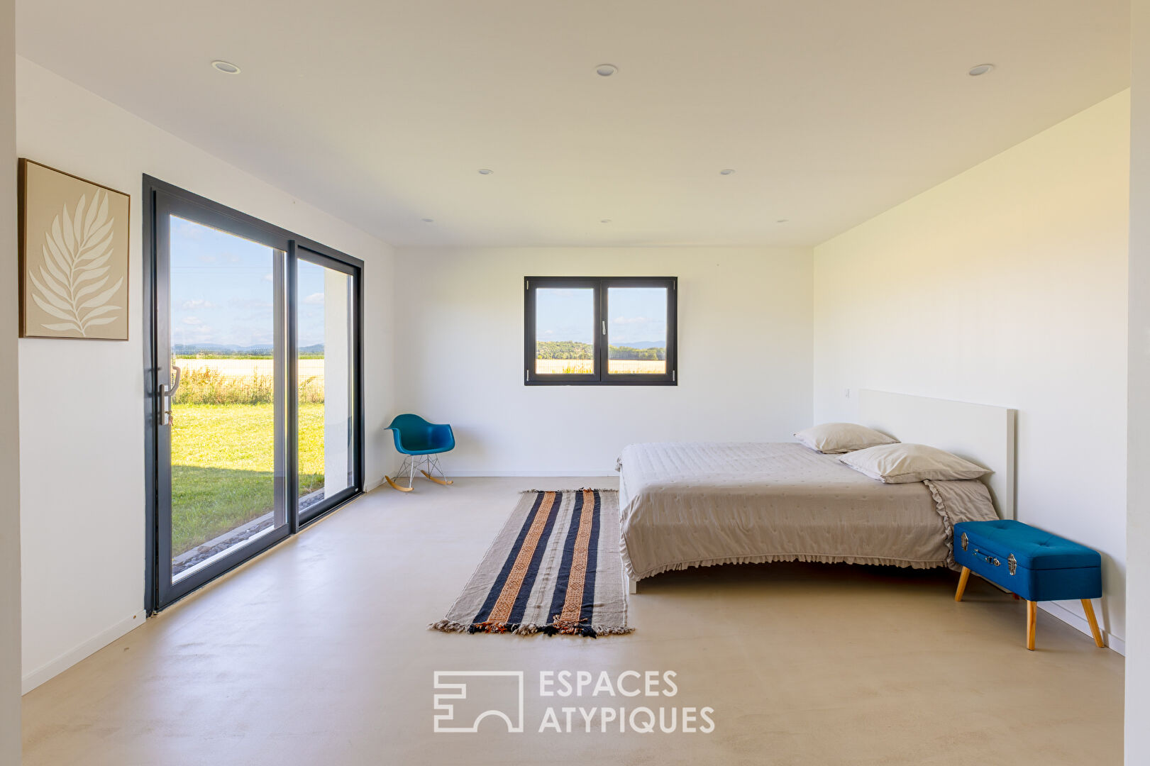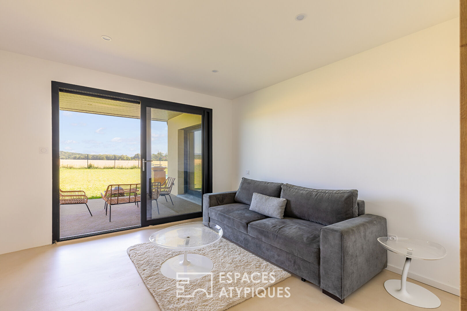 Située à la lisière d'une zone champêtre avec vue sur les Vosges, cette maison contemporaine de 296 m² séduit par ses volumes généreux et son environnement privilégié. Son agencement permet une véritable vie de plain-pied, avec l'ensemble des pièces principales réunies au rez-de-chaussée. Récente et soigneusement conçue, elle associe lignes épurées, volumes ouverts et lumière naturelle. Le sol en béton ciré ainsi que la très belle cheminée suspendue soulignent son caractère résolument moderne, tandis que la grande pièce à vivre, ouverte sur l'extérieur par de larges baies vitrées, s'harmonise parfaitement avec la piscine et le jardin avec vue dégagée. L'entrée mène à un double séjour baigné de lumière, prolongé par une cuisine ouverte pensée pour les moments de partage. L'espace nuit comprend quatre chambres, dont une suite parentale avec double dressing et salle de bain privative. Une seconde salle de bain, ainsi qu'un dressing desservant deux chambres, apportent confort et praticité au quotidien. A l'étage, une vaste pièce ouverte offre un espace modulable, idéal pour un bureau, une salle de jeux ou un espace détente. Côté fonctionnalité, un double garage avec accès direct à la buanderie, deux terrasses et une cour prolongent le confort de vie au quotidien. Son emplacement offre un parfait équilibre entre cadre paisible et proximité des services, pour une vie confortable au quotidien. CLASSE ENERGIE : A / CLASSE CLIMAT : A Montant moyen estimé des dépenses annuelles d'énergie pour un usage standard, établi à partir des prix moyens des énergies indexés sur les années 2021, 2022, 2023 (abonnements compris) : entre 1 170 et 1 650 euros Contact : Morgane 06.08.52.12.02 Morgane SCHLATTER (EI) Agent Commercial - Numéro RSAC : 930539382 - MULHOUSE.