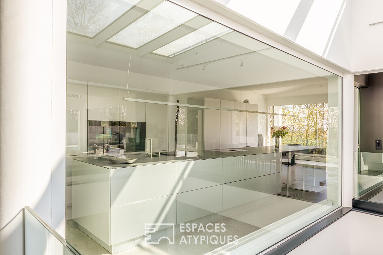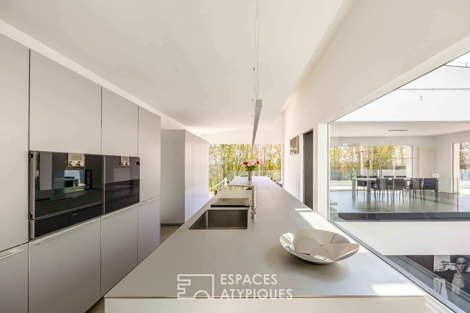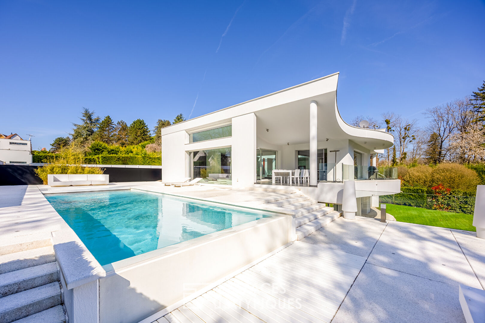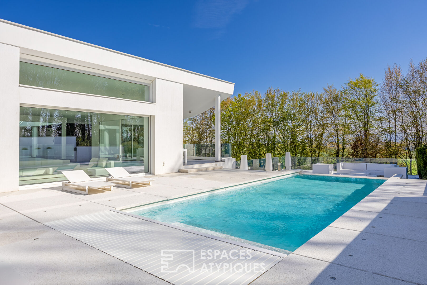 Située au coeur d'un charmant village entre Bâle et Mulhouse, à 10 minutes de Sierentz, cette superbe réalisation d'architecte de 374 m² prend place sur un terrain verdoyant de 16 ares. Nichée au bout d'une impasse, ses volumes exceptionnels sont protégés des regards indiscrets et proposent des finitions haut de gamme. Construite en 1995, elle a bénéficié en 2022 d'une rénovation intégrale venue sublimer ses lignes affirmées et son caractère unique. Articulé autour d'un patio minéral surplombé d'un puits de lumière, le rez-de-jardin accueille la partie nuit dont toutes les pièces bénéficient d'un accès au jardin. Elle comprend une salle d'eau et quatre chambres dont une très généreuse de 55 m². La suite parentale a été conçue dans un esprit chambre d'hôtel et s'ouvre sur un généreux dressing sur mesure. La salle d'eau habillée de marbre marque la transition vers la chambre et sa vue sur la verdure. Un escalier minimaliste mariant verre et acier mène au niveau supérieur qui est consacré aux pièces de réception et dont chacune profite de l'abondante luminosité procurée par le patio. La cuisine épurée est prolongée par un espace dinatoire et jouxtée par un cellier. La salle à manger promet des instants de détente et de convivialité partagés tandis que le salon réchauffé par une cheminée offre une vue contemplative sur la terrasse et sa piscine. Une buanderie, deux caves ainsi qu'un triple garage viennent compléter les nombreux atouts de ce bien exceptionnel. Ses nombreux aménagements sur mesure particulièrement soignés et ses volumes hors nomes tournés vers l'extérieur feront le bonheur des amateurs du minimalisme et de l'épure contemporaine. Commerces à 5 min en voiture Écoles à 5 min en voiture Gare de Sierentz à 5 min en voiture Prix net vendeur 1 547 150 euros Honoraires de 3,09% à la charge de l'acquéreur soit 47 850 euros CLASSE ENERGIE : B / CLASSE CLIMAT : A Montant moyen estimé des dépenses annuelles d'énergie pour un usage standard, établi à partir des prix de l'énergie de l'année 2021 : entre 2241 et 3031 euros Contact : Sébastien 06.34.67.38.68 (3.09 % honoraires TTC à la charge de l'acquéreur.) Sébastien DEPREZ (EI) Agent Commercial - Numéro RSAC : 912 626 496 - Mulhouse.