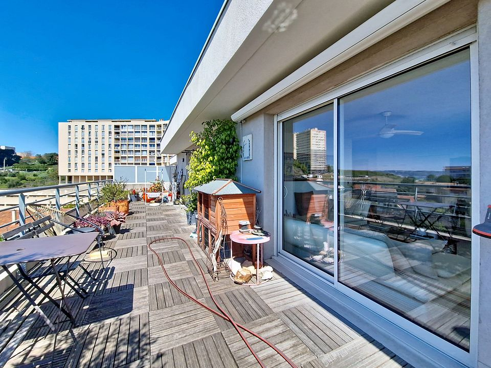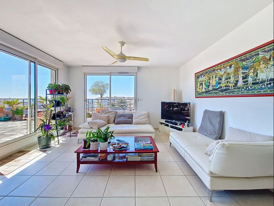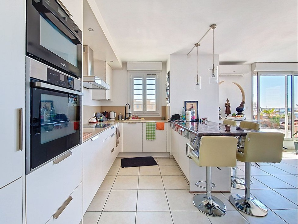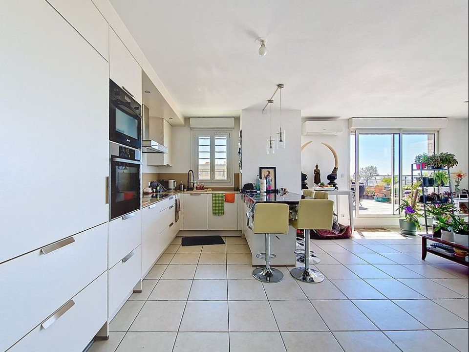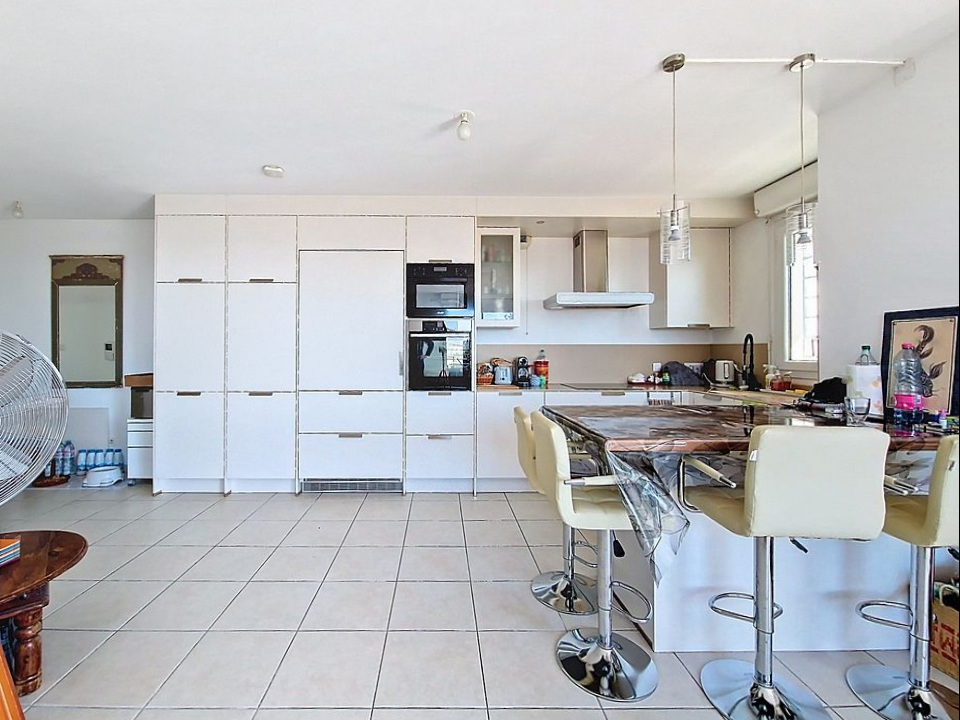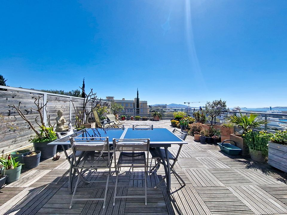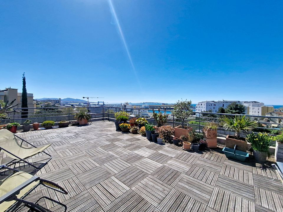 SECTEUR LA CALADE Exclusivité IMMO de France Nous vous proposons à la vente ce bien exceptionnel avec roof top vue mer de 100 m² situé dans une résidence récente (2010). Cet appartement type 3 d'une surface de 73,51 m² vous séduira par sa luminosité permanente et sa vue dégagée depuis chaque pièce du logement. Il dispose d'un vaste espace de vie salon / cuisine de 40 m² prolongé par un toit terrasse de 100 m² à la vue panoramique sur les environs et la rade de Marseille. Un coin nuit avec deux chambres, un salle de bain et WC complètent le bien. Pour votre confort, 2 stationnements sont inclus avec une place privative en extérieur et un garage fermé en sous sol de l'immeuble. Bien rare et opportunité à saisir sans tarder Contactez Monsieur Guillaume CHABANAUX 06//07//86//58//40 pour plus d'information ou pour organiser une visite. Copropriété de 35 lots (Procédure en cours). Charges annuelles : 3000 euros.