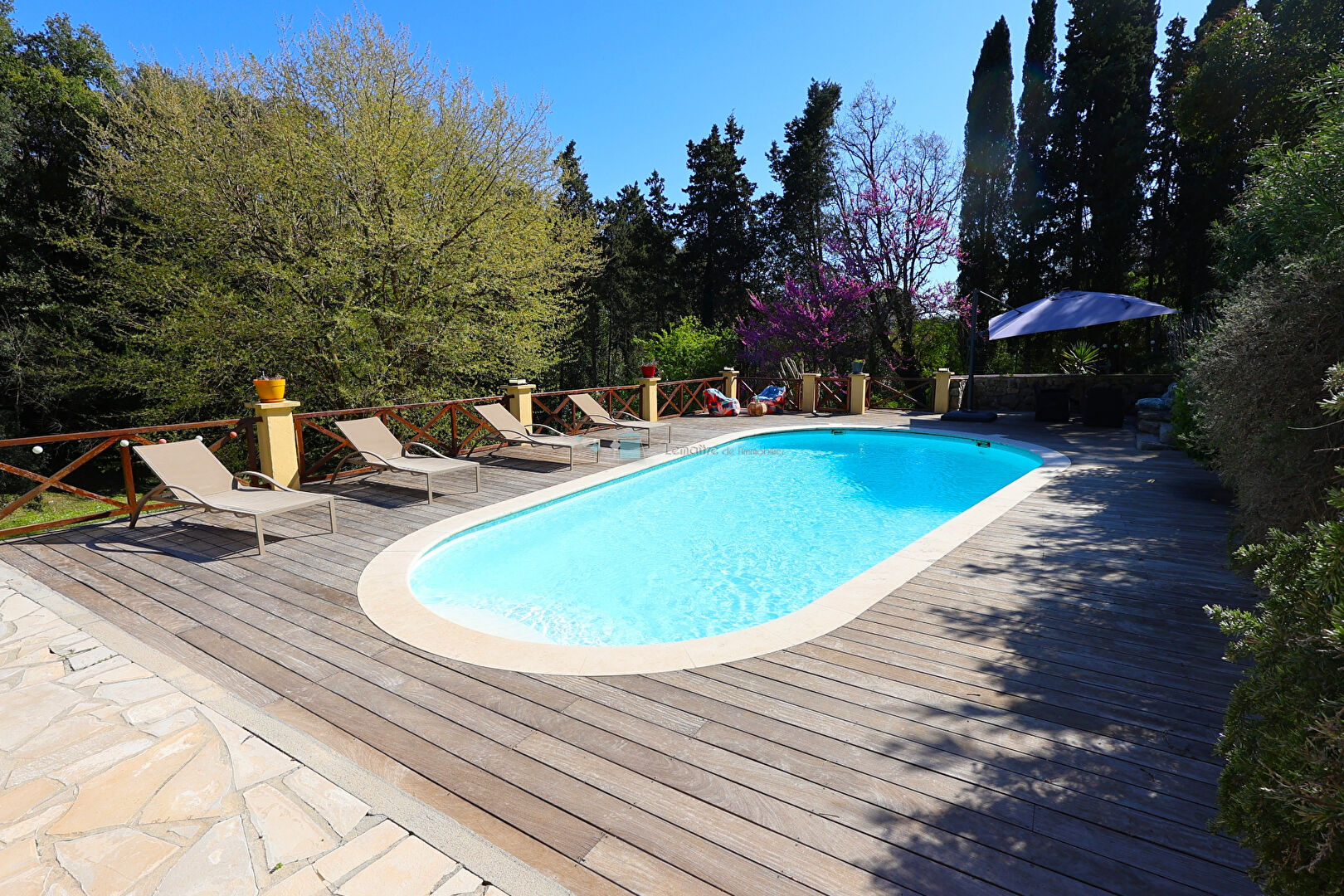* GRASSE SAINT ANTOINE * Dans un environnement agréable et calme, découvrez cette spacieuse maison aux volumes généreux offrant un cadre de vie idéal, construite sur un terrain magnifiquement arboré de 1958 m². Au rez-de-chaussée, vous trouverez une entrée, un vaste espace de vie lumineux, une cuisine équipée, deux chambres dont une suite avec salle de douche, ainsi qu'une seconde salle d'eau. Au rez-de-jardin, trois chambres supplémentaires dont une avec salle de d'eau, un bureau, un salon TV, une buanderie, un WC et une salle de sport avec sauna viennent compléter l'ensemble. A l'extérieur, profitez d'un superbe espace piscine avec son pool house avec cuisine d'été, ainsi que de nombreux équipements : garage, terrain de boules, terrain de basket. Grand parking pour stationner un maximum de véhicules. Assainissement tout à l'égout. (4.51 % honoraires TTC à la charge de l'acquéreur.)
