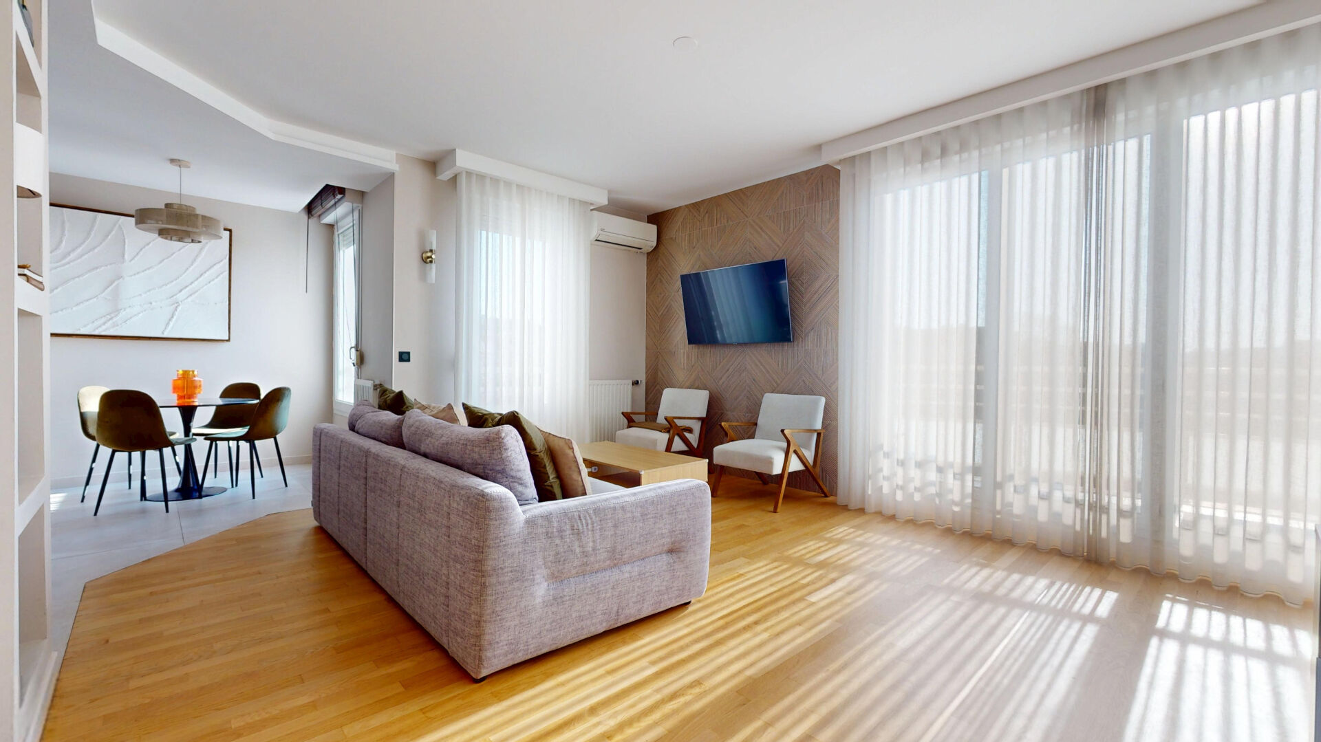 Au coeur de l'emblématique quartier de Monplaisir-Lumière apprécié pour son histoire et son esprit village, à proximité immédiate des commerces et des transports et à seulement quelques mètres de la place Ambroise Courtois, découvrez ce magnifique T3 de 71 m2 avec terrasse entièrement rénové avec goût et des matériaux de qualité. Situé au 5ème étage avec ascenseur d'une résidence de 1995 en retrait de la rue, sécurisée et ravalée en 2023, cet appartement offre un cadre de vie calme et agréable. Une entrée avec placard distribue d'une part une vaste pièce de vie lumineuse de 36 m2 donnant accès à une terrasse à ciel ouvert de 14 m2 exposée Est sans aucun vis-à-vis. La cuisine est ouverte, aménagée et équipée et s'intègre parfaitement dans son espace afin de créer une unité sur l'ensemble de la pièce. L'espace nuit est bien dissocié, on y retrouve deux chambres (10 et 11 m2) avec rangements et accès sur la terrasse, un cellier, un WC séparé et une salle de bains avec douche, baignoire et placard buanderie. Prestations de qualité : parquet chêne massif, carrelage grand format Porcelanosa, robinetterie Grohe, rideaux Heytens sur mesure, fenêtres double vitrage, volets motorisés, climatisation réversible, nombreux rangements. Charges annuelles de 2.400 euros (comprenant l'eau), copropriété composée de 62 lots principaux, pas de procédure en cours, DPE classe C. Une cave complète cette vente. Possibilité d'acquérir en sus un garage double en enfilade pour 40.000 euros. Dossier et visite sur demande. Copropriété de 62 lots. Charges annuelles : 2400 euros.