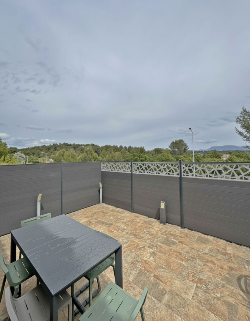 L'agence ABC IMMO vous propose de découvrir cette agréable maison mitoyenne, idéalement située au coeur d'une résidence sécurisée, calme et parfaitement entretenue. Implantée en plein centre de Rousset, elle offre un cadre de vie calme et verdoyant tout en restant à seulement quelques minutes d'Aix-en-Provence. Édifiée sur deux niveaux, la maison se compose au rez-de-chaussée d'un bel espace de vie lumineux avec une cuisine ouverte, moderne et fonctionnelle, donnant directement sur le séjour. Celui-ci s'ouvre sur une terrasse exposée sud-est, parfaite pour profiter des journées ensoleillées. A l'étage, vous trouverez trois chambres spacieuses et lumineuses, ainsi qu'une salle de bains avec douche. Le bien dispose également d'un garage offrant un potentiel d'aménagement supplémentaire, ainsi que de deux places de stationnement privatives. A proximité immédiate des commerces, écoles et commodités, cette maison conviendra idéalement à une famille ou à toute personne recherchant un environnement paisible et pratique. Une belle opportunité à saisir dans un secteur recherché ! Copropriété de 8 lots. Charges annuelles : 1092 euros Pas de procédure en cours. Et les cent quinze millièmes (115/1000 èmes) de la propriété du sol et des parties communes générales. Les informations sur les risques auxquels ce bien est exposé sont disponibles sur le site Géorisques : www.georisques.gouv.fr Pour plus d'informations ou organiser une visite, contactez Ines Assailly au 07.49.15.16.72 Copropriété de 8 lots. Charges annuelles : 1092 euros.
