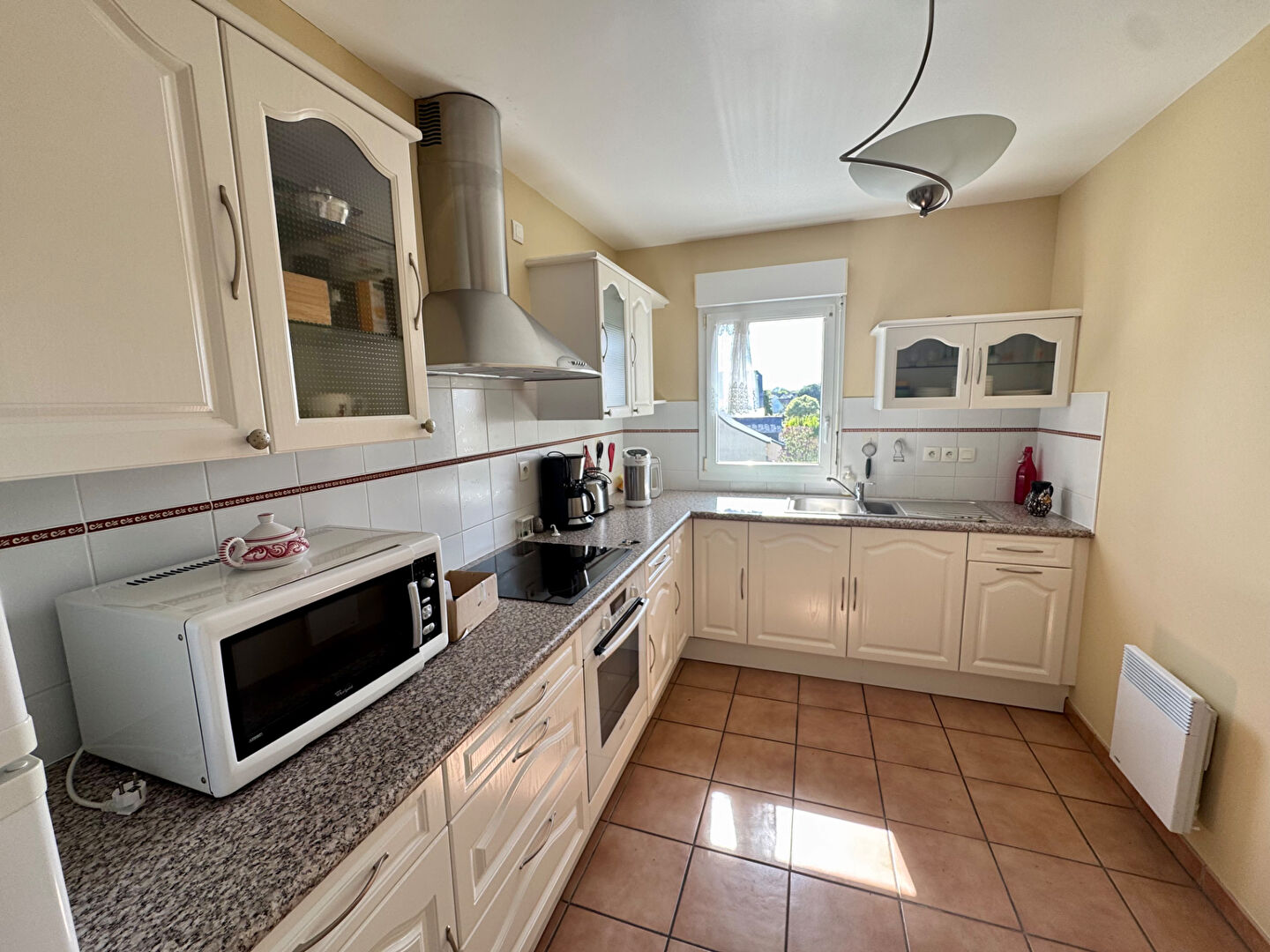 A VENDRE, PLEIN BOURG DE PLOUFRAGAN, Appartement 2 pièces au deuxième étage avec ascenseur d'une copropriété de 2002 de bon standing comprenant : entrée/dégagement avec placard, chambre avec placard, cuisine indépendante aménagée/équipée, salon/séjour donnant sur balcon exposé sud-ouest, salle d'eau, wc séparés. cave et place de parking sécurisée en sous-sol. chauffage individuel électrique. CALME, TRÈS BON ÉTAT GÉNÉRAL, ENSOLEILLÉ, PROCHE DE TOUTES COMMODITÉS. (6.90 % honoraires TTC à la charge de l'acquéreur.) Copropriété de 42 lots. Charges annuelles : 1695 euros.