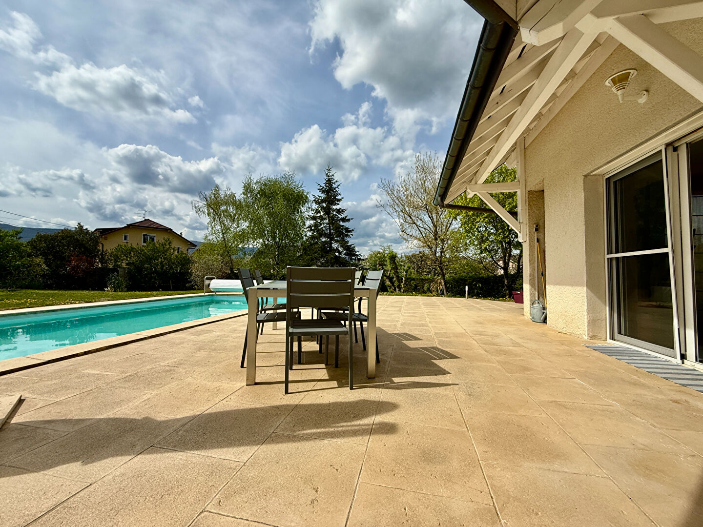 EXCLUSIVITE IMMODEC ! Maison familiale centre ville et au calme Maison individuelle construite en 2003, offrant une surface de 188 m², implantée sur un terrain clos et arboré de 1 231 m². Située dans un environnement très calme, elle bénéficie également d'une proximité appréciable avec les axes autoroutiers, d'un arrêt de bus à quelques mètres et d'une gare accessible à pied ainsi que des écoles et commerces. Dès l'entrée, vous découvrez une spacieuse pièce de vie regroupant cuisine, salle à manger et salon, agrémentée d'un poêle à bois, apportant confort et convivialité. Celle-ci est baignée de lumière grâce à de nombreuses ouvertures donnant accès à une agréable terrasse de 120 m² avec piscine. Le rez-de-jardin comprend également une chambre avec salle d'eau, un WC indépendant ainsi qu'une buanderie avec accès direct au garage. A l'étage, un espace ouvert met en valeur une belle charpente et dessert actuellement quatre chambres, ainsi qu'une pièce dressing pouvant faire office de chambre ou de bureau, une salle de bain et un WC indépendant. Côté confort, le bien est équipé d'un chauffage par pompe à chaleur avec plancher chauffant et radiateurs, d'un ballon thermodynamique et de panneaux photovoltaïques permettant une consommation électrique optimisée. Menuiseries aluminium avec volets roulants électriques. Garage avec porte motorisée et portail électrique. Plusieurs places de stationnement extérieures viennent compléter ce bien. Le jardin, bien exposé et soigneusement arboré (cerisier, olivier, érable, figuier, lilas, sapin?), offre un cadre de vie agréable et verdoyant. Contactez-nous dès maintenant afin d'effectuer une visite ! Ce bien vous est proposé en exclusivité par l'agence IMMODEC. Pour tous renseignements complémentaires ou visites, n'hésitez pas à contacter votre agence LOCALE et INDÉPENDANTE. Nous nous ferons un plaisir de vous accompagner dans votre projet d'acquisition, vente ou investissement locatif !