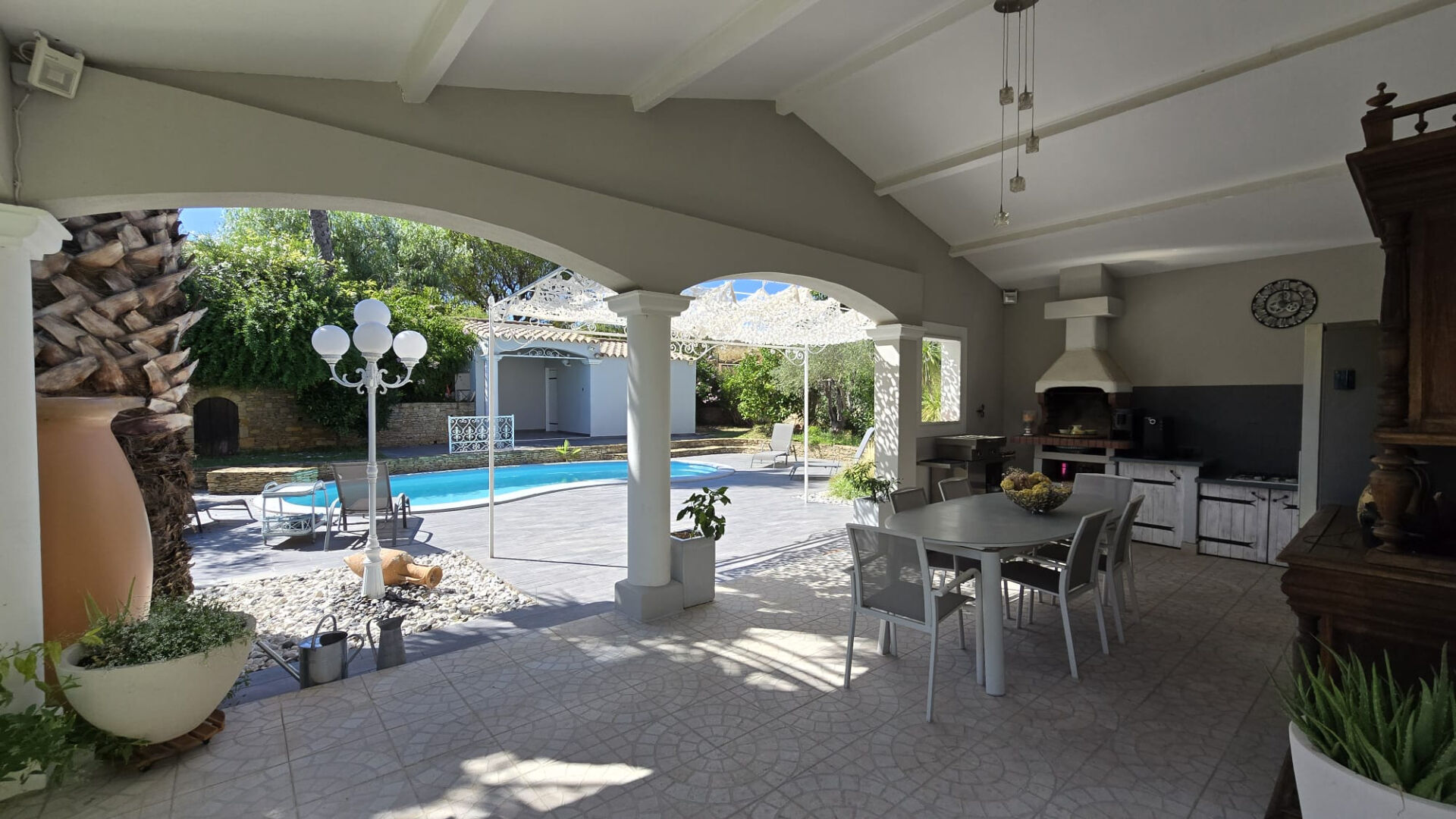 LE BRULAT, l'agence COUZINET IMMOBILIER est heureuse de vous proposer à la vente cette magnifique villa. Sur un beau terrain arboré de 1000m² avec piscine, très belle villa de 138M² comprenant de plain-pied une grande entrée, un vaste séjour-salon donnant sur deux terrasses dont une couverte avec cuisine d'été, une veranda bibliothèque, une cuisine ouverte entièrement équipée avec buanderie, trois chambres, wc et salle de bains. A l'étage une grande mezzanine, une chambre et une salle d'eau avec wc. Grand garage, atelier.