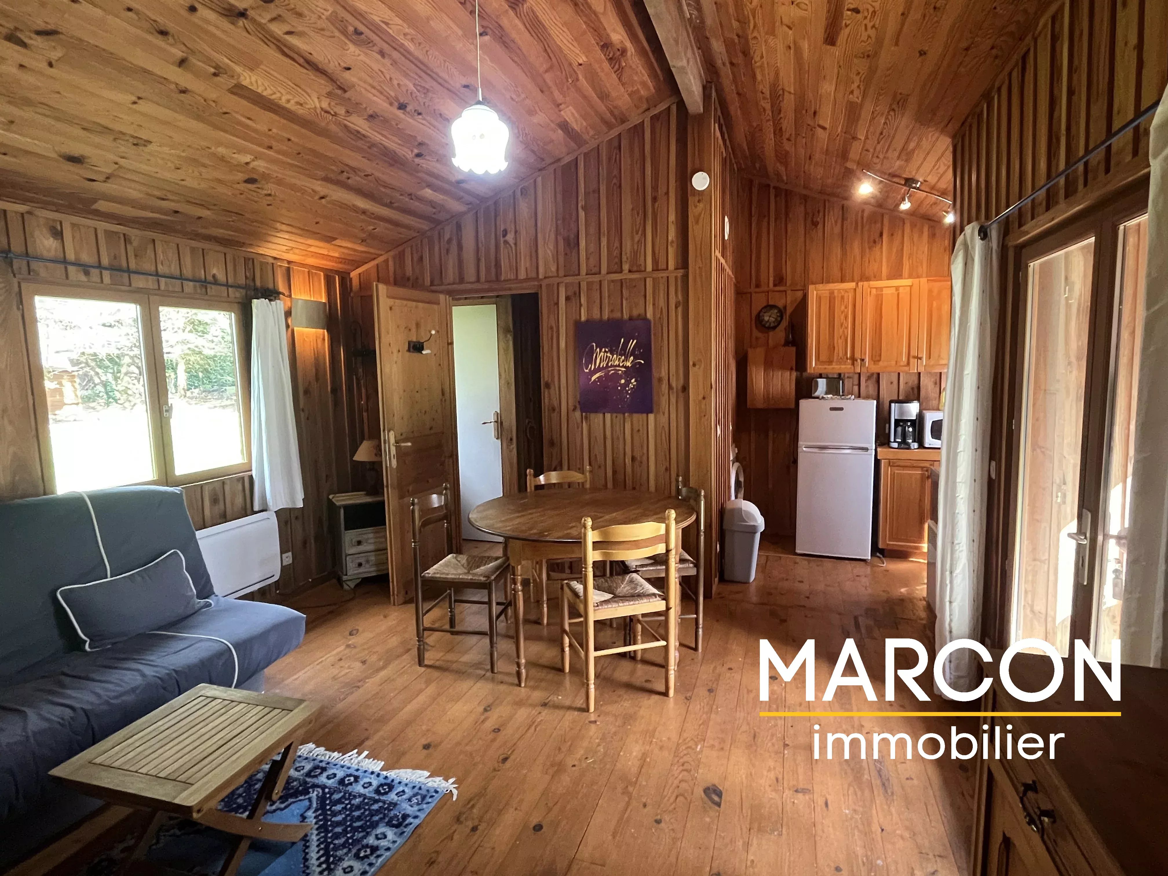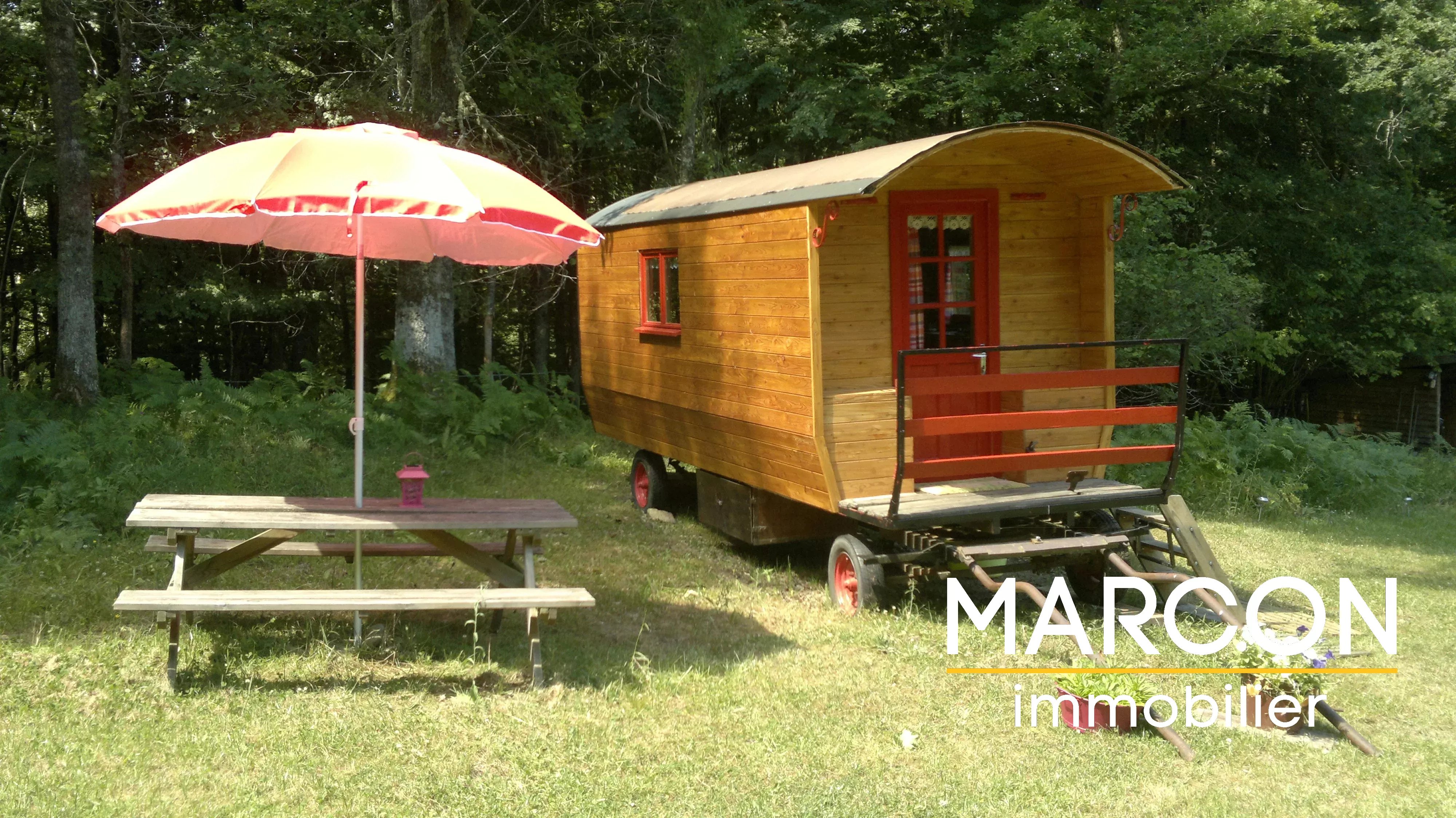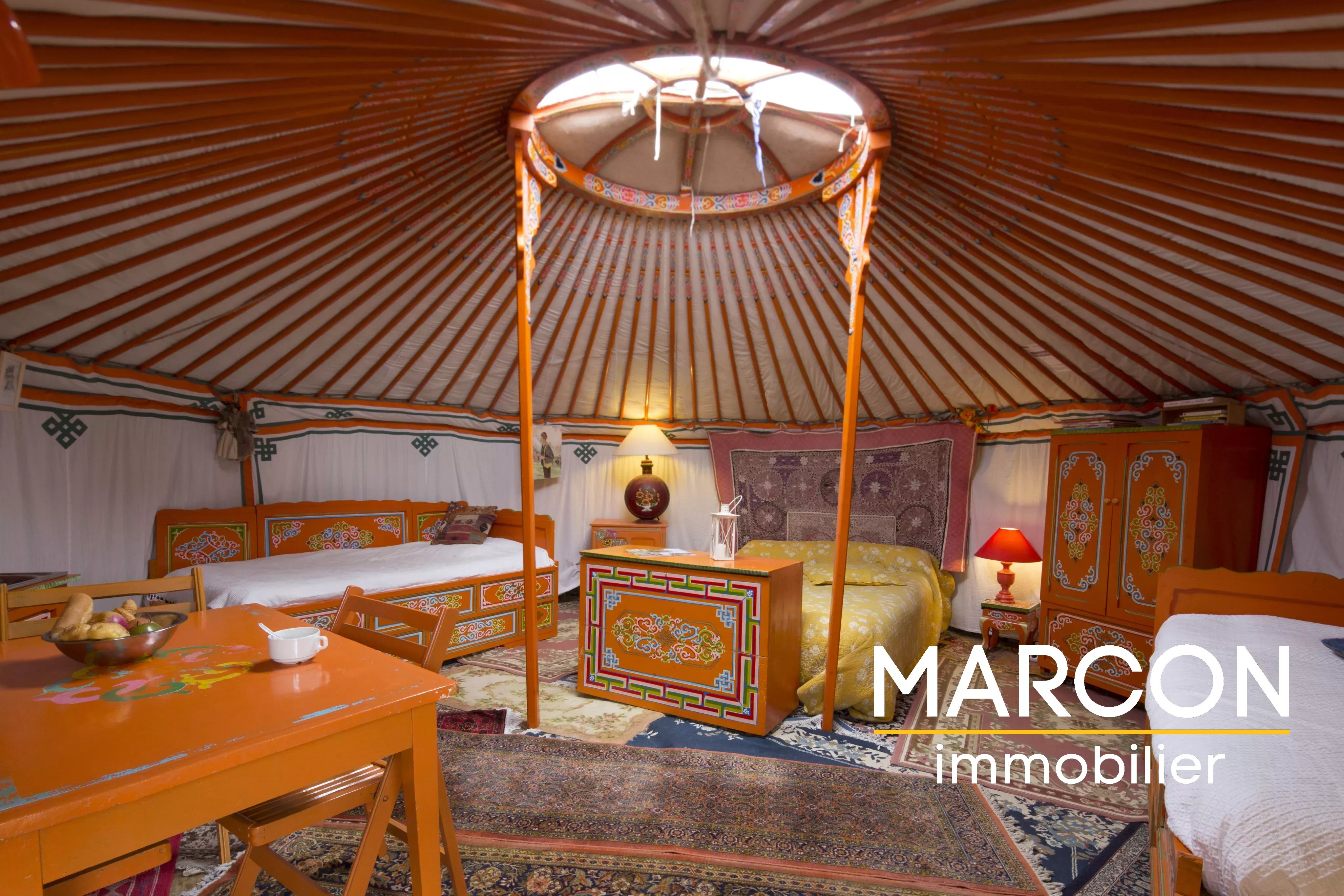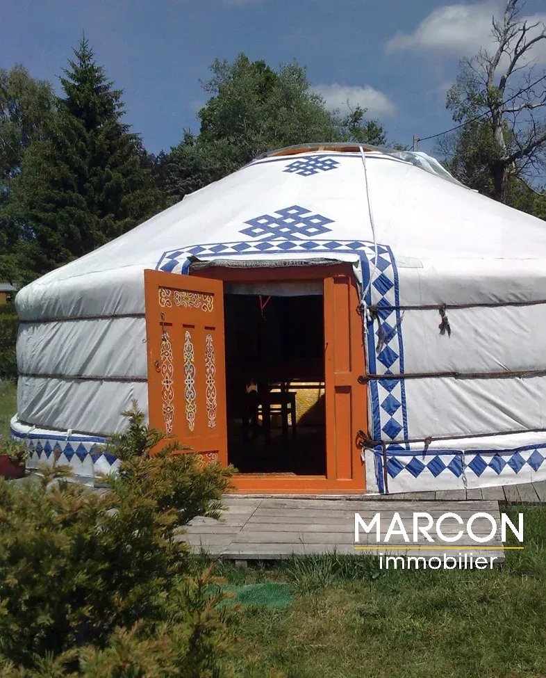 Propriété comprenant 3 chalets de type F3, 2 yourtes et 1 roulotte, idéale pour un projet touristique ou familial.