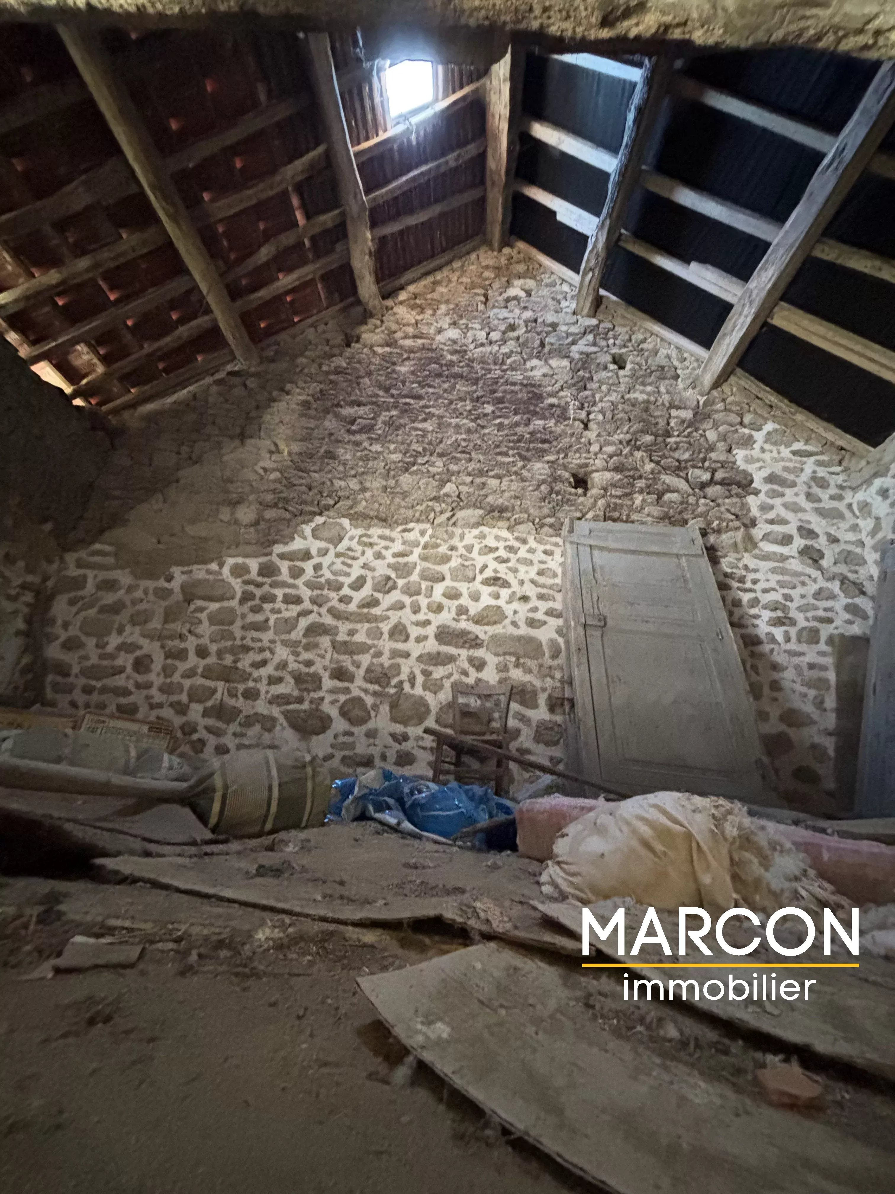 Une maison à rénover en partie sur cave comprenant un rez-de-chaussée de : Cuisine, salon, salle d'eau-wc. 1er étage : palier, chambre, pièce, grenier.