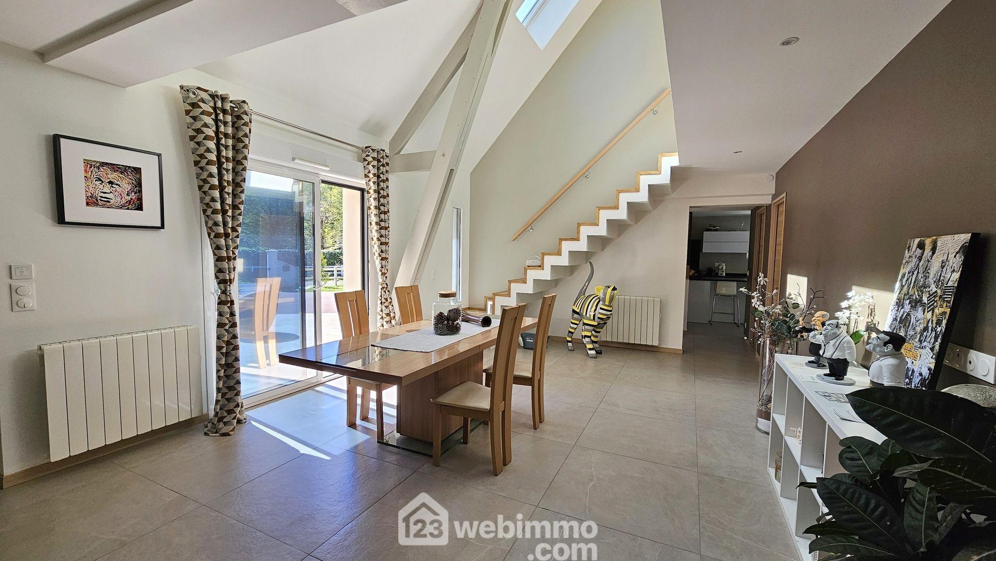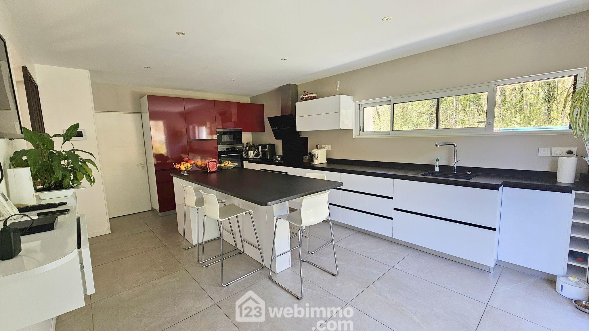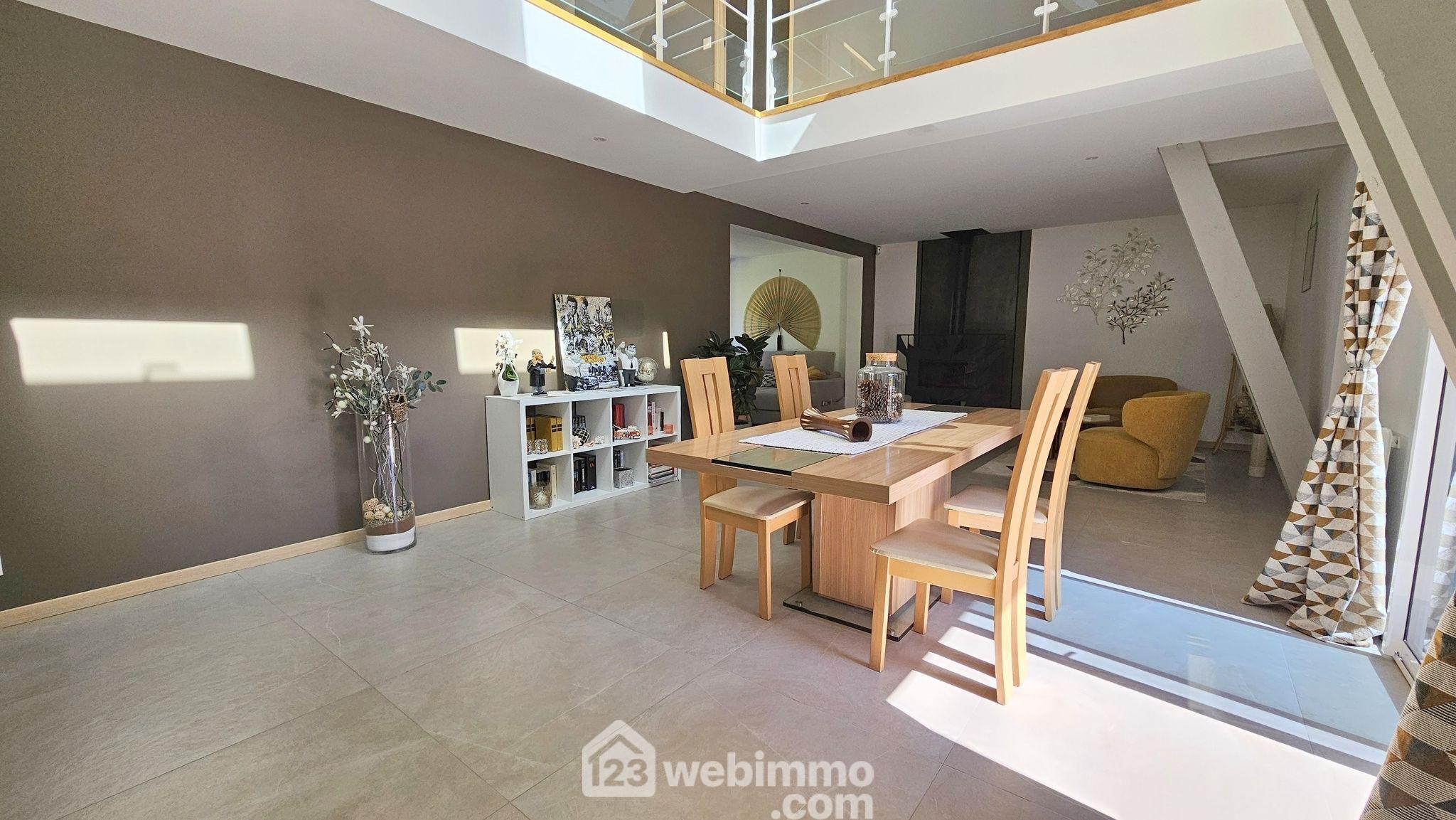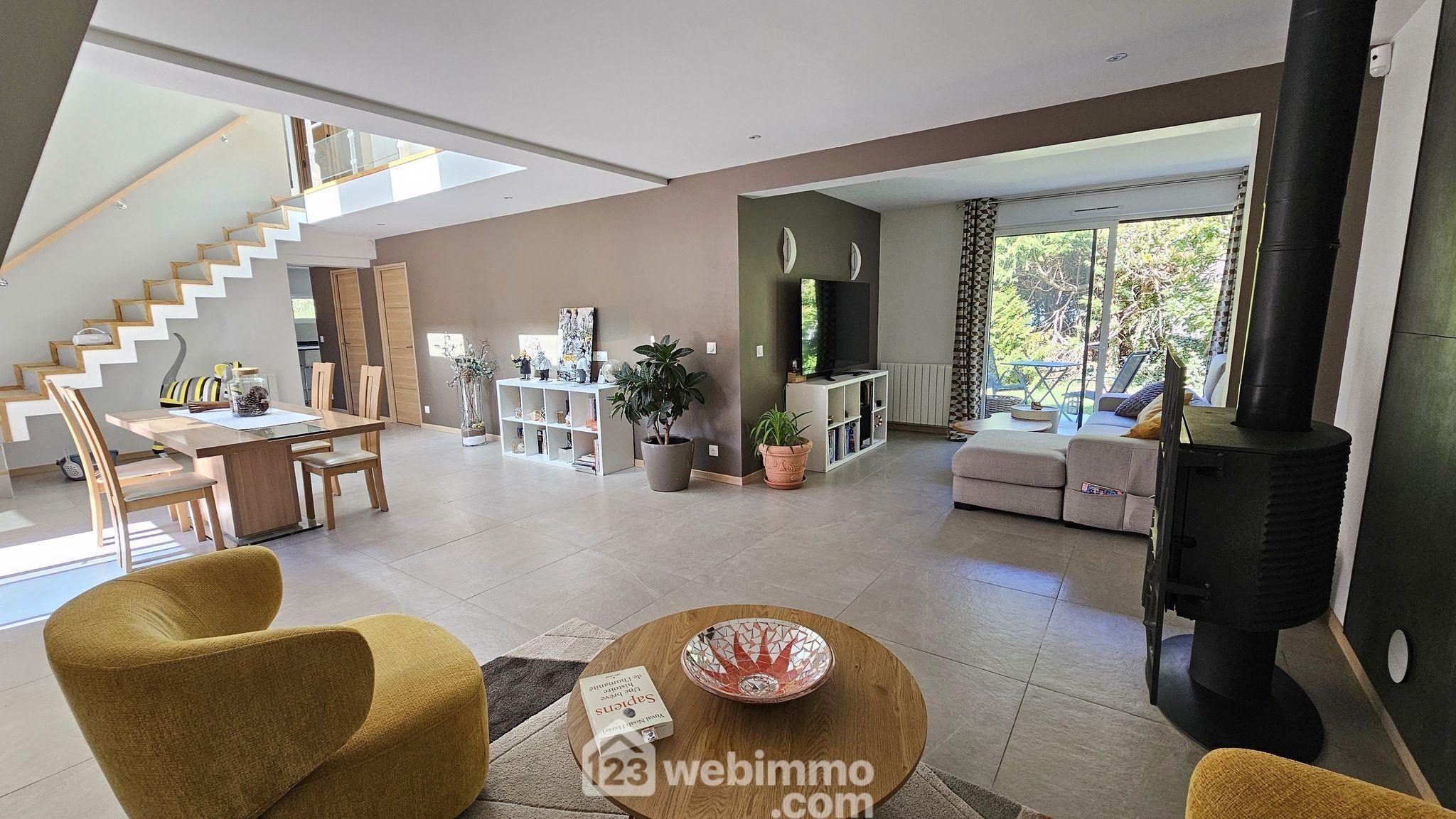 Votre agence 123webimmo vous présente : Maison contemporaine rénovée avec prestations haut de gamme ? Vie de plain-pied et cadre privilégié. Située dans un secteur très recherché, en lisière de forêt, cette maison d'environ 169 m² habitables entièrement rénovée en 2019 offre un cadre de vie rare, alliant modernité, confort et sérénité. Parfaitement entretenue et décorée avec goût, elle constitue un bien clé en main, sans aucun travaux à prévoir. Dès l'entrée, un espace accueillant avec cellier distribue harmonieusement les pièces de vie. La cuisine indépendante de 22 m², entièrement équipée, propose un espace fonctionnel et convivial. Elle est complétée par un vaste séjour / salle à manger d'environ 50 m², baigné de lumière et agrémenté d'un poêle moderne, créant une ambiance chaleureuse et élégante. Le rez-de-chaussée offre une véritable vie de plain-pied, grâce à une suite parentale avec dressing et salle d'eau privative, ainsi qu'un WC indépendant et une grande buanderie. À l'étage, une magnifique mezzanine très lumineuse, idéale pour un bureau ou un espace détente, dessert deux chambres supplémentaires, chacune aménagée en suite avec salle d'eau privative et dressing, offrant un confort rare. Un WC indépendant complète ce niveau. L'ensemble de l'étage est sublimé par un parquet en chêne massif, apportant élégance et chaleur à l'espace nuit. La configuration permet également d'envisager facilement une quatrième voire une cinquième chambre selon vos besoins. Les prestations techniques sont à la hauteur : menuiseries coulissantes en aluminium avec double vitrage, volets roulants électriques, thermomètre connecté, ainsi qu'un dispositif complet de sécurité incluant alarme, interphone et vidéophone. À l'extérieur, le terrain de 1 490 m² clos accueille deux magnifiques terrasses en travertin, sans vis-à-vis, permettant de profiter pleinement des différentes expositions au fil de la journée. Le jardin, soigneusement aménagé, dispose également de deux abris, d'un éclairage extérieur, d'un puits et d'un portail motorisé. Un garage attenant avec porte automatique vient compléter les prestations et apporte un confort supplémentaire au quotidien. Une maison élégante et parfaitement pensée, où chaque détail a été soigné pour offrir un confort de vie optimal dans un environnement naturel privilégié. « L'immobilier avec sincérité et expertise, au service de votre projet de vie. » Les informations sur les risques auxquels ce bien est exposé sont disponibles sur le site du gouvernement.Informations LOI ALUR : Honoraires charge vendeur. (gedeon_26615_33050926)