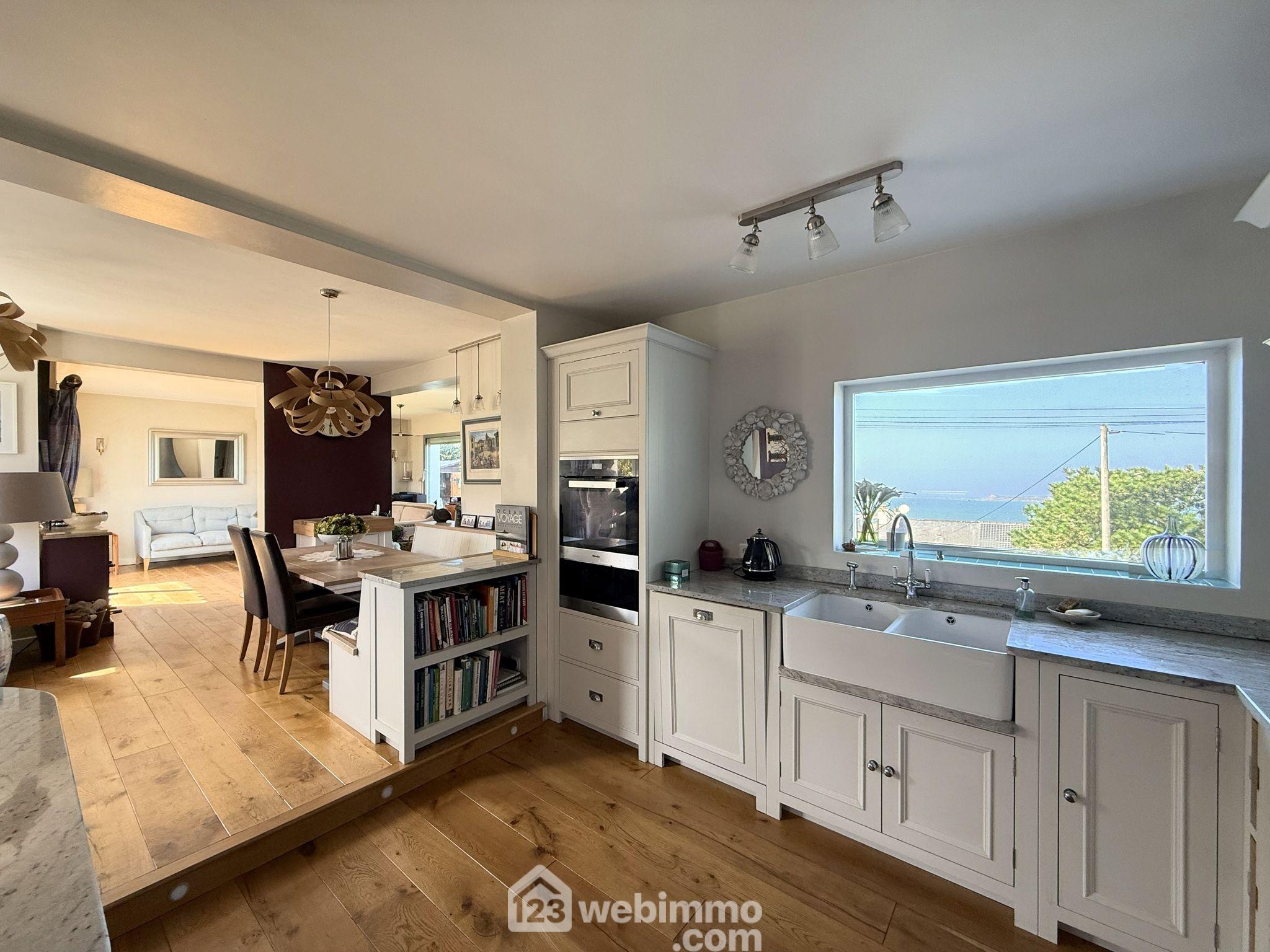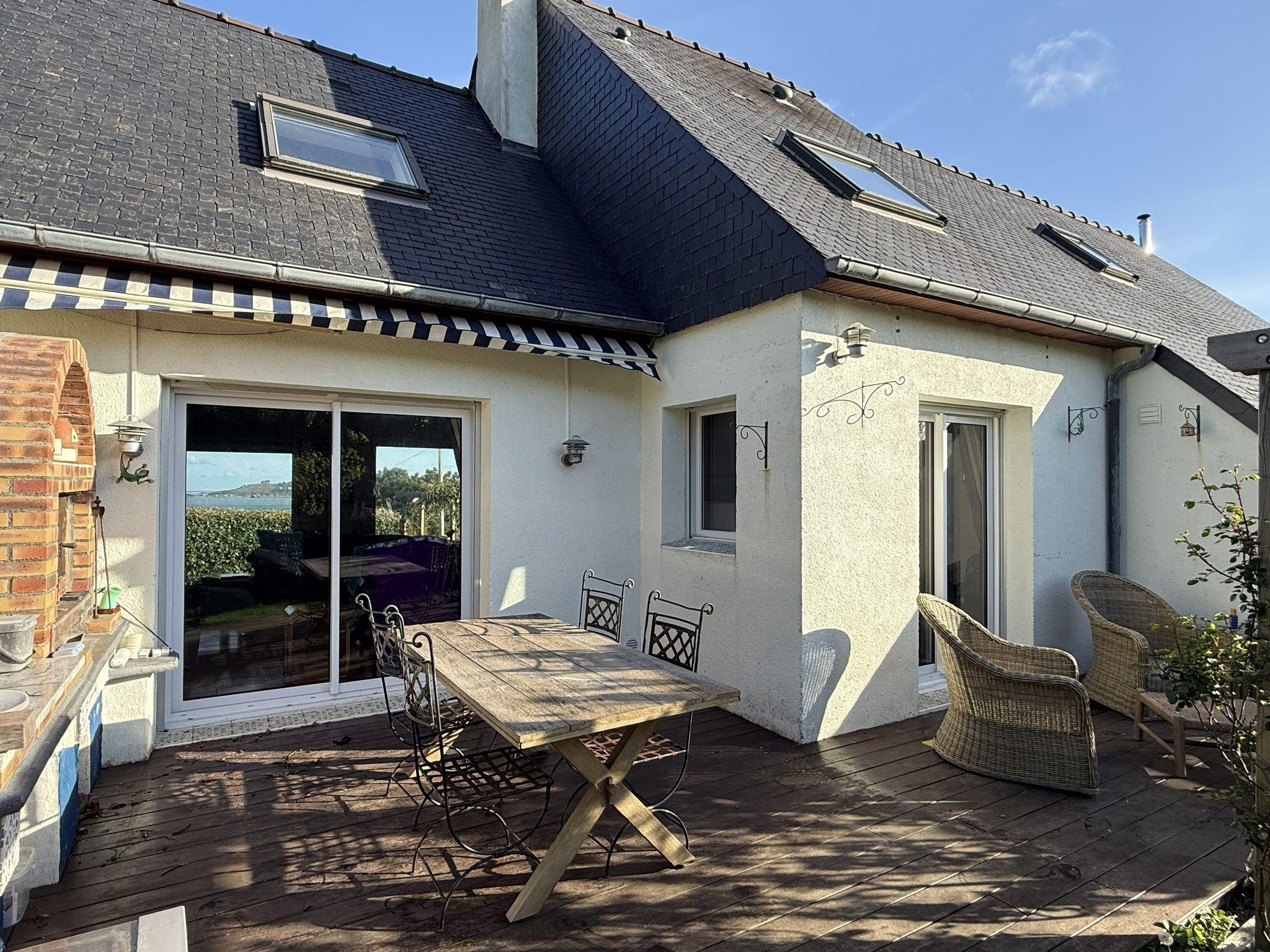 Votre agence 123webimmo vous présente : Dans les Côtes-d'Armor (22), sur la commune de Trédrez-Locquémeau, à seulement 10 minutes de Lannion et de sa gare TGV desservant la Côte de Granit Rose, à 100m de la plage et à 400m des commerces, venez découvrir cette maison de 4 chambres avec vue mer de toutes les pièces, surplombant la magnifique plage familiale de Notigou. Retrouvez l'intégralité des photos, la vidéo de l'environnement les plans et la localisation de cette maison, directement sur le site de votre agence 123webimmo de Trédrez-Locquémeau. Sur un terrain de 800 m², cette maison de 125 m² construite dans les années 1980, a été rénovée et agrandie à plusieurs reprises et offre aujourd'hui de généreux espaces de vie ou chaque pièce bénéficie d'une vue mer. La maison se déploie sur deux niveaux. Le rez-de-chaussée comprend un bel espace de vie ouvert avec une vue sur le Dourven et la baie de Lannion, incluant un salon traversant de 29 m², une salle à manger de 15 m², une cuisine aménagée et équipée de 11 m², une buanderie / arrière-cuisine de 6 m², ainsi qu'une salle de douche toute neuve avec WC. Ce niveau se prolonge par un salon cosy de 16 m² avec poêle à granulés et une véranda de 9 m² offrant, elle aussi, une belle vue mer. À l'étage, le palier dessert trois chambres, chacune offrant une vue mer, d'une superficie de 9 à 13 m² au sol, ainsi qu'un bureau et une salle de bains avec baignoire et WC. À l'extérieur, le jardin 100% clos de 800 m² comprend un magnifique jardin à l'anglaise, un abri de jardin de 4 m², un abri bois, une terrasse en bois de 17 m² avec store banne orientée sud, et un garage de 15 m² avec grenier, eau, et électricité. Prestations : chauffage au bois et poêle à granulés, fenêtres en aluminium à double vitrage, toiture en bon état, ballon d'eau chaude sanitaire, VMC, Tout-à-l'égout, fibre optique. Retrouvez l'intégralité des photos, la vidéo de l'environnement les plans et la localisation de cette maison, directement sur le site de votre agence 123webimmo de Trédrez-Locquémeau. Les informations sur les risques auxquels ce bien est exposé sont disponibles sur le site du gouvernement : https://www.georisques.gouv.fr.Informations LOI ALUR : Honoraires : 2.73 % TTC charge acquéreur. Prix hors honoraires : 535 000 ¤. (gedeon_55045_33049740)