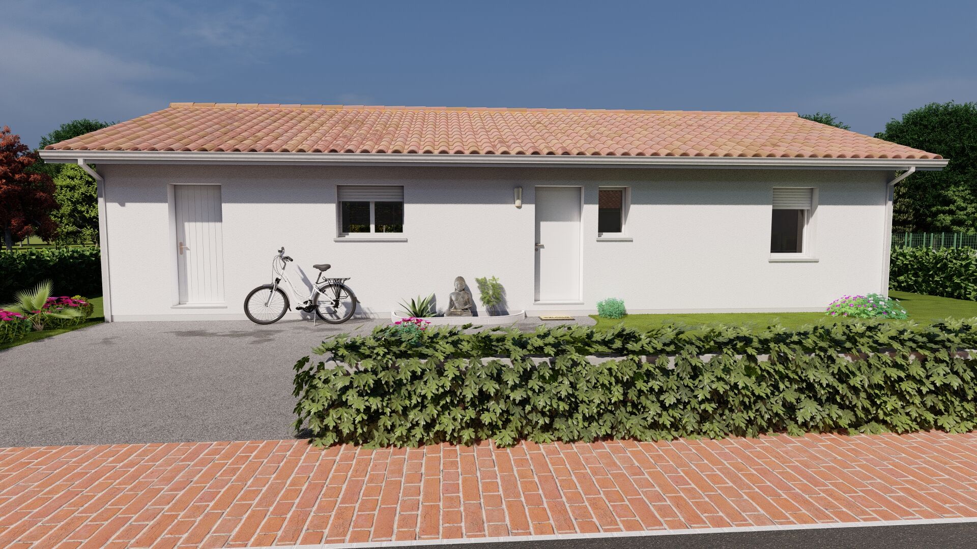 Prix comprenant le terrain + la maison + les raccordements + les coffrets + adaptation au terrain et les frais de notaire.