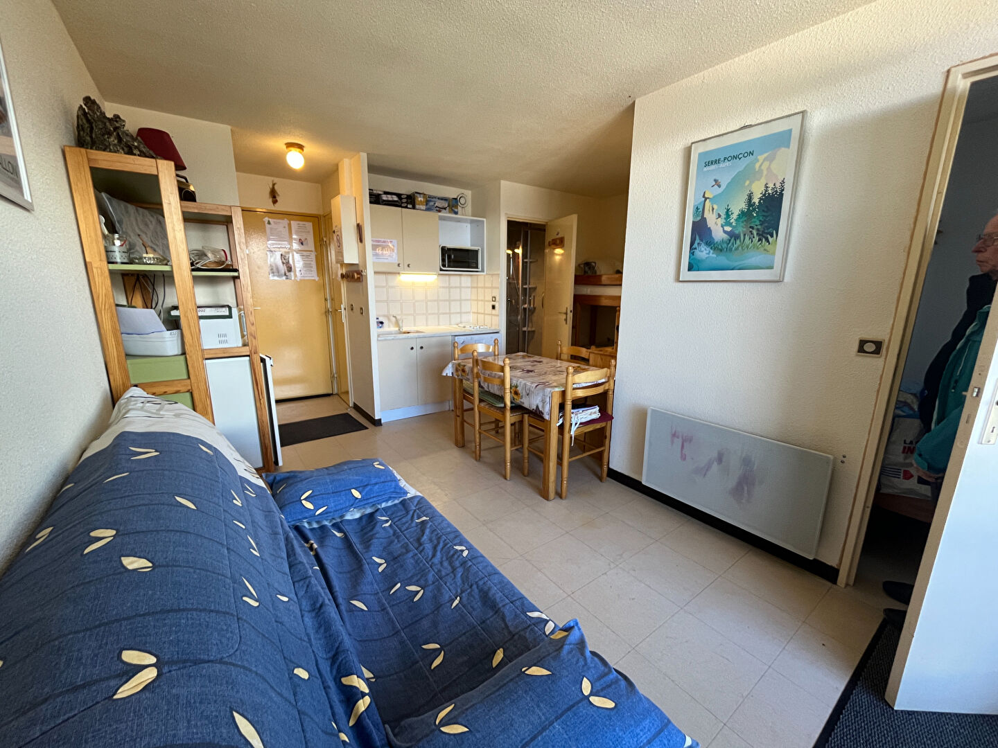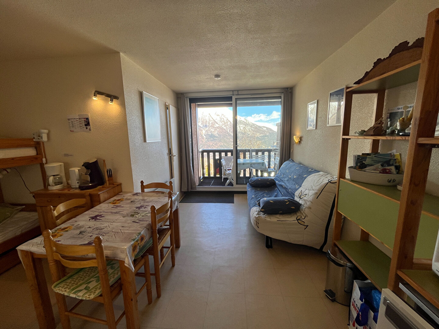 Appartements T2 dans la station de ski de Réallon dans une copropriété située sur le front de neige. Au 2e étage avec ascenseur l'appartement dispose d'un séjour cuisine ouvert sur une terrasse avec vue sur la vallée, d'un coin nui, d'une chambre, d'une salle d'eau et WC séparé. Ainsi que dans le casier à skis au rez-de-chaussée.