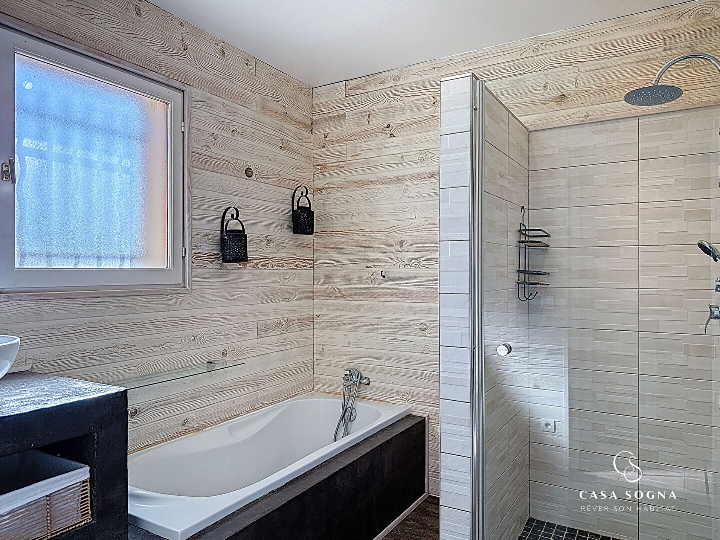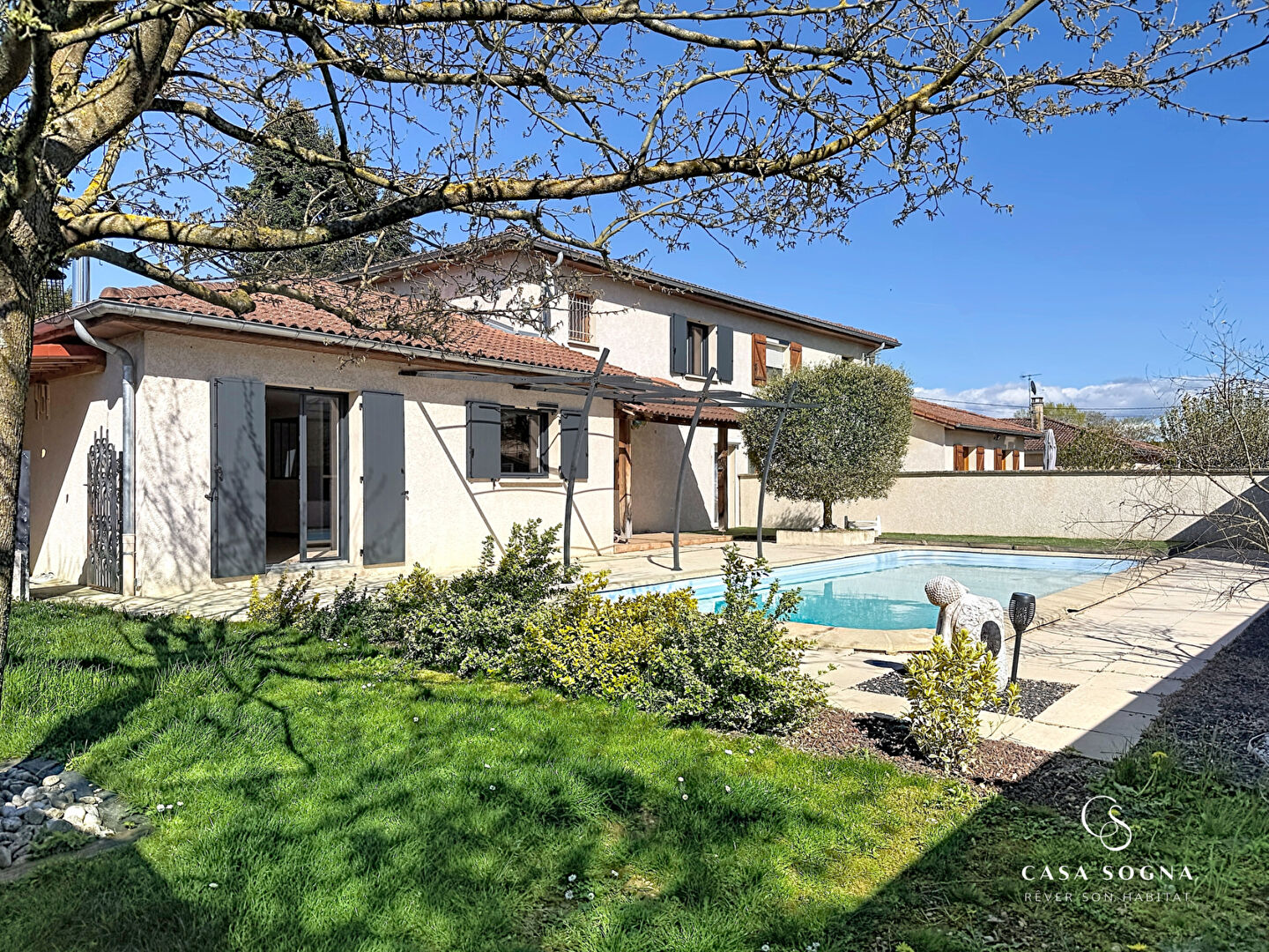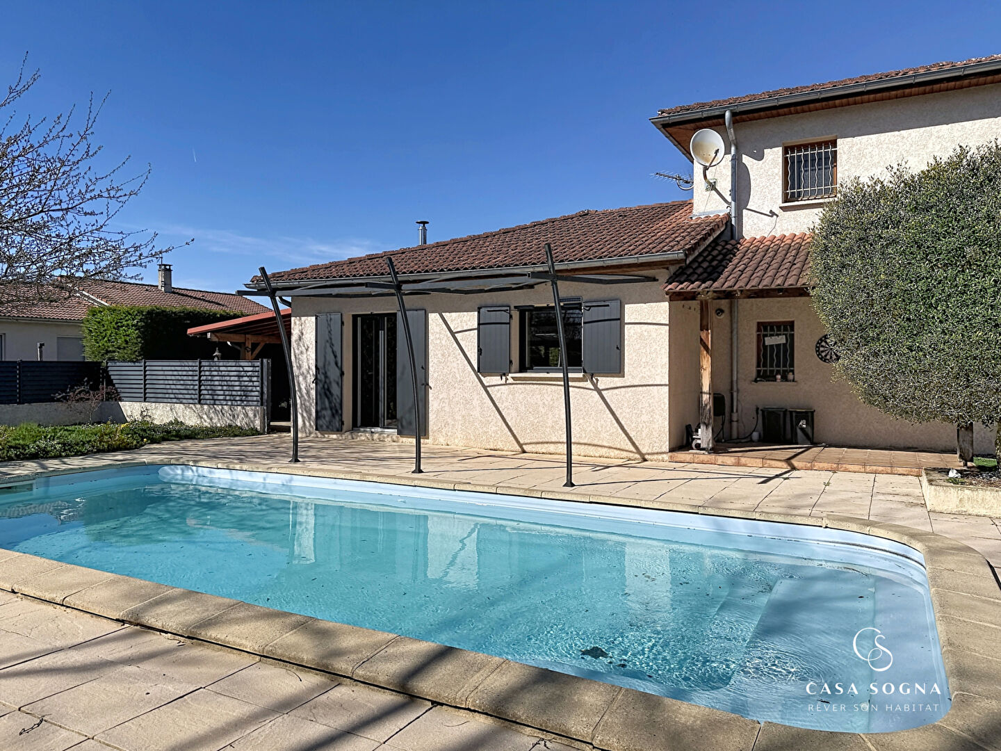 Casa Sogna vous présente en exclusivité cette belle maison située à Leyment, à seulement 7 minutes d'Ambérieu-en-Bugey, dans un environnement résidentiel, calme et très recherché, idéal pour une vie de famille. Avec plus de 154 m² habitables sur un terrain de 755 m², cette maison de 2005 offre de beaux volumes et une organisation parfaitement pensée. Au RDC, elle s'ouvre sur une entrée donnant sur une grande pièce de vie lumineuse traversante avec cuisine ouverte équipée, prolongée par une véranda de plus de 25 m², ajoutée en 2014, intégrée à la surface habitable, sans vis-à-vis, et offrant une belle vue sur les extérieurs. Cette véranda dessert directement la terrasse couverte ainsi que le jardin paysagé, créant une vraie continuité entre intérieur et extérieur. Un cellier/buanderie attenant à la cuisine et une chambre parentale avec coin d'eau et rangements, donnant sur une terrasse, des toilettes séparés ainsi qu'une deuxième chambre avec rangements complètent ce niveau. A l'étage, un palier dessert 3 chambres équipées toutes de placards, toilettes séparés et salle de bains avec douche à l'italienne et baignoire. A l'extérieur, vous profitez d'un cagibi (près de 9 m²), issu de l'aménagement d'une partie du garage en chambre parentale. L'ensemble s'accompagne d'une vaste cour pouvant accueillir jusqu'à 4 véhicules, prolongée par un chemin équipé d'un portail motorisé. Le terrain est entièrement aménagé et paysagé, comprenant une terrasse couverte, un coin cuisine d'été, une terrasse non couverte ainsi qu'une belle piscine chauffée offrant un véritable espace de détente pour la belle saison. Le tout sans vis-à-vis notable et dans un secteur prisé pour sa tranquillité et sa proximité des commodités. Une maison familiale, chaleureuse, bien entretenue, hors copropriété et hors lotissement, prête à accueillir ses nouveaux propriétaires. Visite virtuelle sur demande! DPE: C / GES: C Prix moyens des énergies indexés sur les années 2021, 2022, 2023 (abonnements compris): entre 1800 euros et 2450 euros. Prix: 379 000 euros Honoraires Agence inclus à la charge du vendeur. Pour toute information complémentaire ou pour organiser une visite, contactez Sonia Dridi au 06 82 10 06 84 Agent immobilier immatriculé RCS 935 359 489 www.casa-sogna.immo 16 Rue Alexandre Bérard, 01500 Ambérieu-en-Bugey