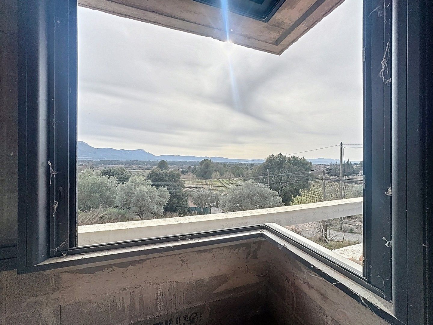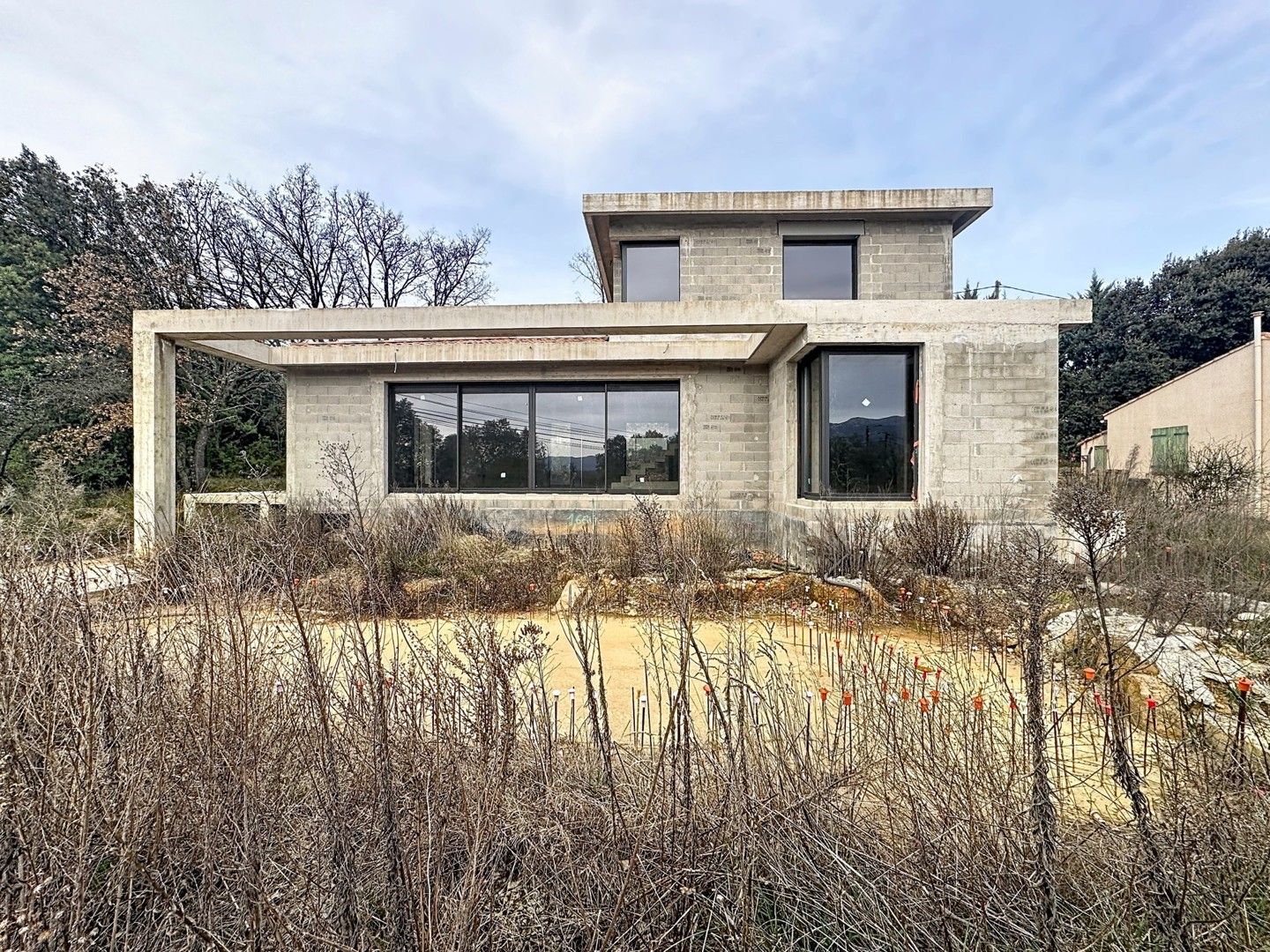 prevue des la construction avec des prestations de grande qualite, comme une baie vitree a galandage de plus de 6m de long, des fenetre d'angle sans montant dans les chambres, une partie en toit terrasse, un belle piscine beton de plus de 8m de long... cette villa promet une fois terminee d'etre l'une des plus haut de gamme du secteur. la configuration initiale prevoit 4 chambres, dont une suite parentale a l'etage avec terrasse et un espace salon cuisine ouverte avec vue sur le mont aurelien de plus de 51m2. en terme de travaux, tout le gros oeuvre est termine, l'interieur reste a faire ainsi que la partie terrasse, piscine et jardin. la fosse septique est aussi a prevoir conformement a l'etude qui sera fournie, ainsi que le raccordement a l'eau de ville. tres rare sur le secteur, ce genre d'opportunite n'attend plus que vous !