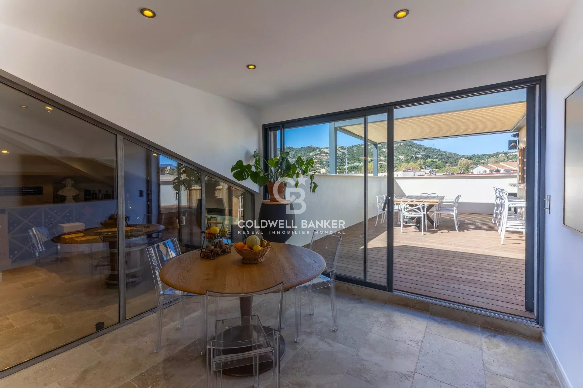 Situé à Calvi, à seulement quelques mètres de la plage, du port et des commerces, ce penthouse d'exception de type T4 occupe l'intégralité du dernier étage d’une résidence avec ascenseur. Chaque détail a été soigneusement travaillé pour offrir un bien d’exception, sublimé par des matériaux de qualité et des prestations élégantes, créant une atmosphère à la fois chic et intemporelle. D’une surface de 189,50 m² au sol (154,62 m² loi Carrez), ce bien se distingue par ses volumes généreux et sa luminosité, offrant un cadre de vie particulièrement agréable. L’appartement s’ouvre sur une cuisine américaine semi-ouverte entièrement aménagée avec un espace repas pensée comme un véritable lieu de vie, complétée par un cellier et une sublime cave à vin. Cet espace central bénéficie d’une double ouverture avec, d’un côté, une belle terrasse de plus de 50 m² avec cuisine d’extérieur et emplacement prévu pour un jacuzzi, et de l’autre, un accès naturel vers le salon. Le salon, sublimé par une belle hauteur sous plafond, prolonge harmonieusement cet ensemble et s’ouvre sur une seconde terrasse d’environ 18 m², offrant une vue panoramique sur les montagnes. L’espace nuit se compose d’une suite parentale avec dressing et salle d’eau avec WC, de deux chambres supplémentaires disposant chacune de leur salle d’eau avec WC, d’un WC indépendant ainsi que d’une buanderie. L’appartement bénéficie d’équipements modernes et confortables : climatisation gainable, installation domotique, système audio intégré, pergola bioclimatique… Un garage fermé de 28,50 m² avec double accès et borne de recharge électrique vient compléter ce bien. Un bien rare à la vente, idéal pour profiter pleinement de la vie calvaise dans un cadre élégant et privilégié ! Prix de vente honoraires agence inclus - Charge vendeur allegrini.realty@coldwellbanker.fr 06 01 29 10 00