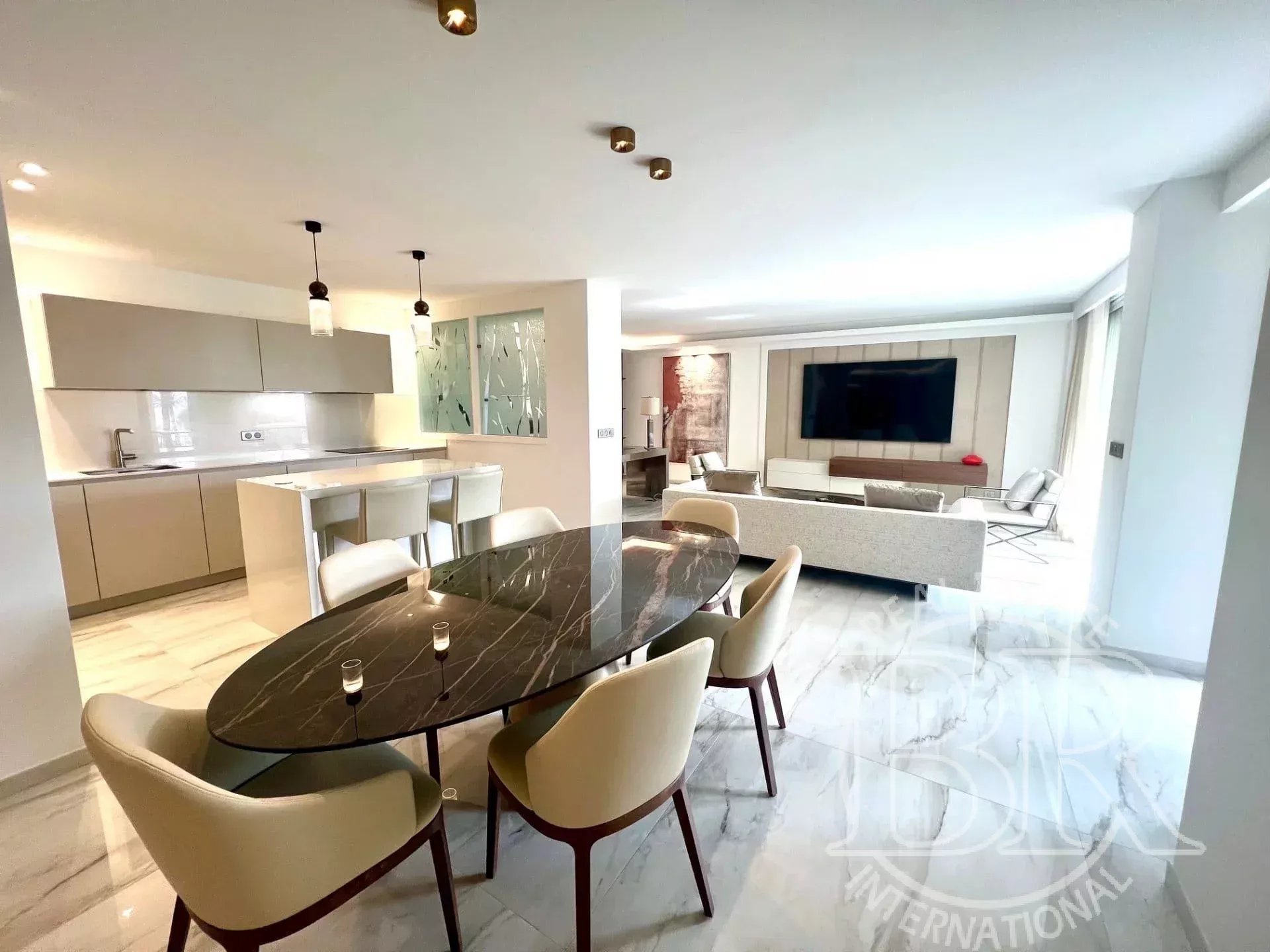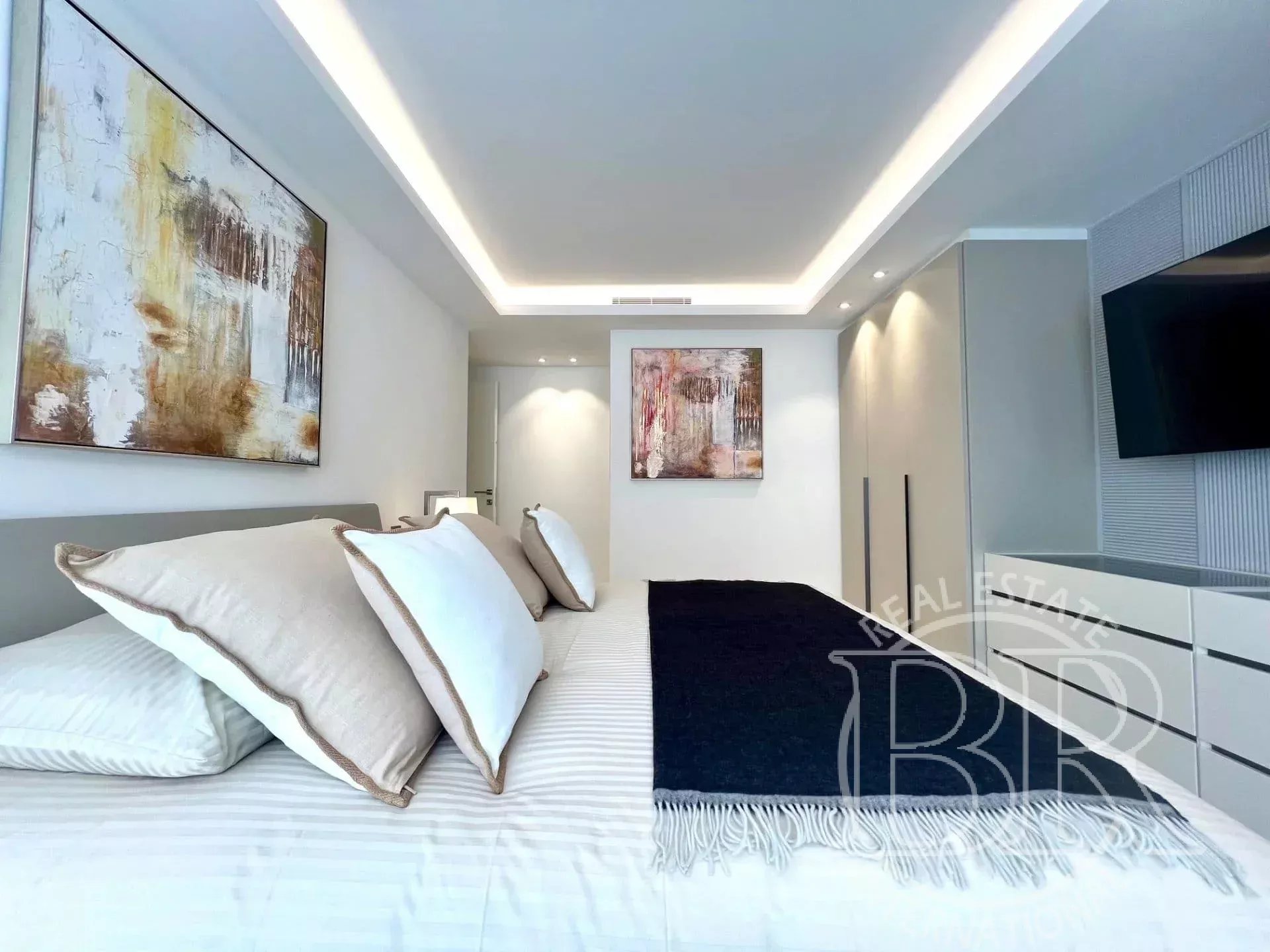 Cannes – La Croisette | Bien d’exception en front de mer – Vue panoramique Adresse iconique de la Riviera, sur la légendaire Boulevard de la Croisette, au sein d’une résidence d’exception avec service de gardiennage, cet appartement rare de 127 m² incarne l’élégance et le raffinement absolu. Entièrement repensé avec des matériaux nobles et des prestations sur mesure, il bénéficie d’une luminosité remarquable et d’une vue panoramique sur la Méditerranée et les jardins du prestigieux Grand Hôtel Cannes. Les volumes généreux révèlent une réception somptueuse prolongée par une terrasse d’environ 14 m², véritable prolongement de l’espace de vie face à la mer. La cuisine ouverte, aux lignes contemporaines, allie esthétique et fonctionnalité dans un esprit résolument haut de gamme. L’espace nuit accueille deux suites élégantes, chacune avec sa salle de douche raffinée, accompagnées de nombreux dressings et rangements intégrés. Toilette l'invitée. À l’arrière, une buanderie discrète avec accès à une seconde terrasse d’environ 15 m² offre un espace supplémentaire, intime et fonctionnel. Un double garage ainsi qu’une cave complètent ce bien d’exception, véritable signature d’un art de vivre unique sur la Côte d’Azur.