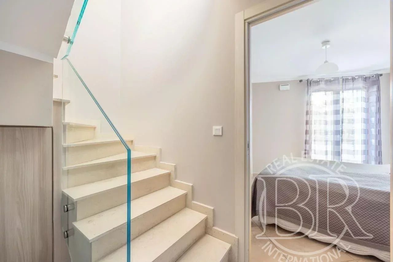 Cannes À 8 minutes à pied du Palais des Festivals et du marché Forville À vendre, superbe appartement en duplex, au style proche d’une maison individuelle, offrant une splendide vue mer. Ce bien se compose de : À l’étage : Un salon / séjour lumineux avec cuisine américaine entièrement équipée Accès à une terrasse de 15 m² avec vue panoramique sur la mer et le quai WC indépendant Au rez-de-chaussée : Deux chambres, chacune avec sa salle de bain Accès à une vaste terrasse de 24 m² prolongée par un joli jardin arboré Dégagement Prestations complémentaires : Buanderie Une terrasse à chaque niveau Bien rare, alliant confort, espace extérieur et emplacement privilégié à proximité immédiate du centre de Cannes. Différente proposition de garage au sous sol en supplément