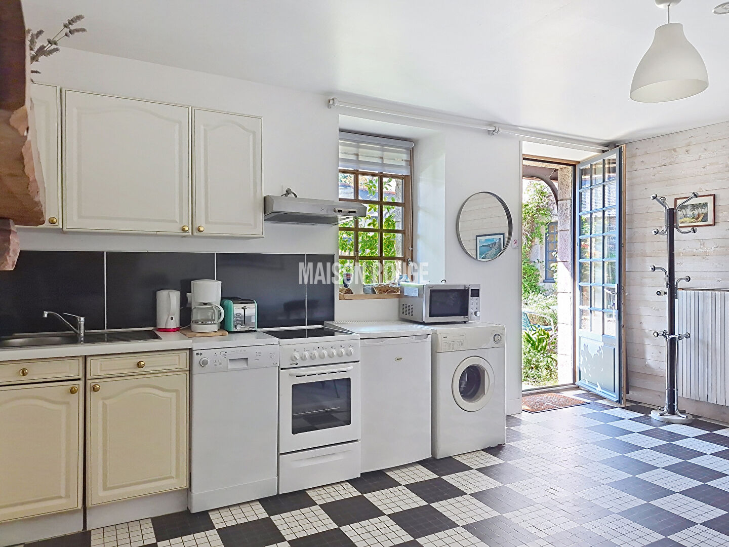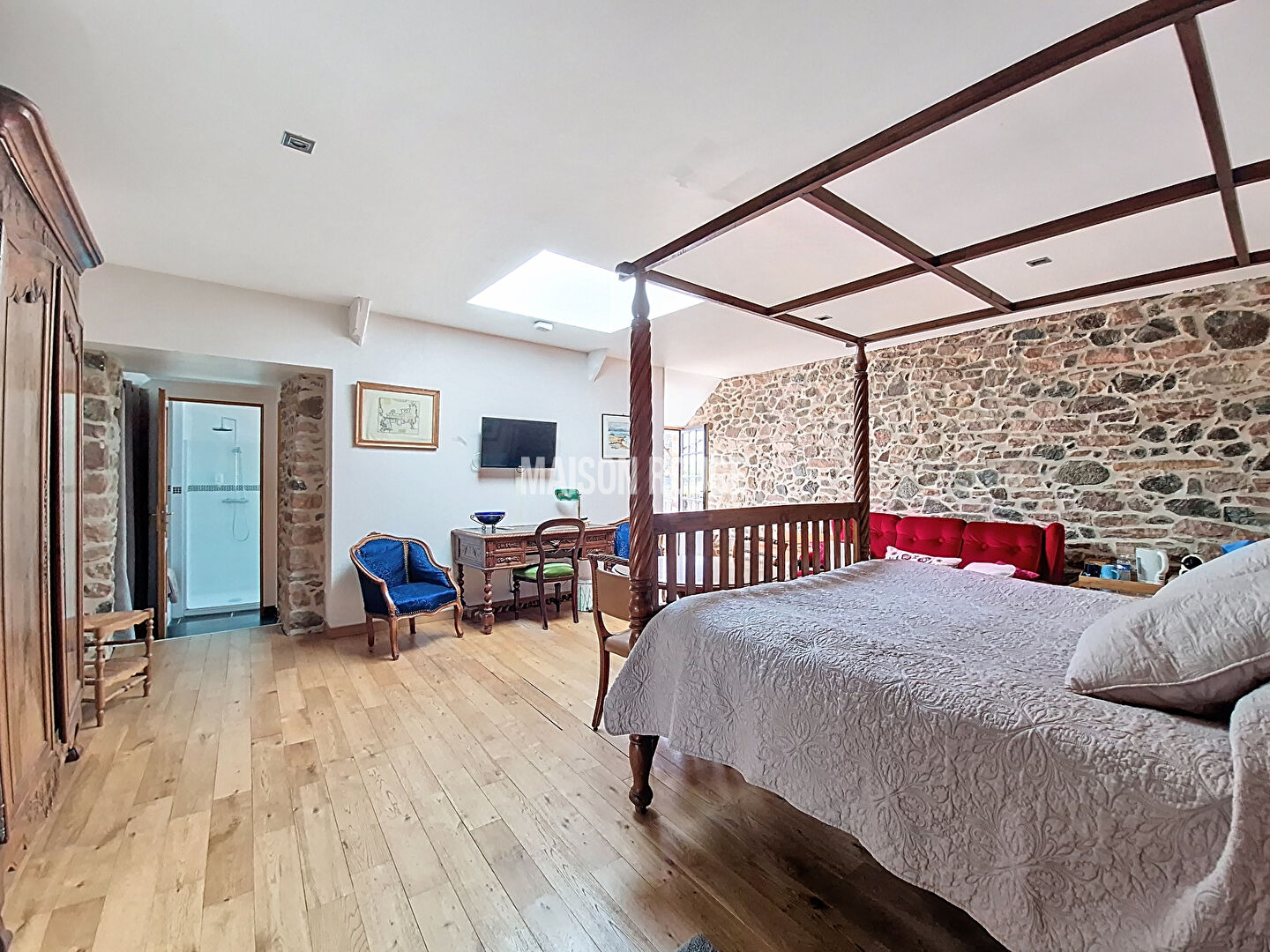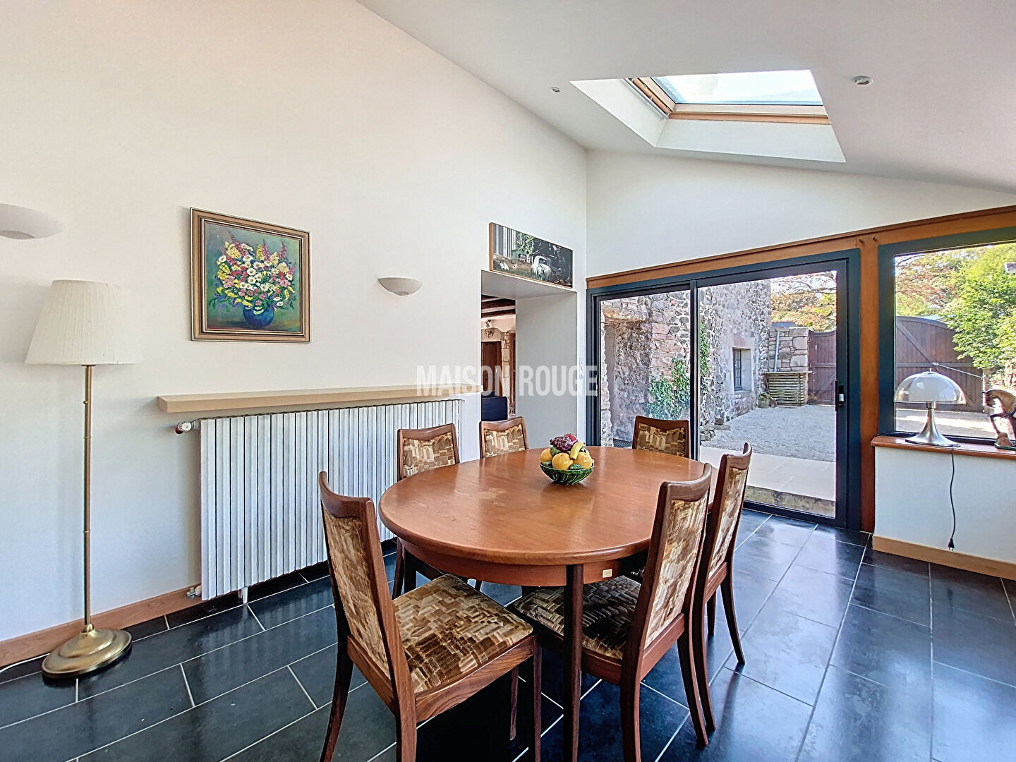 - EXCLUSIVITE MAISON ROUGE- Située dans un hameau sur la commune d'Erquy, à proximité des plages et du littoral, cette remarquable propriété du XVe siècle incarne tout le charme et l'authenticité des demeures en pierres typiques bretonnes. Implantée dans un environnement naturel privilégié, elle se compose d'une maison principale et de cinq gîtes aménagés dans les ailes du bâti, offrant un fort potentiel pour une activité d'accueil ou une résidence familiale d'exception. Dès l'entrée, le ton est donné : vous découvrez un vaste salon de caractère, sublimé par une cheminée en grès rose à foyer ouvert, un élégant carrelage noir et blanc en damier et de magnifiques poutres apparentes. Un séjour lumineux avec vue sur la piscine prolonge cet espace de vie convivial. La cuisine indépendante, aux poutres d'époque blanchies, offre des volumes généreux et un équipement de qualité, dont un piano de cuisson, idéal pour recevoir famille et amis. Une salle de bains, des wc et une lingerie complètent ce niveau. Quelques marches mènent à un premier demi-palier desservant une spacieuse chambre avec parquet et poutres apparentes, dotée de sa salle d'eau privative avec wc. Un second demi-palier dévoile un superbe espace au plafond cathédrale, comprenant une chambre avec salle de bains et wc, ainsi qu'une mezzanine en surplomb pouvant faire office de chambre supplémentaire. Les ailes de la propriété accueillent cinq gîtes indépendants au charme breton, chacun avec son identité : Un premier gîte avec pierres apparentes, poutres, poêle à bois, salon-séjour avec cuisine ouverte, chambre, salle d'eau et wc. Un second gîte proposant un vaste espace de vie avec poêle à bois, cuisine ouverte, chambre, salle de bains avec baignoire, douche et wc. Un troisième gîte aménagé en suite avec salon, chambre, douche et wc. Deux autres suites accessibles par un escalier en fer forgé et une passerelle, offrant chacune une grande chambre sous les combles et une salle de bains avec baignoire, douche et wc. A l'extérieur, la propriété invite à la détente avec une piscine, un espace bien-être, et une terrasse conviviale idéale pour prolonger les soirées estivales face à la superbe façade en pierres. A l'arrière, un portail s'ouvre sur une magnifique prairie arborée, offrant un cadre bucolique et apaisant, en parfaite harmonie avec la nature environnante. Une propriété rare et pleine de caractère, idéale pour un projet de vie alliant authenticité, sérénité et potentiel d'exploitation touristique, à deux pas du littoral breton. Prix FAI : 995 600 euros dont 4.80 % honoraires TTC à la charge de l'acquéreur. Laure PENAULT (EI) Agent Commercial - Numéro RSAC : 897 819 025 - SAINT BRIEUC.