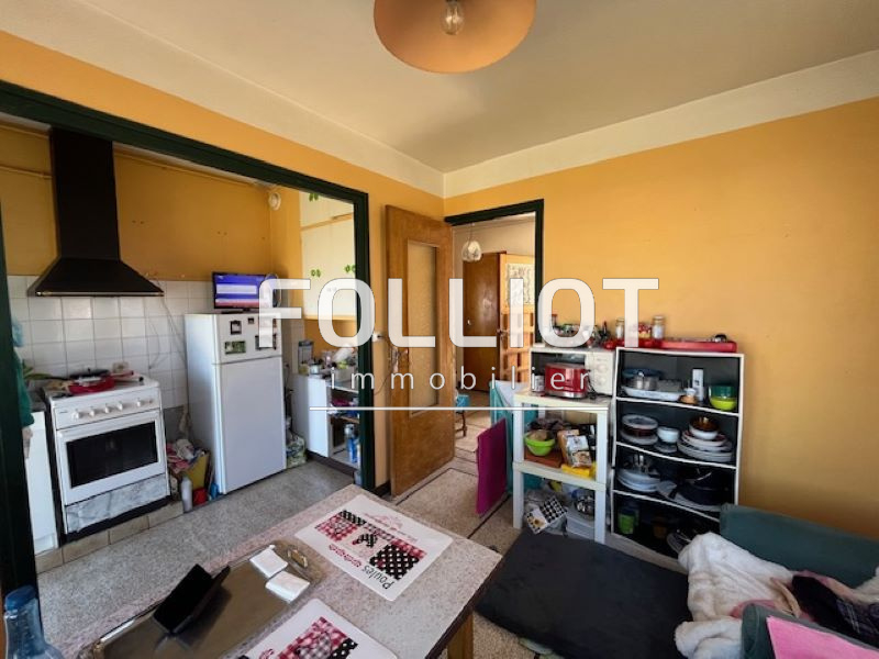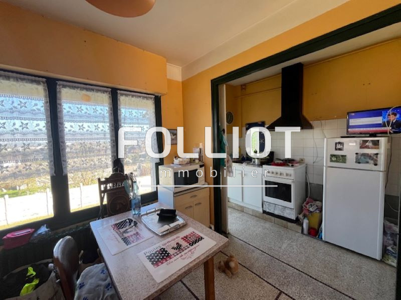 FOLLIOT IMMOBILIER VOUS PROPOSE... A 900 mètres du plein centre de VIRE et de la zone commerciale et industrielle, à 200 mètres de la Gare SNCF et d'une épicerie, en face d'un collège... MAISON d'habitation à rafraîchir, construite en briques sur sous-sol surélevé, couverte en ardoises, 96 m² Habitables, lumineuse, trois chambres, sous-sol de 31m2, grande dépendance de 57 m2 au sol avec un double garage attenant de 30 m² au sol, le tout sur un terrain de 800 m2, belle vue dégagée, comprenant : - au rez-de-chaussée : une entrée avec deux placards, une cuisine aménagée de 15 m2 avec loggia, un séjour/salon de 27 m2 avec cheminée, un wc de 3 m2. - à l'étage : trois chambres (10.5-11.5-12.5 m2), une grande salle d'eau de 9 m², palier. Chauffage Central au gaz de ville, huisseries en bois simple vitrage, volets PVC manuels. L'indice DPE est F pour une consommation énergétique de 386 kWh/m2/an. Quant à l'indice GES, il est aussi de catégorie F signifiant des émissions de gaz à effet de serre de 85 Kg CO2/m²/an. Les informations sur les risques auxquels ce bien est exposé sont disponibles sur le site Géorisques : www.georisques.gouv.fr. N'hésitez pas à prendre contact avec notre agence immobilière FOLLIOT IMMOBILIER à VIRE.