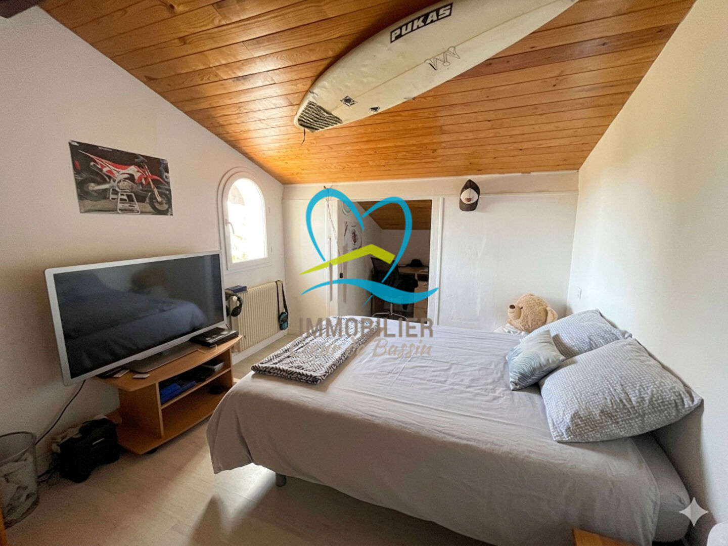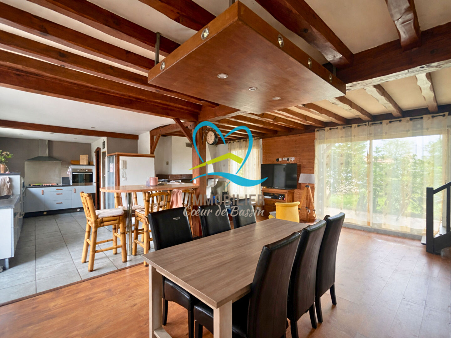 Située à Andernos-les-Bains, venez découvrir cette maison de style landais d'environ 150 m², implantée sur un terrain d'environ 950 m². Élevée d'un étage, elle se compose au rez-de-chaussée d'une entrée, d'une buanderie, ainsi que d'un séjour-salon avec cuisine ouverte, agrémenté d'une cheminée insert. Un dégagement dessert deux chambres, une salle d'eau et un WC. A l'étage, un palier distribue quatre chambres supplémentaires ainsi qu'un WC. Le séjour bénéficie d'une triple exposition, apportant une belle luminosité tout au long de la journée. La maison est équipée de menuiseries en PVC double vitrage avec volets battants en bois, d'un système de chauffage par pompe à chaleur assurant également la production d'eau chaude, ainsi que d'une cheminée insert. A l'extérieur, deux terrasses sont présentes dont une plus spacieuse avec cheminée extérieure, idéale pour les beaux jours. Un abri en bois complète l'ensemble offrant un espace de stockage ainsi qu'une partie aménagée avec salle d'eau et WC, pratique en période estivale. Un garage indépendant vient également s'ajouter aux annexes. Située dans un environnement calme, cette propriété offre un beau potentiel avec un terrain permettant notamment l'implantation d'une piscine. Venez la découvrir sans tarder, pour davantage d'information ou visiter, contactez Léana au 06 07 31 88 33, agent commercial inscrit au RSAC de Bordeaux 988 662 839 ! (3.50 % honoraires TTC à la charge de l'acquéreur.)