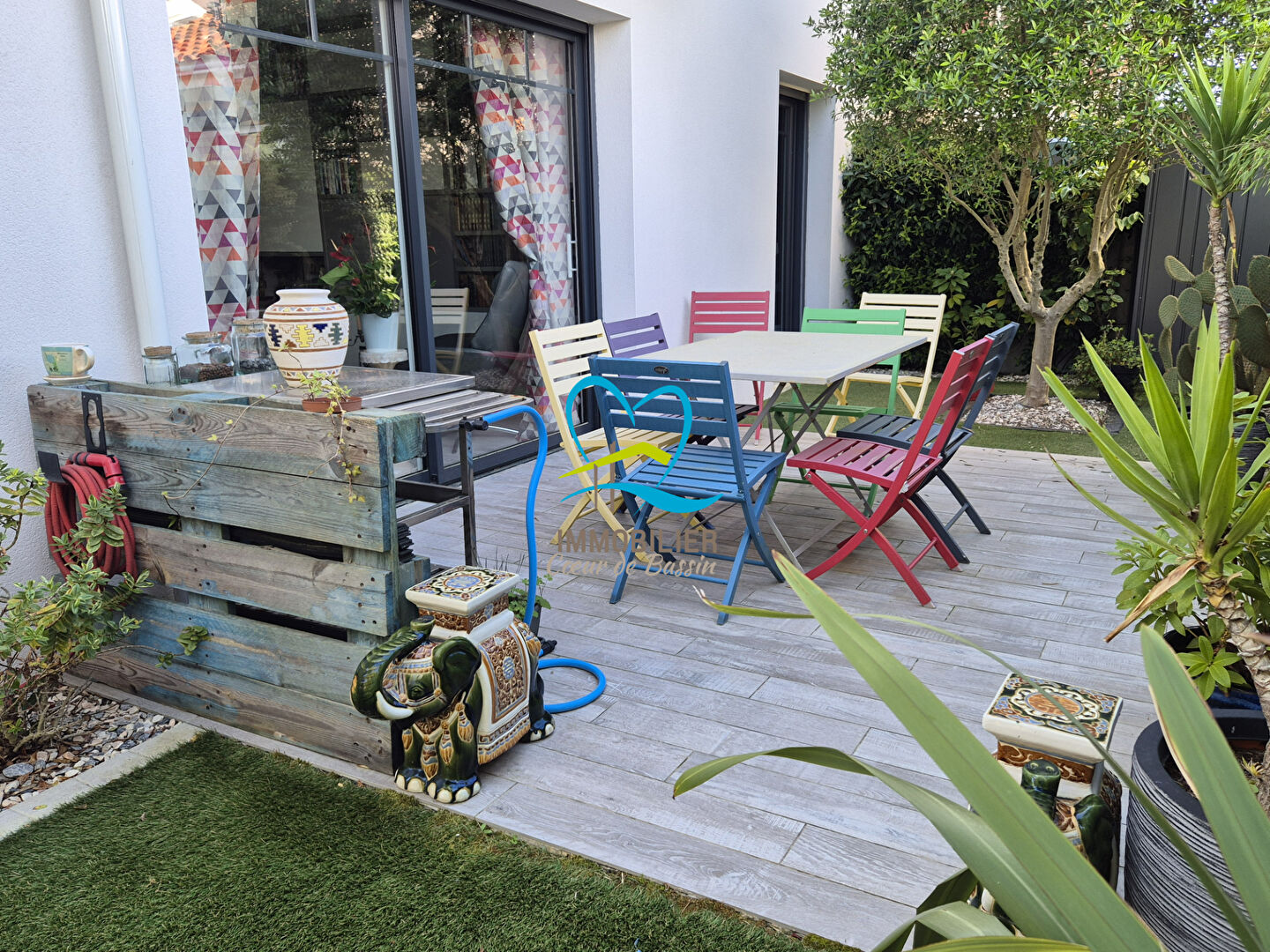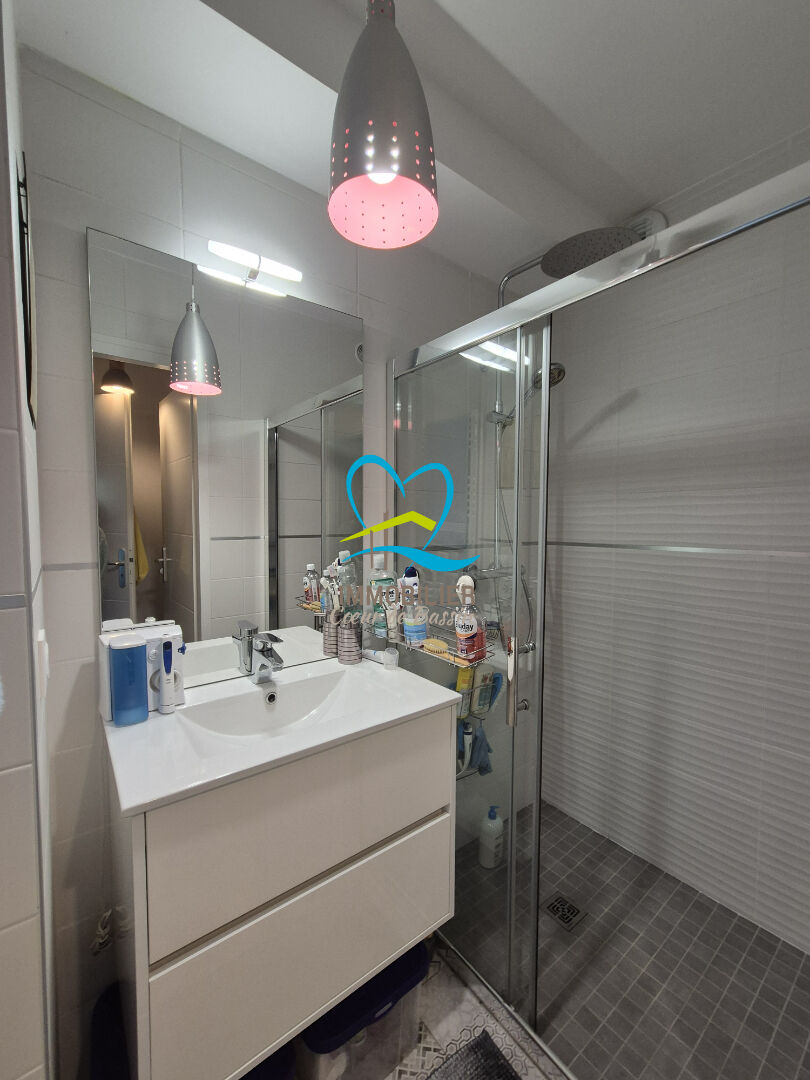 A voir rapidement, villa de 4 pièces - de 86m2 habitables plus un garage attenant de 16,50m2 incluant la buanderie Elevée d'un étage sur un terrain de 200m2 environ. Au rez-de-chaussée : entrée, séjour, cuisine fermée par une jolie verrière, wc, salle d'eau, une chambre avec placards A l'étage : palier accueillant l'espace bureau, deux chambres avec placards dressing, une salle de bains et un wc. Terrain autour sans vis à vis, clos de muret et de haies avec un portail motorisé ouvrant sur une place parking. Panneaux solaires. Un très joli jardin aux multiples végétaux et terrasse carrelée abritée par un store électrique avec éclairage. Situation proche du centre ville d'ANDERNOS les bains (800m de la place du marché ). Coup de coeur assuré pour cette maison impeccable, aux belles prestation s et sans travaux. A visiter avec Chrystel 06.17.30.39.60 agent commercial inscrite au RSAC de Bordeaux 840 160 451.Immobilier Coeur de Bassin à votre écoute . (3.48 % honoraires TTC à la charge de l'acquéreur.) Copropriété de 13 lots - dont 13 lots habitation. Léana DADOLE (EI) Agent Commercial - Numéro RSAC : 988662839 - BORDEAUX.