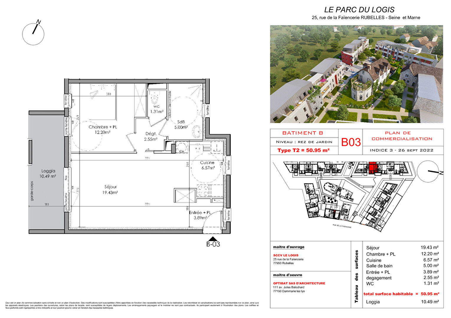 Votre agence La Brie Immobilière vous invite à découvrir ce superbe appartement 2 pièces, situé en rez-de-jardin au sein de la résidence de standing ?Le Parc du Logis', à Rubelles. Développant 50,95 m² habitables, ce bien séduit par son agencement soigné, sa belle luminosité et son cadre de vie privilégié. Il se compose d'une entrée avec placard, d'une agréable pièce de vie lumineuse de 19,43 m², prolongée par une cuisine ouverte de 6,57 m², créant un espace de vie à la fois convivial et fonctionnel. Une loggia de 10,49 m² vient élégamment compléter l'ensemble et prolonger harmonieusement les espaces de vie. L'espace nuit accueille une belle chambre avec placard de 12,20 m², ainsi qu'une salle de bains, un W.C. indépendant et des rangements pensés pour un confort de vie optimal au quotidien. La résidence Le Parc du Logis s'inscrit dans un cadre rare, au coeur d'un parc paysager, et s'organise autour d'un ancien logis seigneurial du XVIIe siècle, mariant avec élégance charme patrimonial et confort contemporain. Parking boxable en sus du prix affiché. Bien éligible au PTZ. Frais de notaire réduits. Une belle opportunité à découvrir sans tarder. Copropriété de 94 lots - dont 44 lots habitation. Charges annuelles : 612 euros.