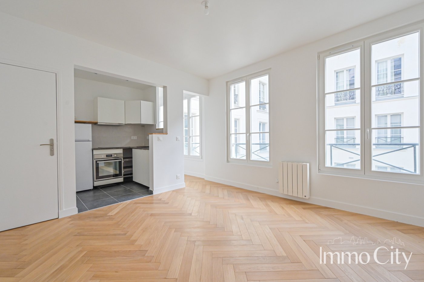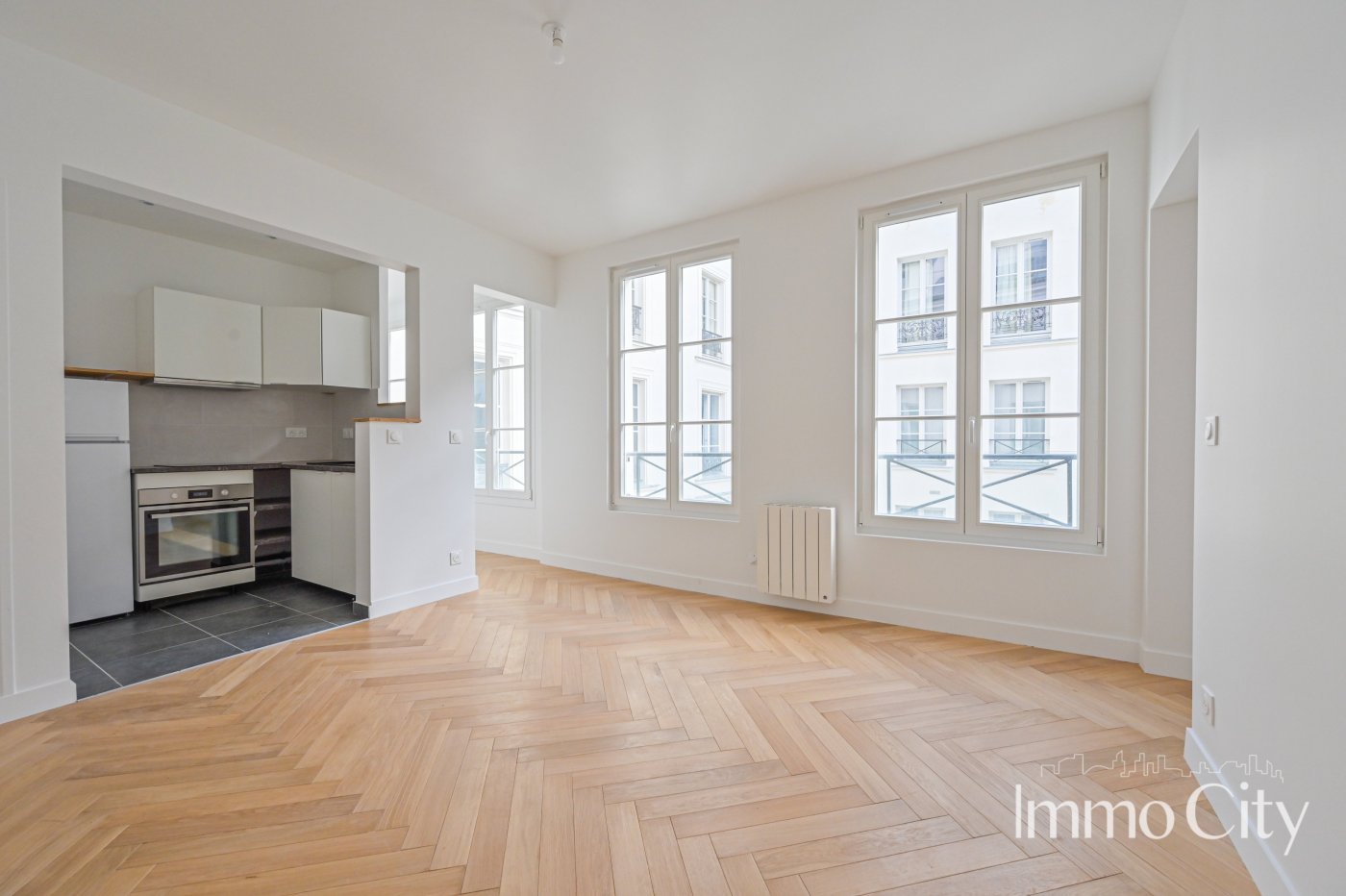 Dans un très bel immeuble ancien bien entretenu et sécurisé (double digicode, concierge), au 3ème étage sans ascenseur, superbe 2 pièces entièrement rénové de 41.05m² sans aucune perte d'espace comprenant : Entrée, séjour avec cuisine ouverte aménagée et équipée (plaques, hotte, four, réfrigérateur/congélateur), chambre, salle d'eau avec WC.