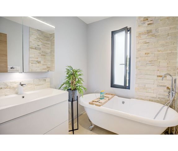 Elle se compose dune pièce à vivre spacieuse de 40 m², dune buanderie, de 3 chambres dont une suite parentale, dune salle de bains moderne (douche à litalienne et/ou baignoire), et de WC séparés.