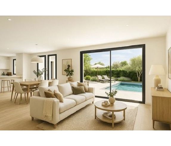 villa moderne aux dernières norme RE2020 avec climatisation et ballon thermodynamique pour allier confort, économies dénergie et respect de lenvironnement. Implantée sur une parcelle de 700 m², elle offre :