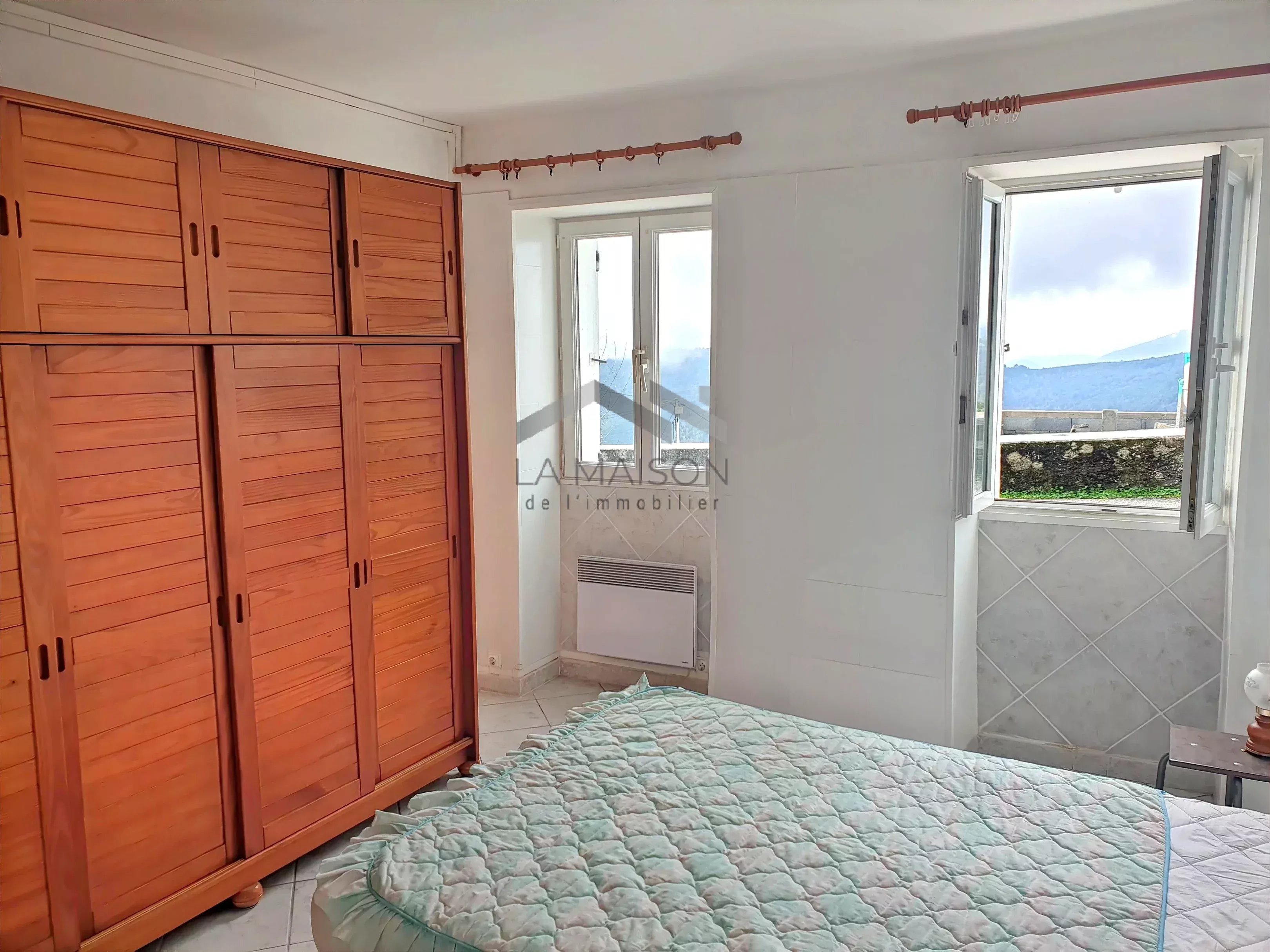 Vous recherchez la Corse authentique, le calme absolu, une vue imprenable sur la nature et la mer ? Venez découvrir cette ravissante maison de village de 87 m² de plain-pied, située dans la commune d'Antisanti (Haute-Corse), à 685 mètres d'altitude, sur la côte orientale. Ce pied-à-terre vous permettra de profiter du calme ainsi que de nombreuses randonnées accessibles à proximité. À 40 minutes de Corte, de sa citadelle et de la vallée de la Restonica, baignades au pont du Vecchio, à 1h30 de Bastia ou d'Ajaccio, et à 2h de Porto-Vecchio. Maison mitoyenne d'un côté, offrant une vue époustouflante sur la montagne grâce à sa terrasse de 37 m². Vous pouvez apercevoir à l'est, au loin, les îles italiennes : l'île d'Elbe, l'île de Monte Cristo et, par temps clair, le littoral italien. Au rez-de-chaussée, vous trouverez un bel espace de vie avec salle à manger de 14,5 m², une cheminée authentique équipée d'un insert Supra Turbo avec conduit gainé en inox, une cuisine aménagée ouverte de 13,2 m², une chambre de 13 m², une salle d'eau de 5,5 m² ainsi qu'un WC séparé. À l'étage se trouvent deux grandes chambres de 13 m² chacune, ainsi qu'un grenier aménagé de 37 m² (isolation, peinture, lino au sol) offrant un volume supplémentaire (chambre, bureau, rangement, salle de jeux, etc.). Les menuiseries en PVC double vitrage sont toutes équipées de moustiquaires. De nombreux travaux ont été récemment effectués : électricité, plomberie, salle de bains, cuisine, peintures, sols et plafonds, ainsi que la façade, la toiture et les gouttières. Parking privé au pied de la maison et possibilité de brancher facilement votre voiture électrique.