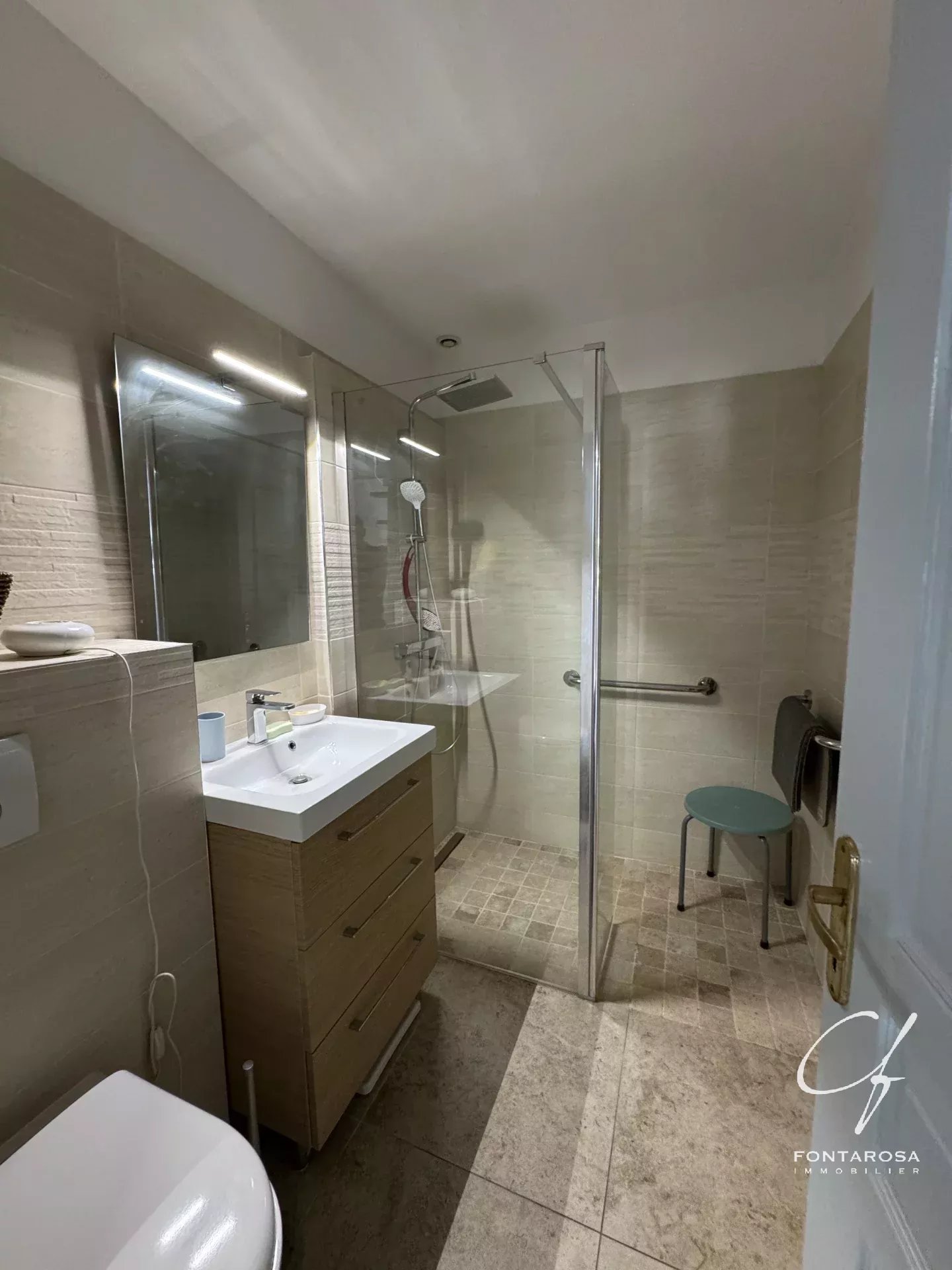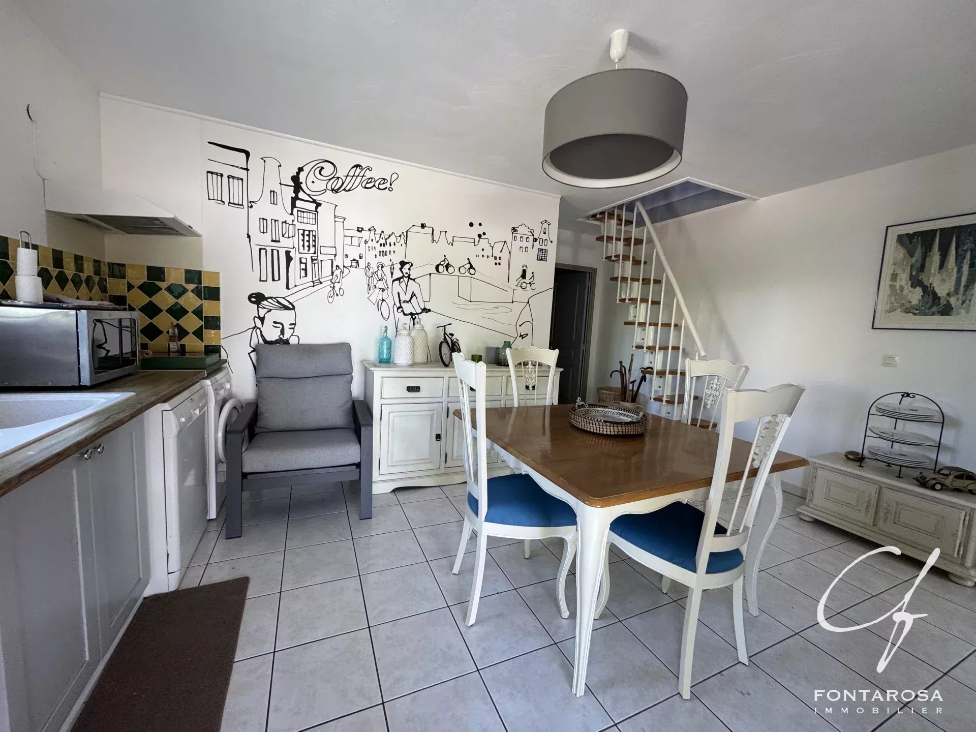 È composta da un bell'ingresso con armadio e toilette per gli ospiti, che conduce a un ampio e luminoso soggiorno con camino e a una cucina a pianta aperta completamente attrezzata.