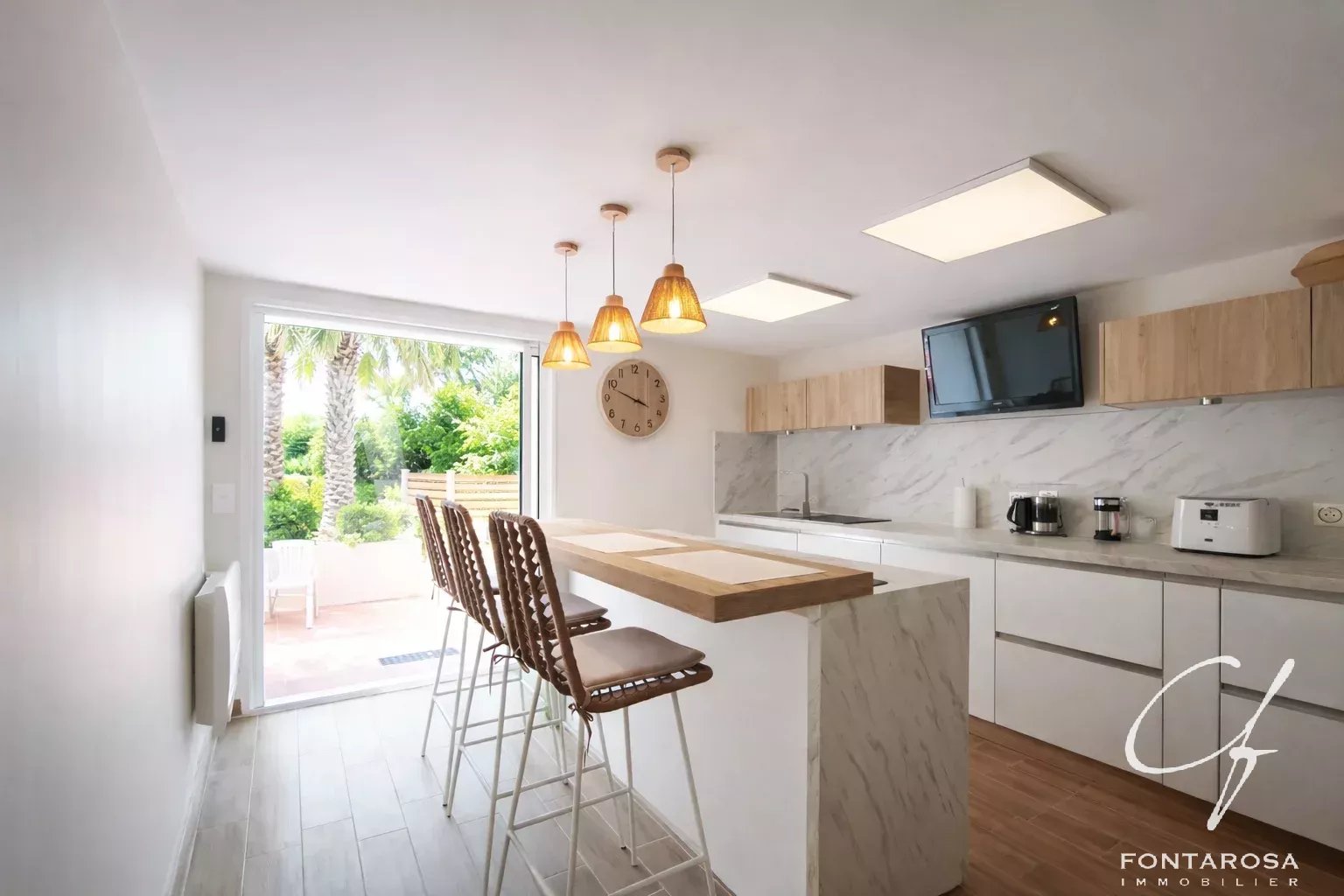 À deux pas du cœur de Saint-Raphaël, cette maison rénovée de 133,6 m² aux volumes généreux propose 4 belles chambres, deux salles d'eau, 2 WC indépendants, un séjour-salon, une cuisine aménagée et équipée donnant sur une belle terrasse avec pergola bioclimatique, ouverte sur un espace de verdure. Le jardin clôturé offre un puits fonctionnel.