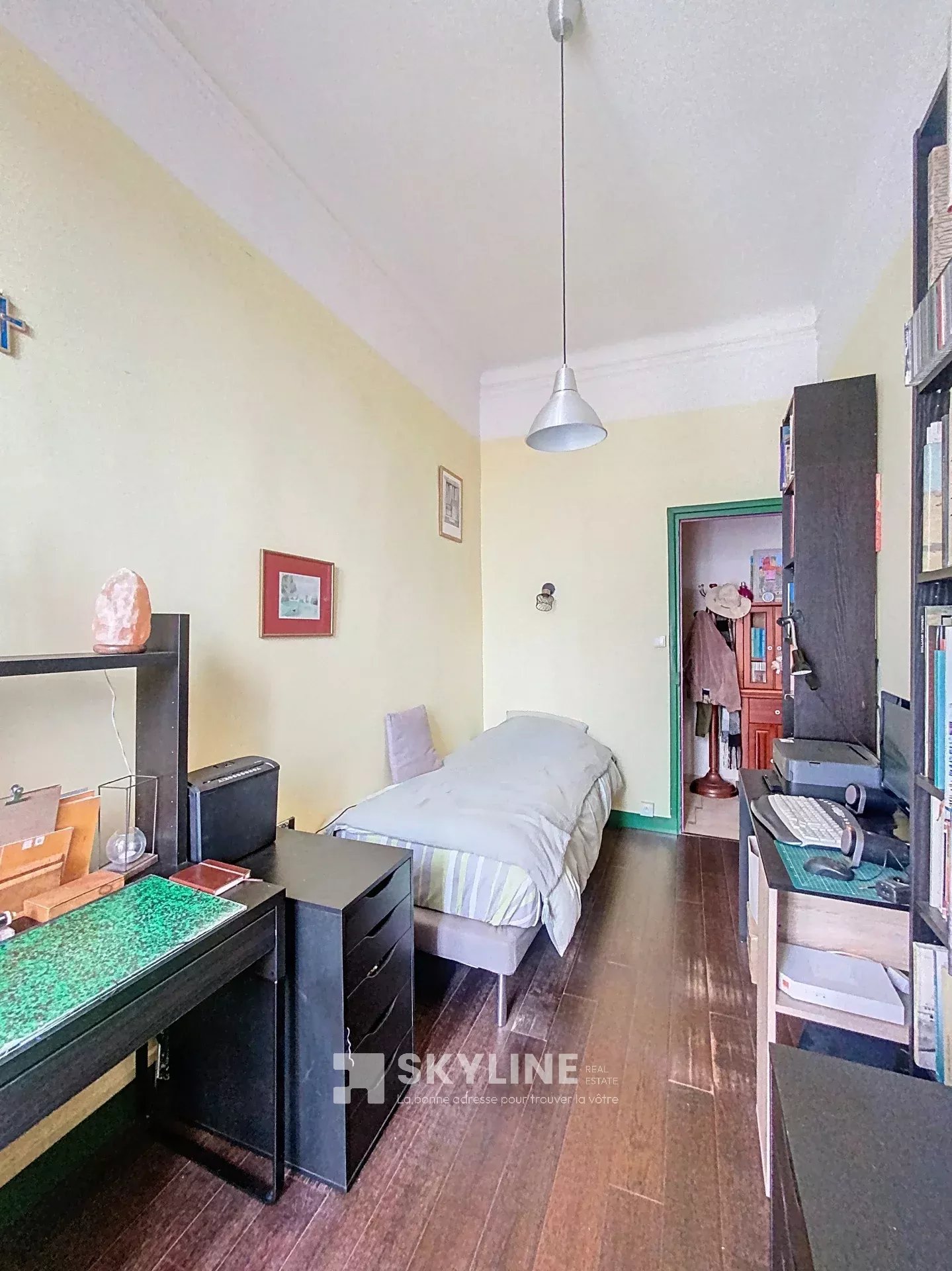 Architecture typiquement marseillaise pour cet appartement traversant de 85 m²,situé entre la Plaine et le cours Franklin Roosevelt. Skyline REAL ESTASTE vous propose à la vente cet appartement familial, situé au 2 ème étage d'un immeuble ancien très bien entretenu. Orienté est/ouest, l'espace intérieur s'ouvre côté ouest par un salon/séjour de 21 m² donnant accès à un balcon de 6m² et une cuisine de 12,26 m² rénovée il y a quelques années. Coté est se trouvent deux chambres de 19m² et 10 m² avec placard. Au centre, un dressing de 6m², une salle d'eau de 4m² et un wc complètent cet appartement idéal pour une famille . Cet appartement est vendu avec une cave mais également une chambre de bonne de 5 m² située en dernier étage. Charges de copropriété : 100 euros /mois Taxe foncière : 1126 euros Nombres de lots dans la copropriété 6 lots. DPE : D ( 228/kwh/m²/an ) GES : D ( 42kgCO2/m²/an ) Honoraires à la charge exclusive du vendeur. Contact : Eléonore ZABALETA : 06 18 09 72 68-eleonore.zabaleta@skylinere.fr La présente annonce immobilière a été rédigée sous la responsabilité de Eléonore ZABALETA mandataire indépendant en immobilier (sans détention de fonds), agent commercial de la SAS SKYLINE REAL ESTASTE, immatriculé au RSAC de Marseille sous le numéro 520 246 640, agissant pour le compte de la société SKYLINE SAS, titulaire de la carte professionnelle délivrée par le CCI de Marseille-Provence