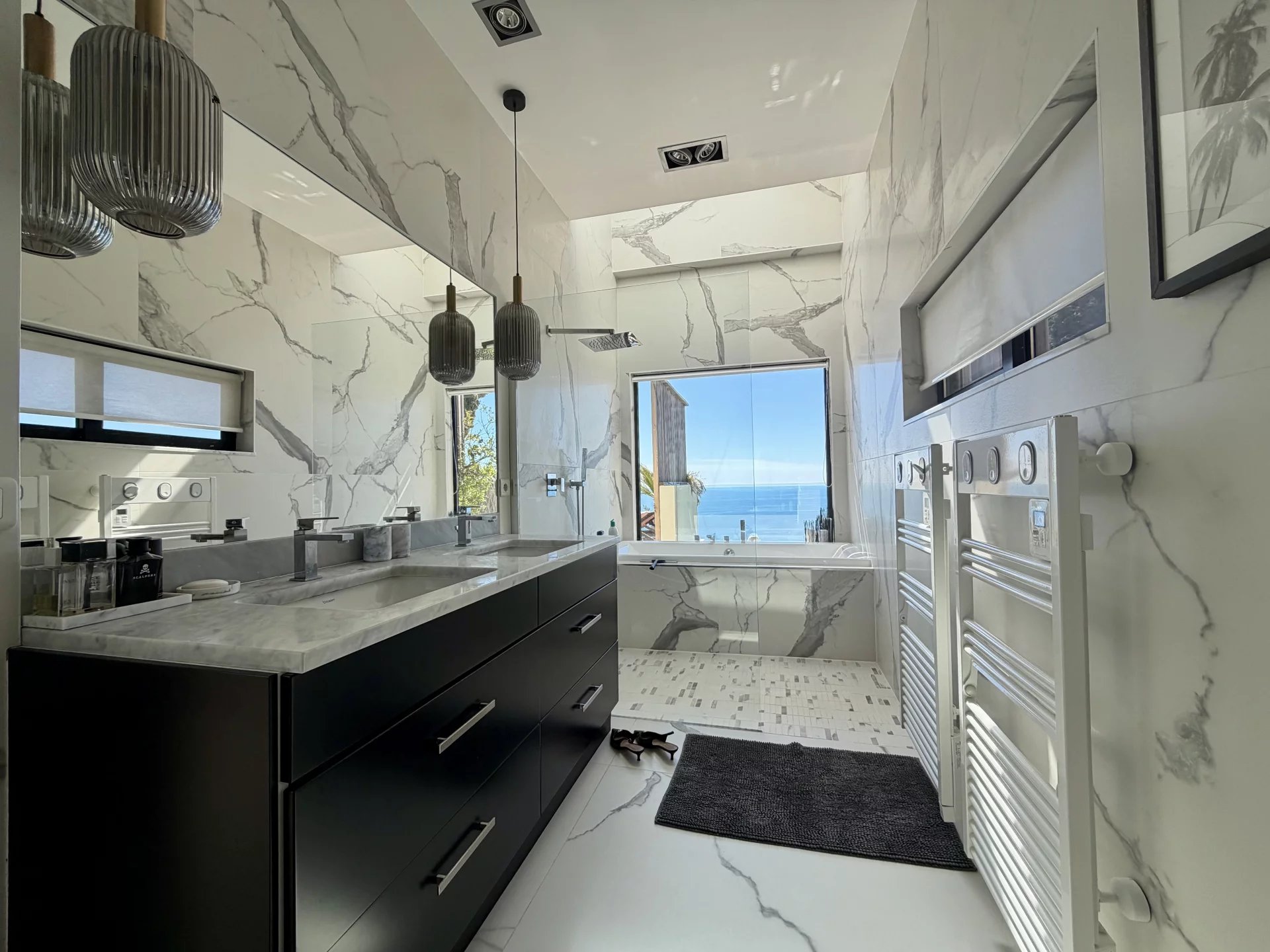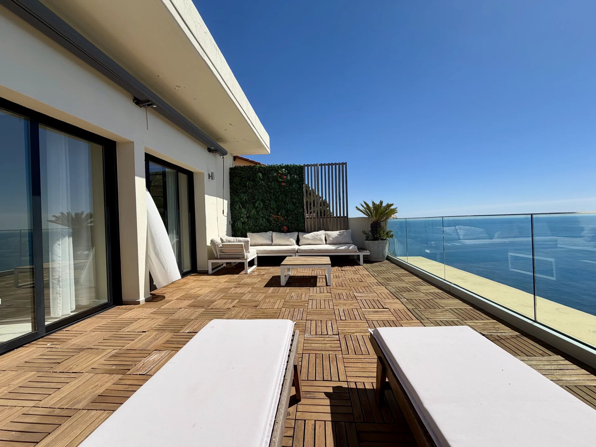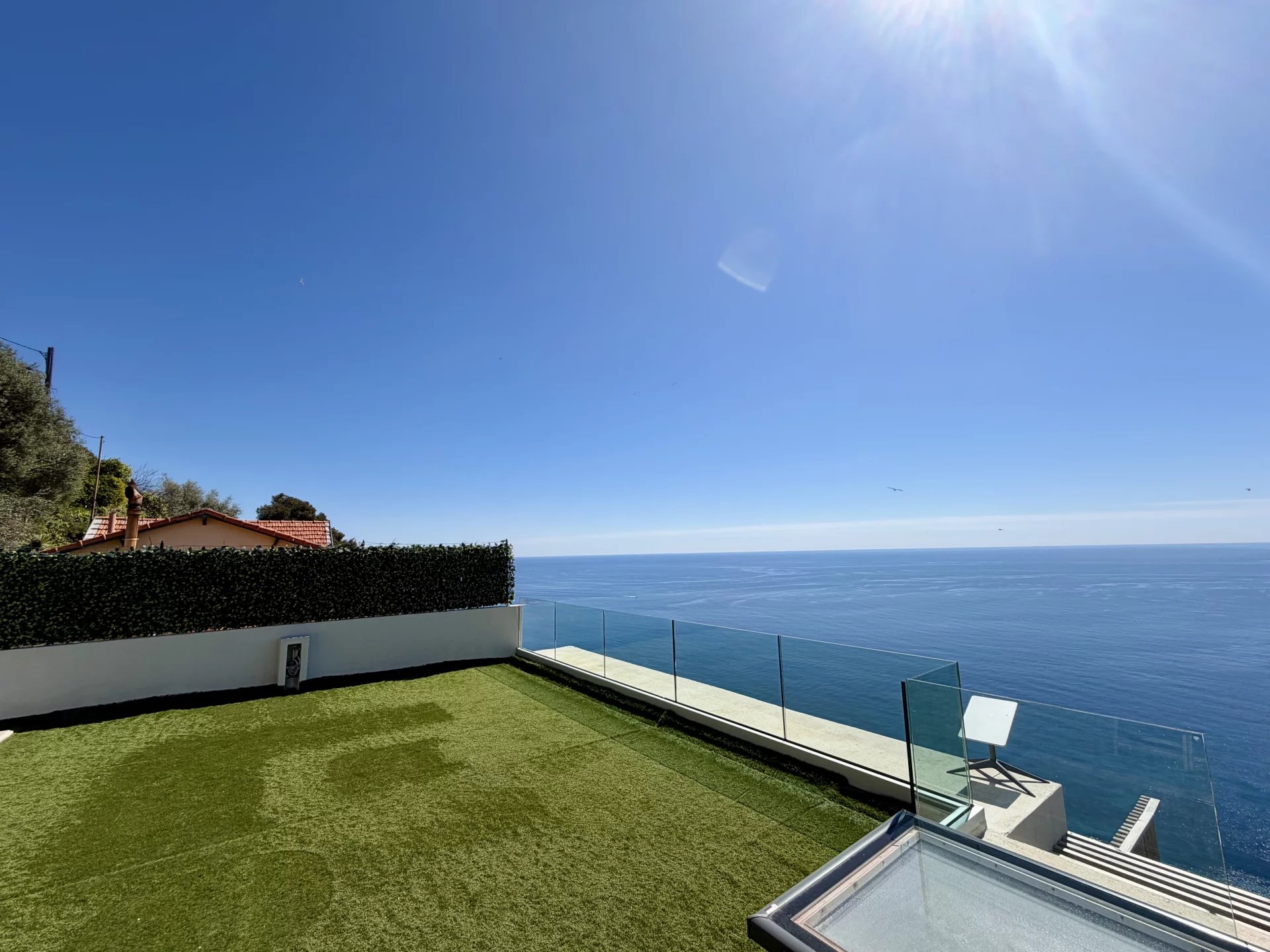 A pochi minuti dalla Principauté de Monaco, in posizione dominante e privilegiata, questa villa contemporanea d’ispirazione californiana gode di una vista panoramica straordinaria sul mare, su Monaco e sul Cap de Roquebrune. La proprietà si distingue per gli ampi volumi, la luminosità eccezionale e le grandi vetrate che creano una perfetta continuità tra interno ed esterno, valorizzando al massimo il panorama. Realizzata con materiali di alta qualità e finiture di prestigio, la villa offre oltre 200 m² abitabili con spazi moderni e confortevoli, tra cui un ampio soggiorno con cucina a vista e zona ufficio, oltre a tre camere da letto. Gli spazi esterni sono un vero punto di forza: tre grandi terrazze, di cui una di circa 60 m², piscina privata, solarium, cucina estiva con barbecue e un giardino curato con pergolati. L’esposizione sud-ovest garantisce un’ottima luminosità durante tutta la giornata e oltre 130 metri lineari di vista completamente aperta sul mare e sulla Riviera. La proprietà dispone inoltre di aria condizionata, tapparelle elettriche, ascensore privato e garage con 5 posti. Recentemente ristrutturata, rappresenta un’opportunità rara sul mercato, ideale per chi cerca comfort, vista mare e vicinanza a Monaco.