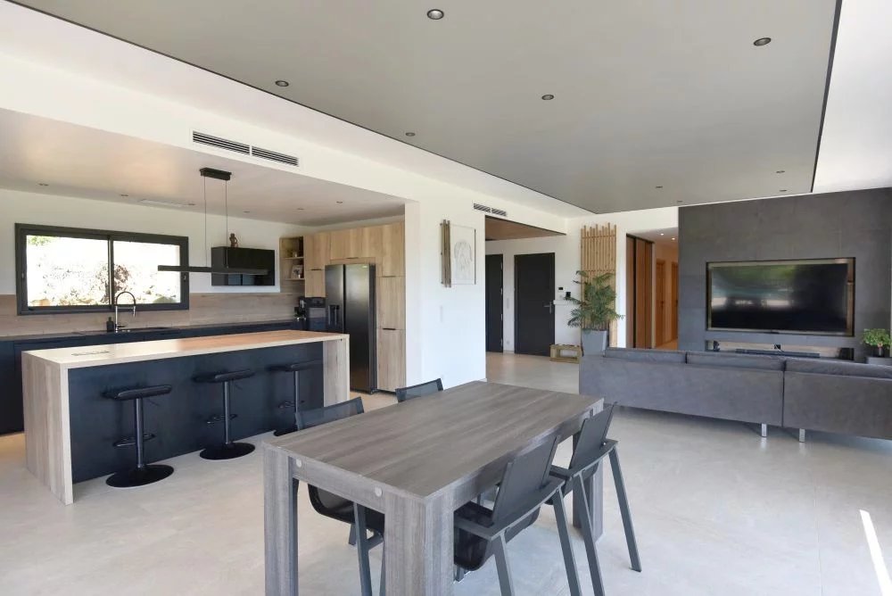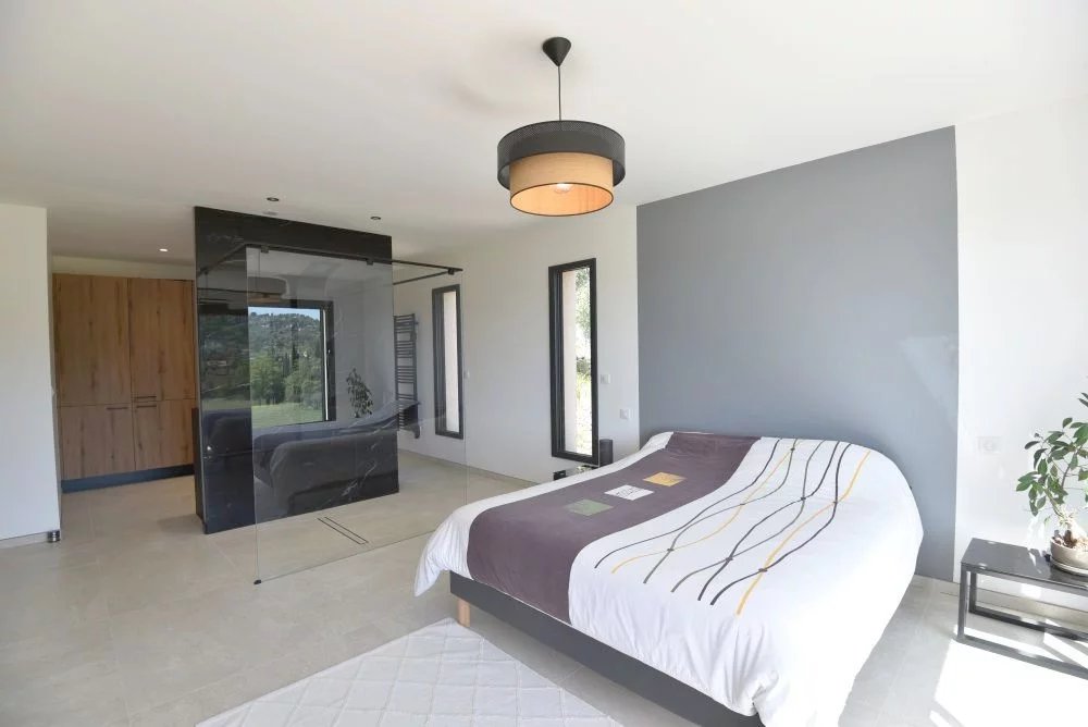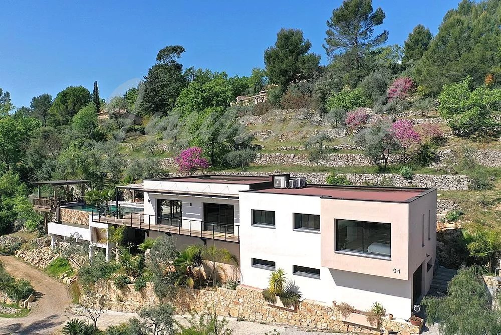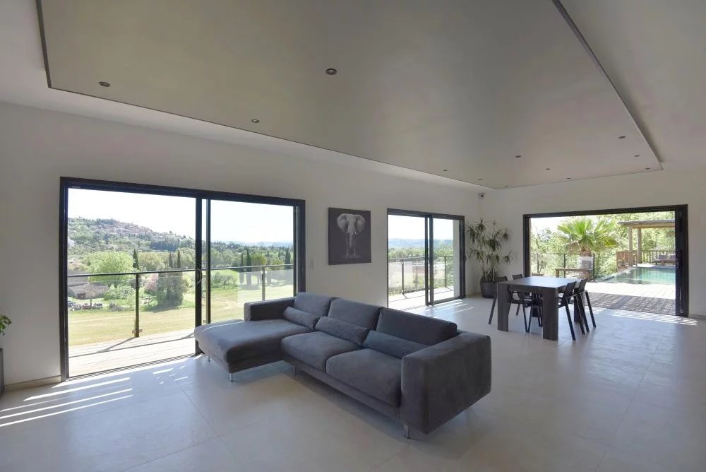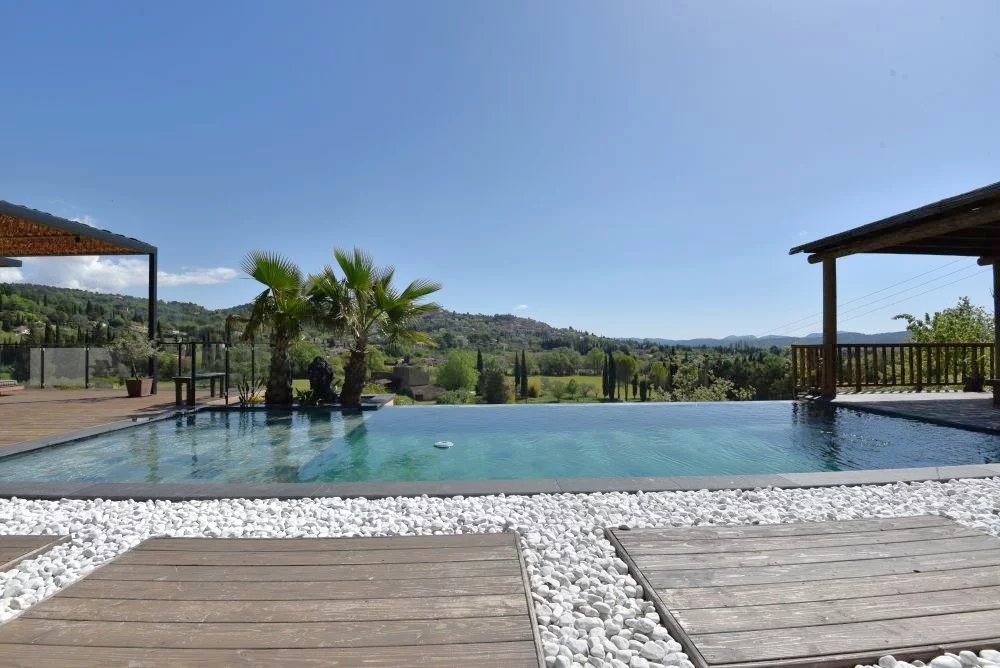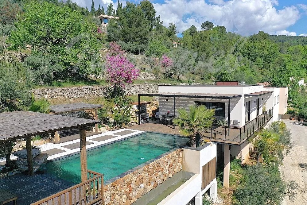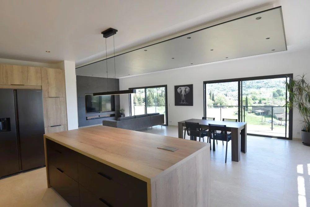 EXCLUSIVITE – Dans un environnement naturel privilégié, au cœur d’un terrain paysager d’environ 3 000 m², cette somptueuse villa contemporaine d’environ 230 m² offre un cadre de vie rare, sublimé par une vue imprenable sur le village de Fayence et ses collines environnantes. Dès l’entrée, la propriété séduit par ses lignes épurées, ses volumes généreux et sa luminosité exceptionnelle. Le vaste séjour de 60 m², baigné de lumière grâce à de larges baies vitrées, s’ouvre harmonieusement sur une élégante cuisine contemporaine entièrement équipée, créant un espace de vie convivial et raffiné tourné vers l’extérieur. L’espace nuit propose une suite parentale aux prestations haut de gamme, avec dressing et salle d’eau privative, ainsi que deux autres chambres confortables partageant une seconde salle d’eau. À l’extérieur, la villa prolonge son art de vivre avec une magnifique terrasse couverte, idéale pour les réceptions en toute saison, et une spectaculaire piscine à débordement qui semble se fondre dans le paysage, offrant un panorama d’une rare beauté. Le sous-sol complète ce bien avec un vaste garage d’environ 80 m² et un espace aménagé avec salle d’eau, parfait pour une salle de sport, un espace bien-être ou une chambre d’appoint. Alliance parfaite entre modernité, confort et nature, cette propriété haut de gamme séduira les amateurs de biens d’exception à la recherche de sérénité et de prestations de qualité dans un cadre enchanteur.