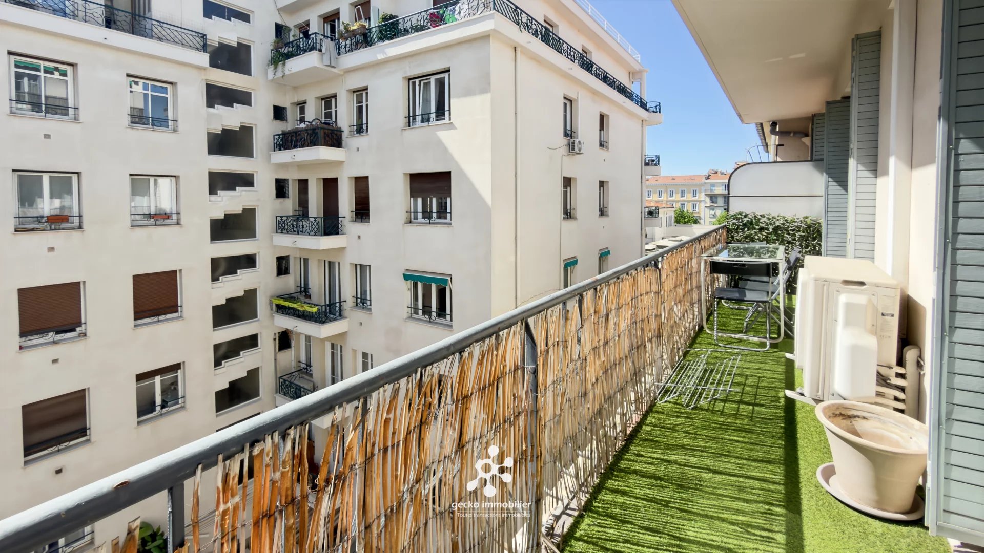À quelques pas de la Coulée Verte et de la place Masséna, cet appartement bénéficie d’un emplacement idéal, à proximité immédiate des commerces, des transports et de toutes les commodités, avec un accès facile à la mer. Situé au troisième étage d’une résidence de standing avec ascenseur, il offre un calme absolu et se trouve en excellent état. Il se compose d’une entrée avec placards, d’un séjour lumineux, d’une cuisine séparée et équipée, de deux chambres avec rangements, ainsi que d’une salle de douche et de toilettes indépendantes. L’ensemble s’ouvre sur un balcon exposé plein sud. Entièrement climatisé et meublé, cet appartement est prêt à vous accueillir, que ce soit pour une résidence principale, secondaire ou un investissement locatif. Bien soumis au statut de la copropriété - Nb de lots d'habitation : NC - Charges annuelles : 2760 € (incluant l'eau froide, l'ascenseur, entretien et nettoyage des parties communes) - Honoraires à la charge de l'acquéreur. "Situé au 30 rue de l’Hôtel des Postes, nous sommes votre expert de confiance pour vos projets immobiliers. Depuis 20 ans, notre équipe maîtrise parfaitement le marché local niçois. Nous privilégions la transparence, l’expertise et la relation de confiance. Près de 2000 biens vendus par nos équipes et des clients pleinement satisfaits. Consultez nos avis : https://immodvisor.com/professionnels/agence-immobiliere/pro/gecko-immobilier-nice-centre-71497"