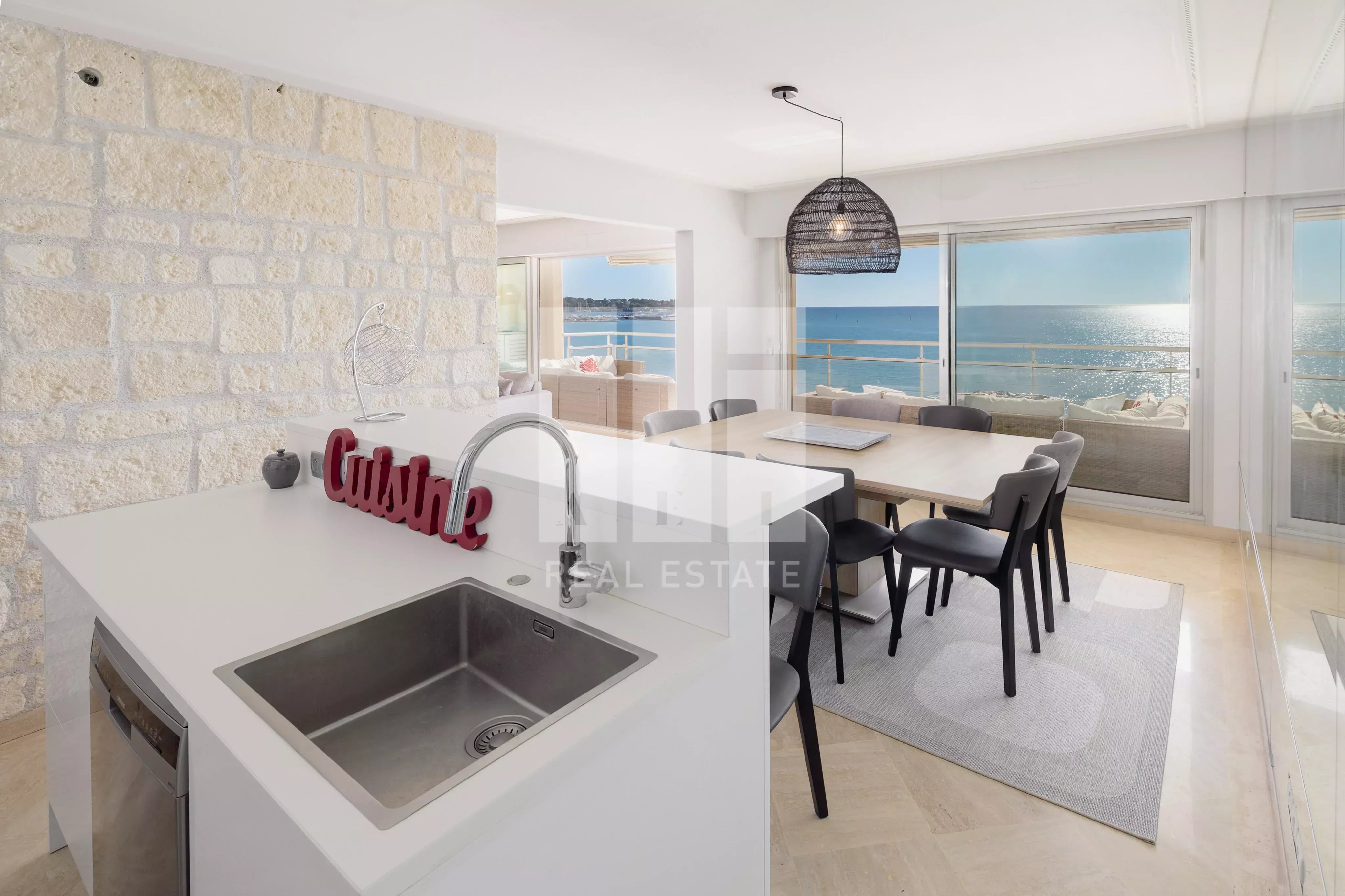 En Exclusivité ! Idéalement situé à Juan-les-Pins, en première ligne face à la mer, ce bel appartement de 5 pièces offre un cadre de vie exceptionnel. Lumineux, en excellent état, il se compose d’un séjour ouvrant sur une grande terrasse avec vue panoramique sur la Méditerranée, une cuisine ouverte, moderne équipée, quatre chambres dont une suite parentale, ainsi que plusieurs salles de bains. Ce bien de standing dispose également de trois parking en sous-sol et bénéficie d’un emplacement privilégié, à proximité immédiate des plages et commodités. Une belle opportunité pour profiter pleinement de la Côte d’Azur dans un environnement prestigieux.