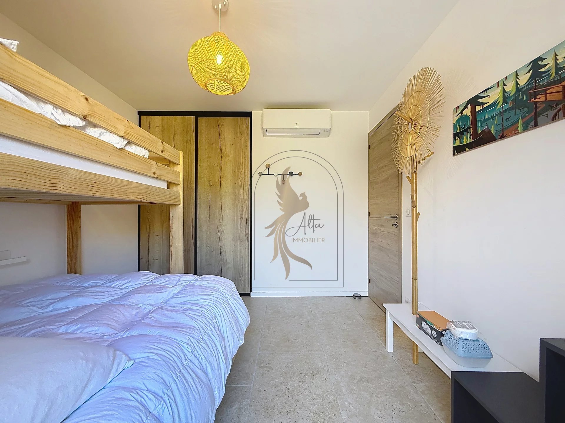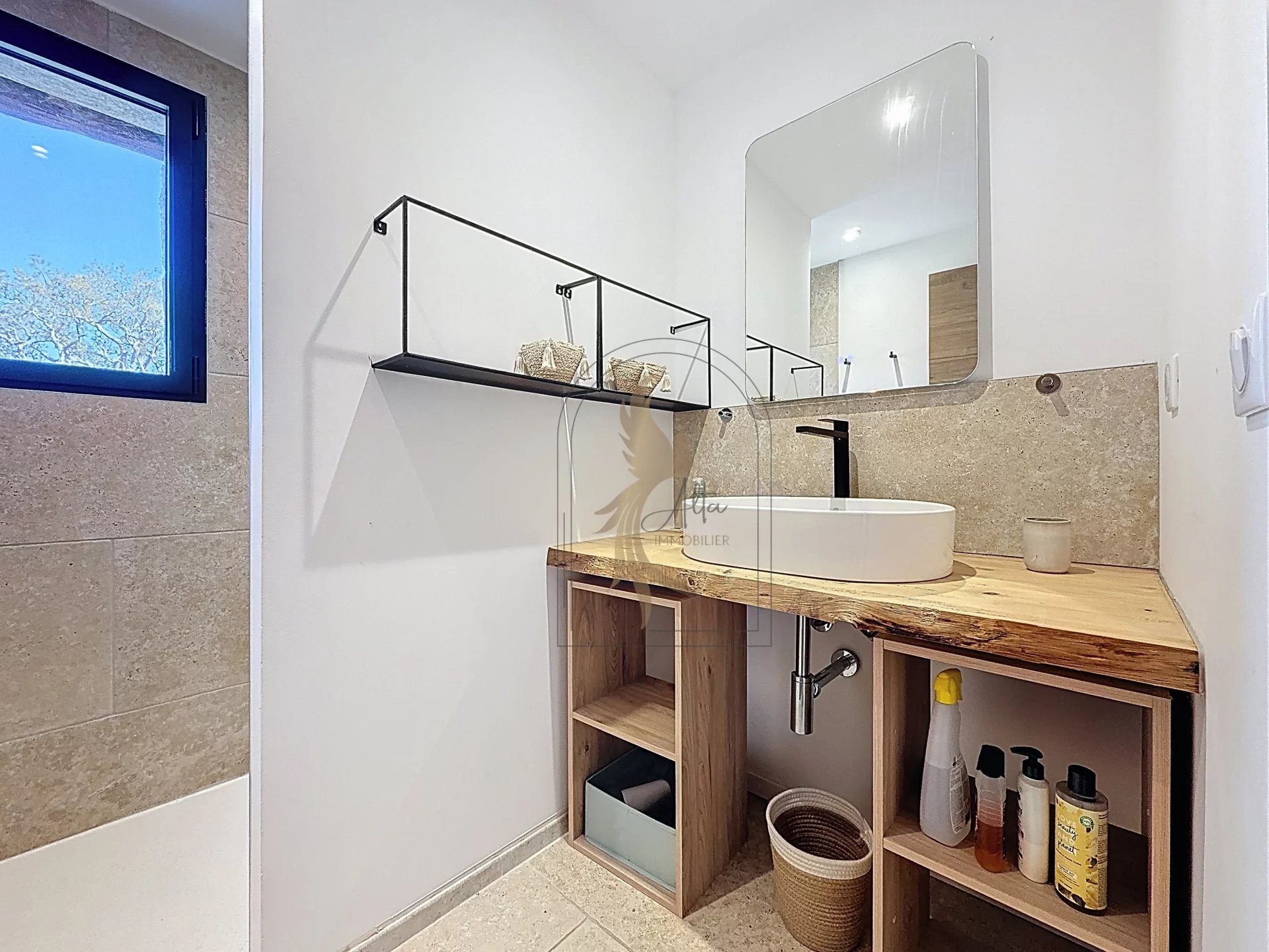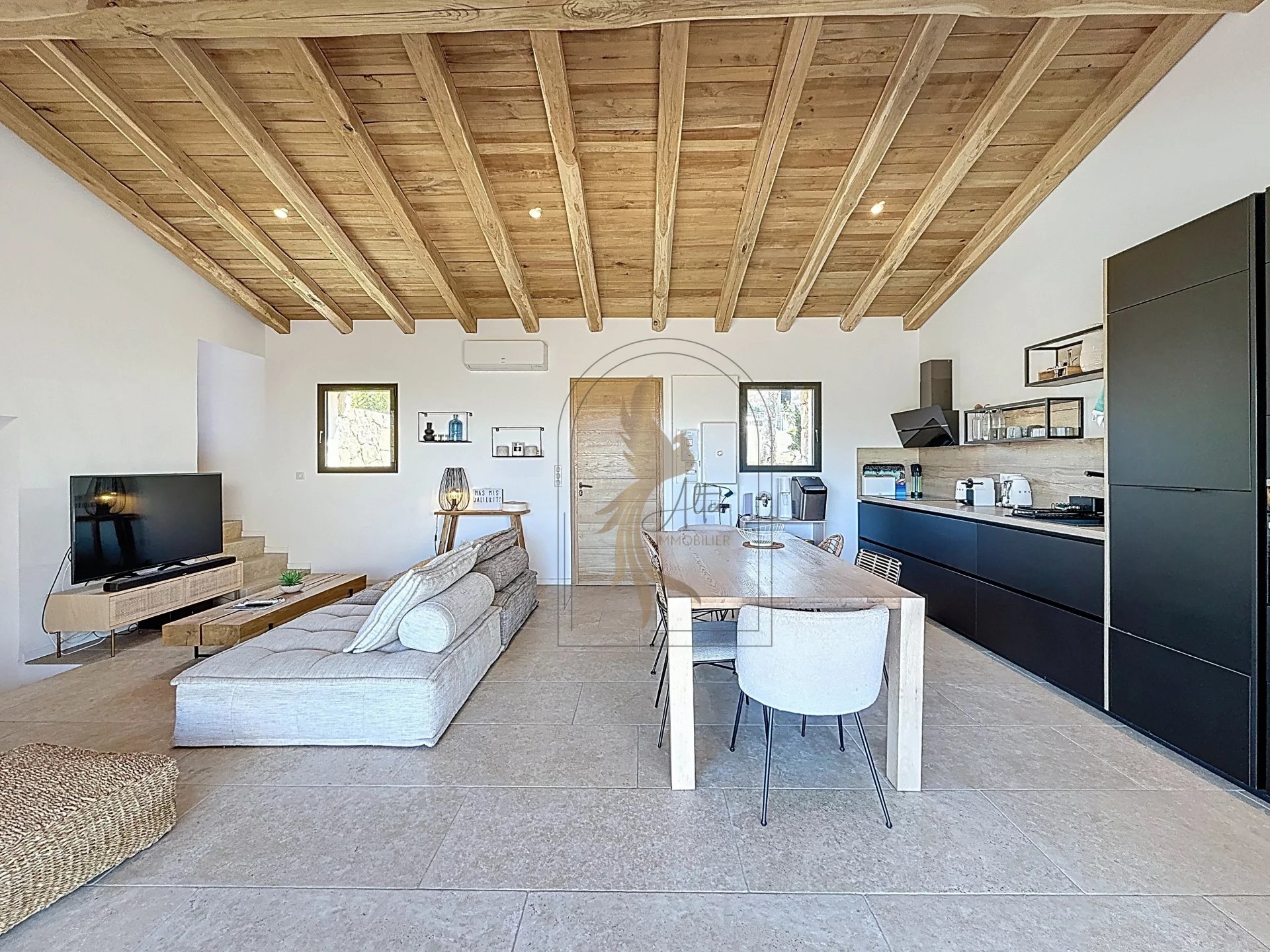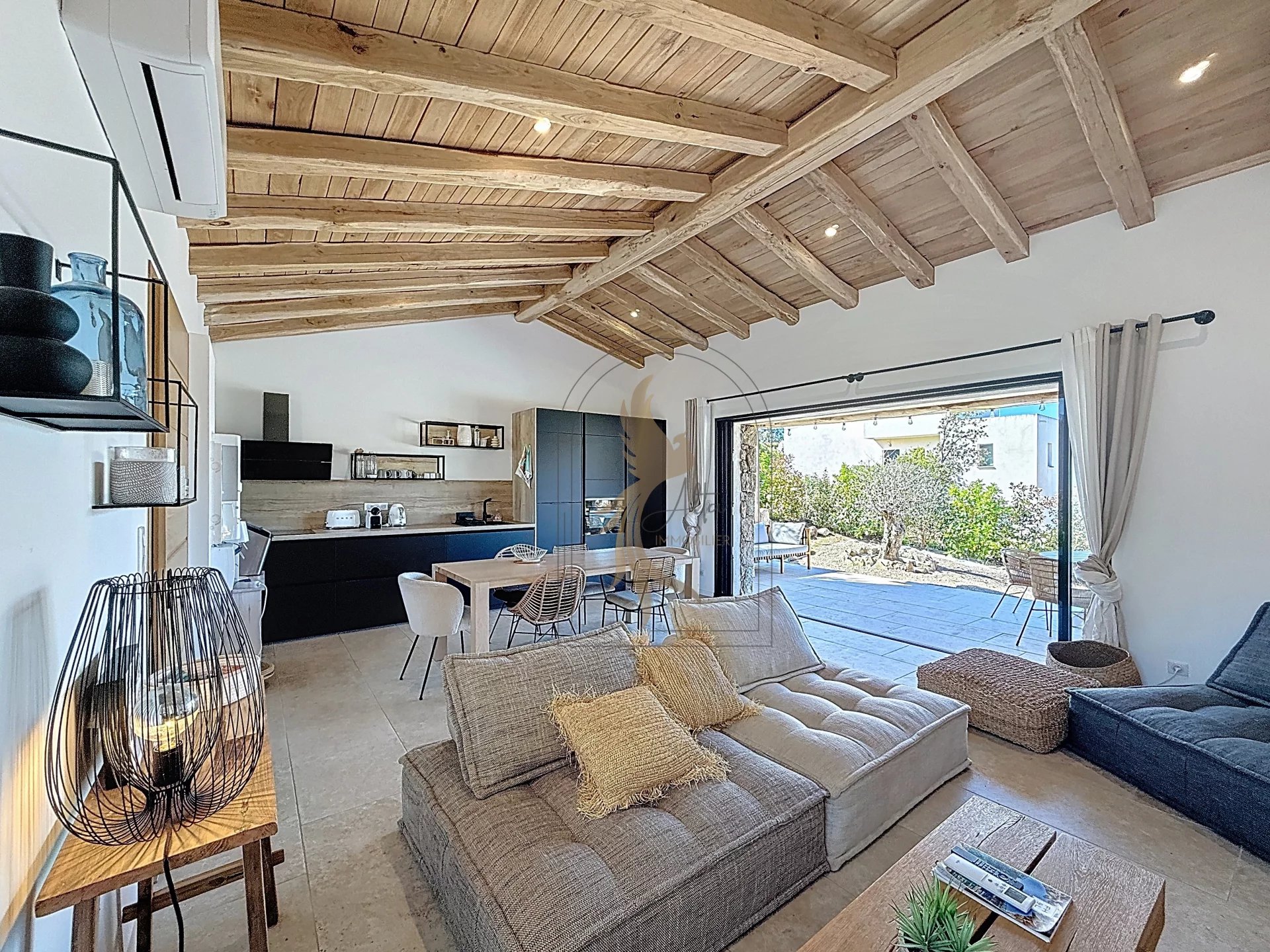 Située à proximité immédiate de la baie de Saint-Cyprien et de la célèbre plage du Cabanon Bleu, découvrez cette élégante villa de style bergerie avec piscine, nichée dans un environnement authentique. Construite en 2023, cette propriété récente offre un cadre idéal aussi bien pour une résidence secondaire que pour un investissement locatif de qualité. La villa se compose d’une belle pièce de vie lumineuse d’environ 35 m², intégrant un espace salon et une cuisine ouverte. L’espace nuit propose trois chambres confortables, accompagnées de deux salles d’eau et de deux toilettes. Une large baie vitrée à galandage de 5 mètres prolonge harmonieusement l’intérieur vers une terrasse semi-couverte, offrant une vue dégagée sur une piscine de 7 x 3 mètres, le tout au cœur d’un terrain arboré. Implantée dans un domaine intimiste composé de seulement 7 habitations, sécurisé par un portail électrique, la propriété bénéficie de deux places de stationnement extérieures.