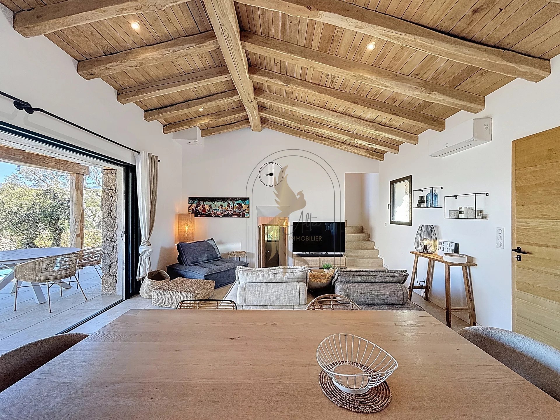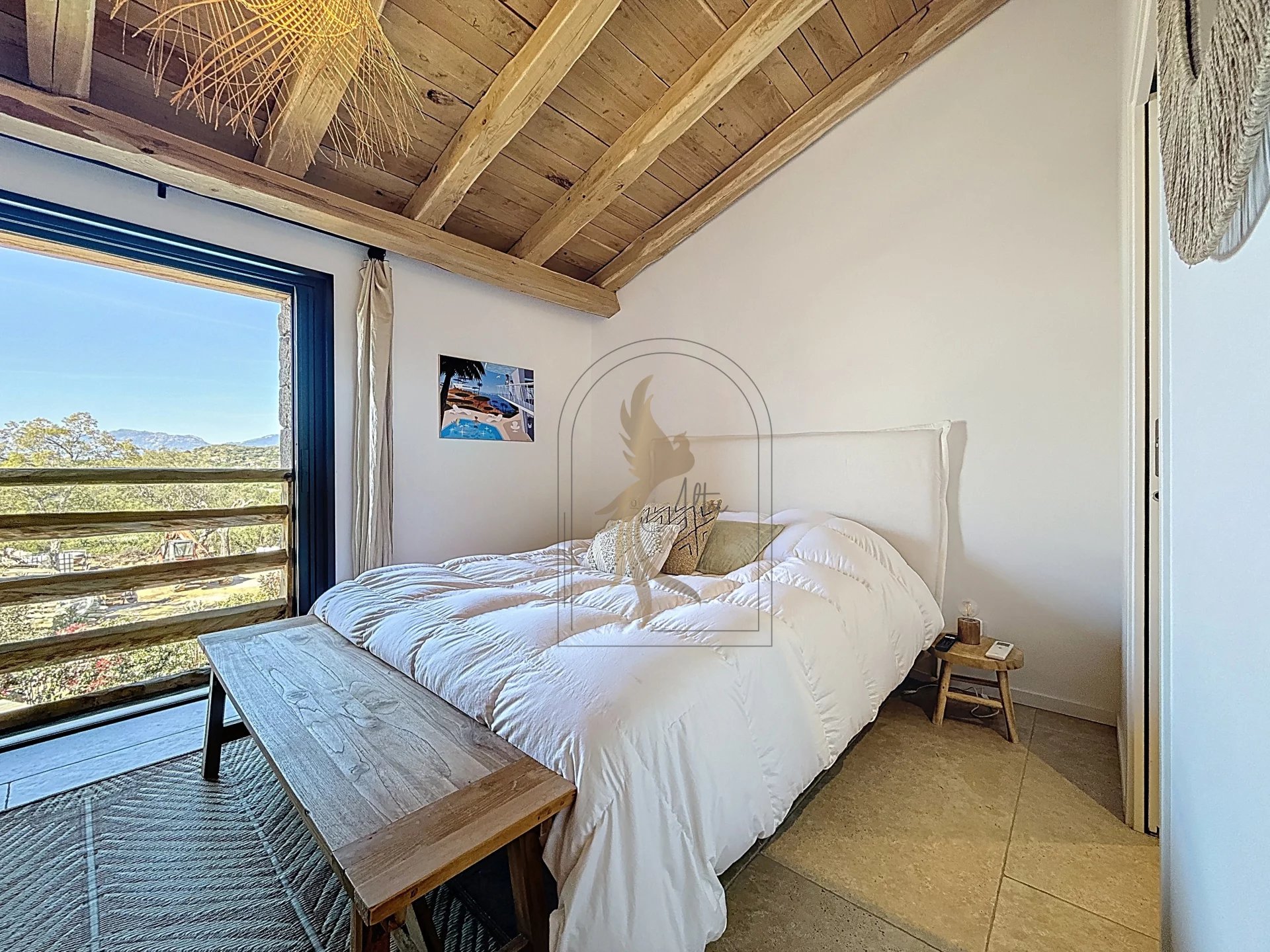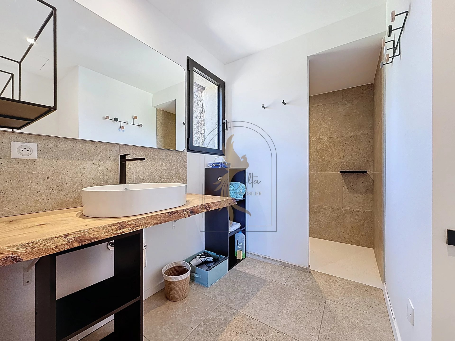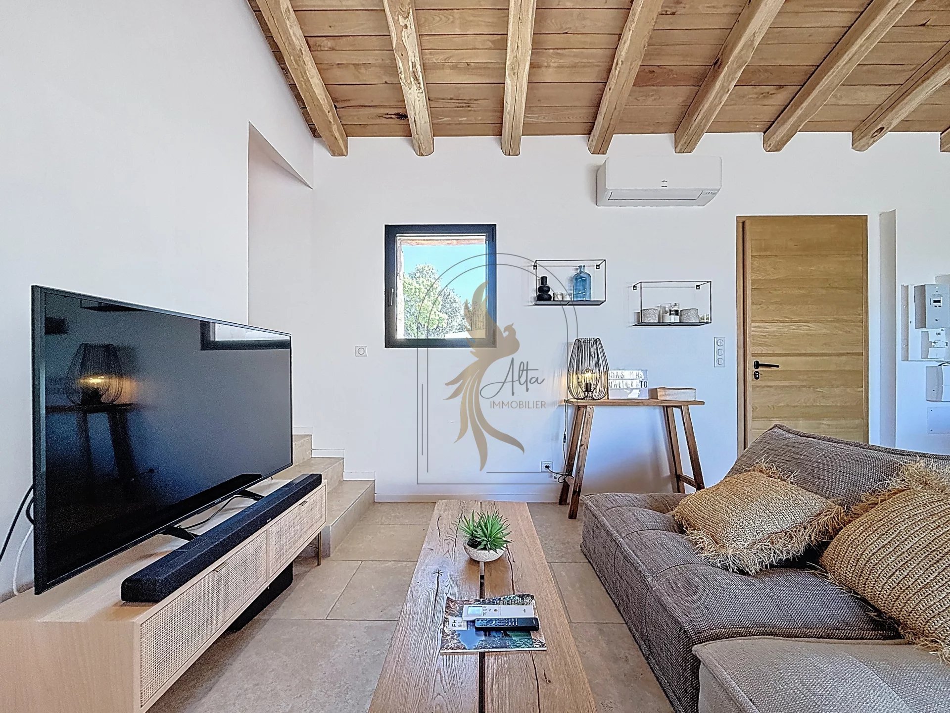 Située à proximité immédiate de la baie de Saint-Cyprien et de la célèbre plage du Cabanon Bleu, découvrez cette élégante villa de style bergerie avec piscine, nichée dans un environnement authentique. Construite en 2023, cette propriété récente offre un cadre idéal aussi bien pour une résidence secondaire que pour un investissement locatif de qualité. La villa se compose d’une belle pièce de vie lumineuse d’environ 35 m², intégrant un espace salon et une cuisine ouverte. L’espace nuit propose trois chambres confortables, accompagnées de deux salles d’eau et de deux toilettes. Une large baie vitrée à galandage de 5 mètres prolonge harmonieusement l’intérieur vers une terrasse semi-couverte, offrant une vue dégagée sur une piscine de 7 x 3 mètres, le tout au cœur d’un terrain arboré. Implantée dans un domaine intimiste composé de seulement 7 habitations, sécurisé par un portail électrique, la propriété bénéficie de deux places de stationnement extérieures.